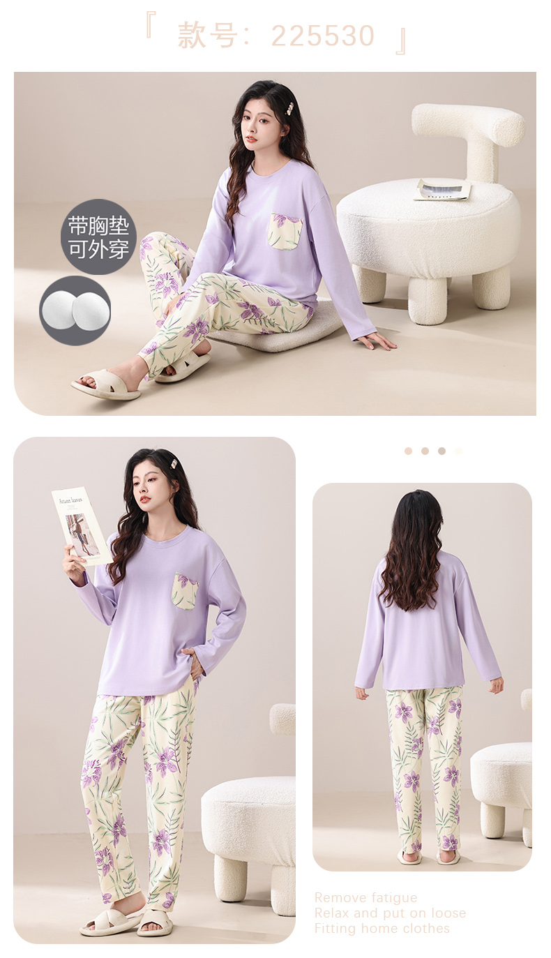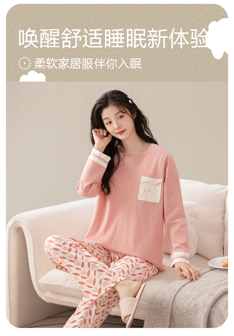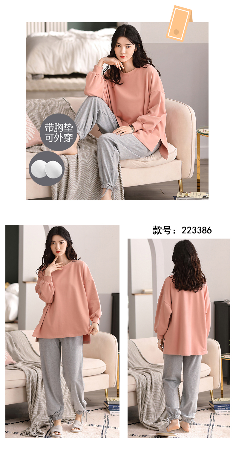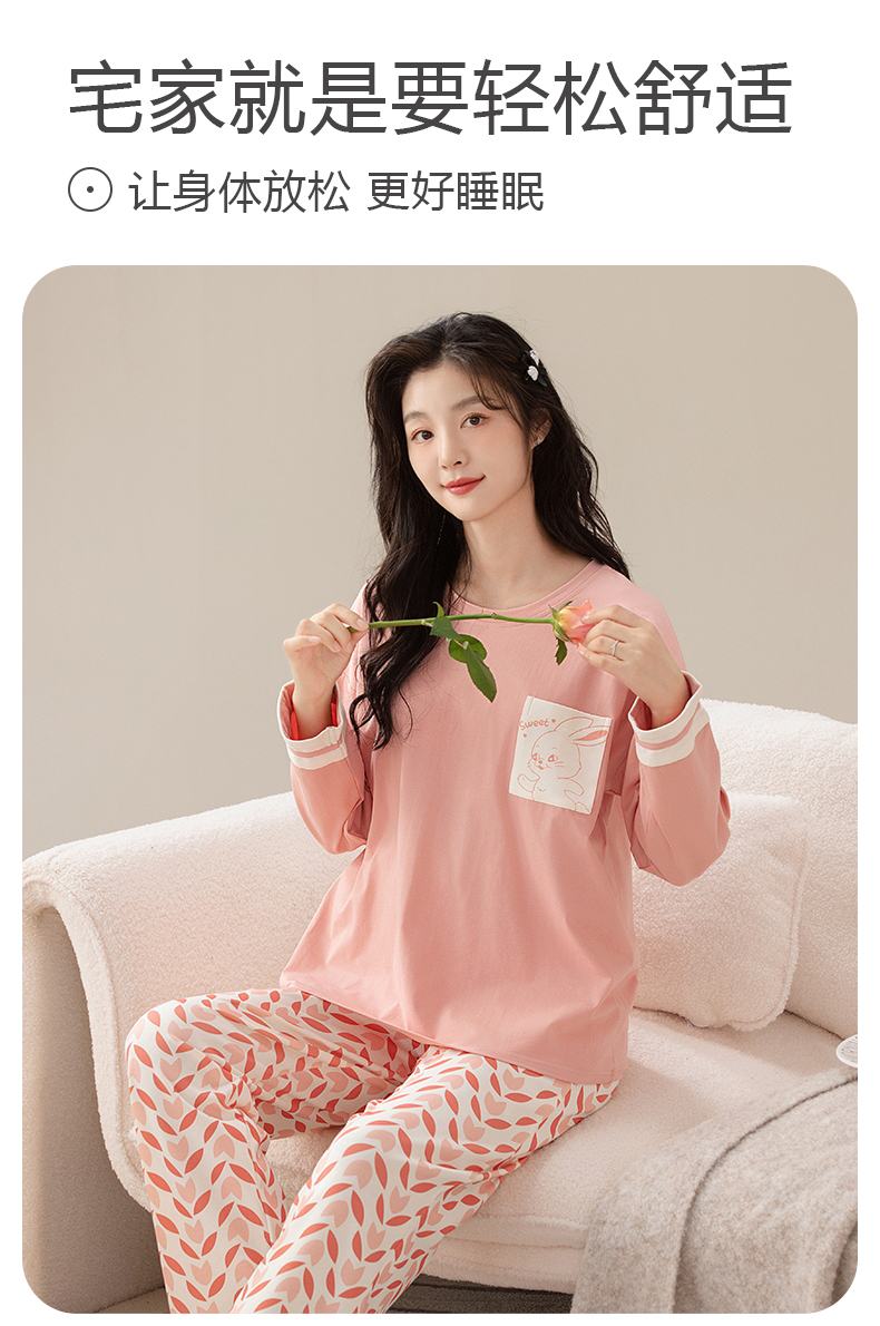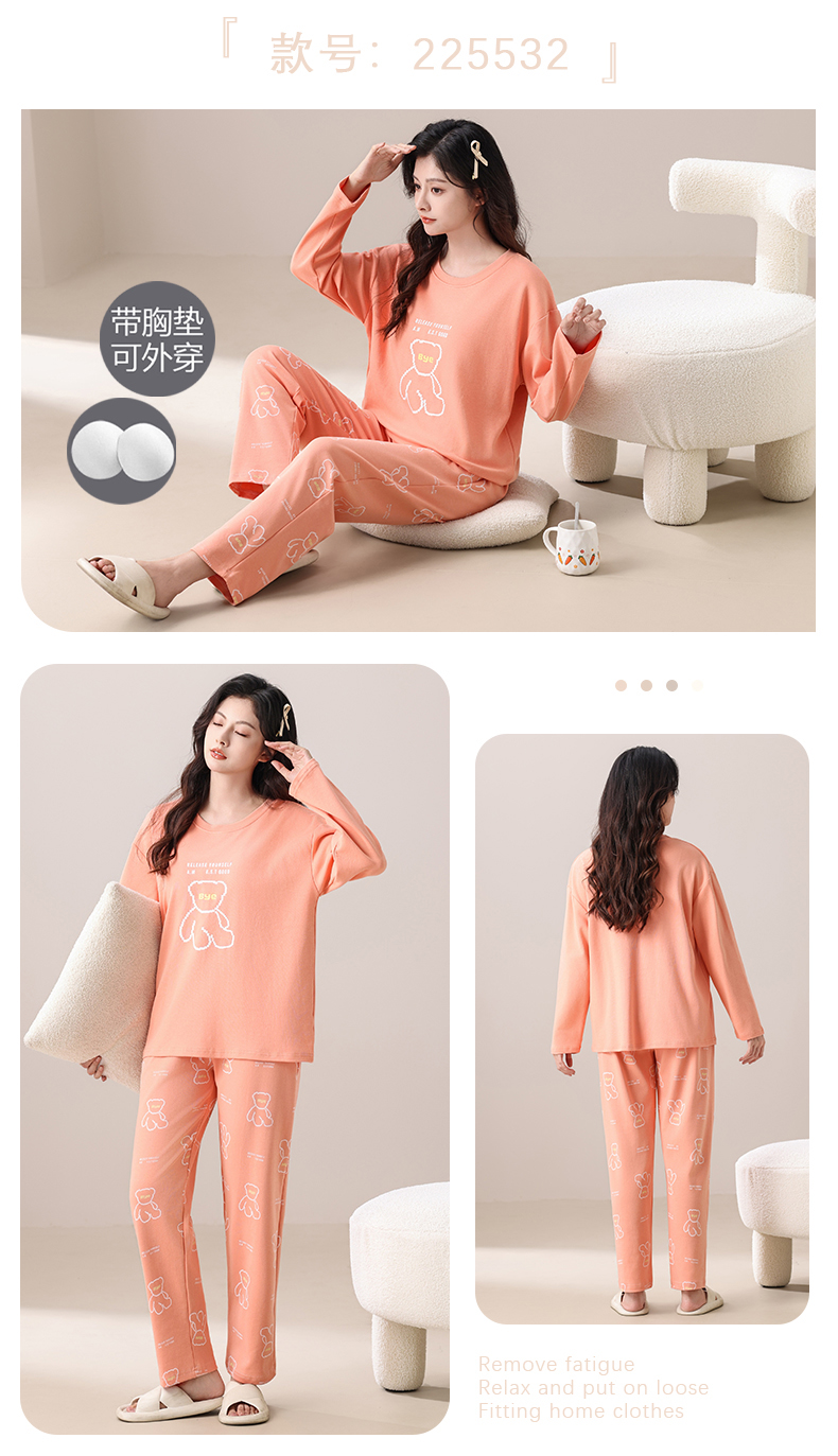 【热卖推荐】自然醒柔汐(带胸垫)女士家居服100%棉长袖长裤套头睡衣QH