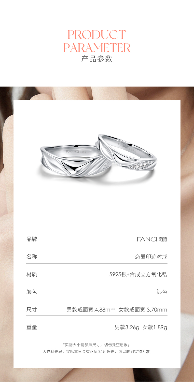 【明星同款】【为爱加冕活口对戒】Fanci范琦银饰 轻奢纪念日礼物 生日情人节送礼男朋友礼物