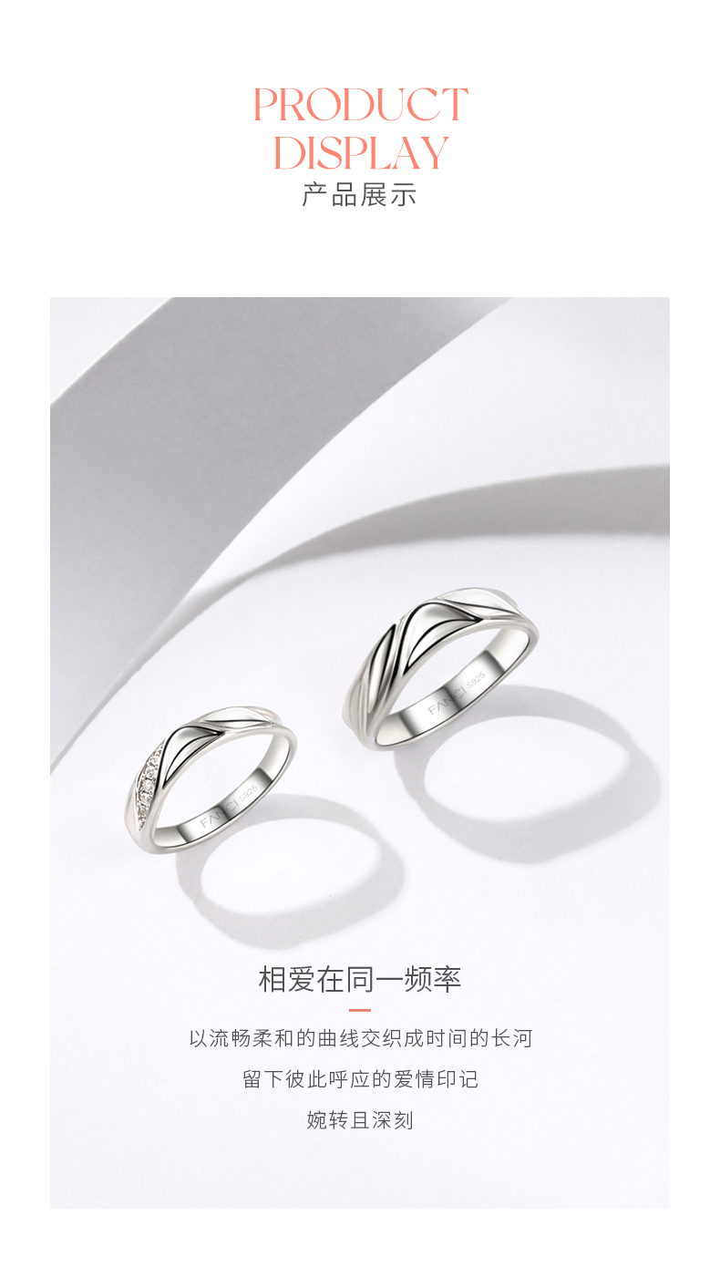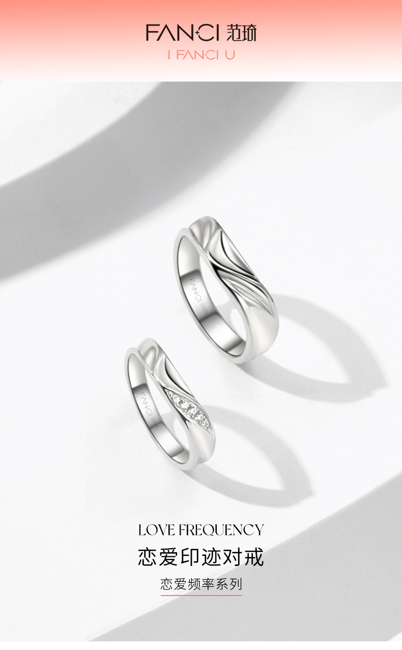 Fanci范琦恋爱频率爱心贴贴银情侣对戒指女生日礼物送女男生圣诞