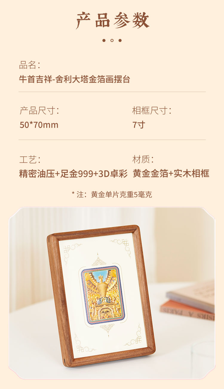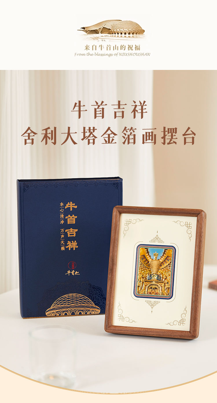 牛首山文创牛首吉祥-舍利大塔金箔画摆台礼盒雅致创意纪念品礼物