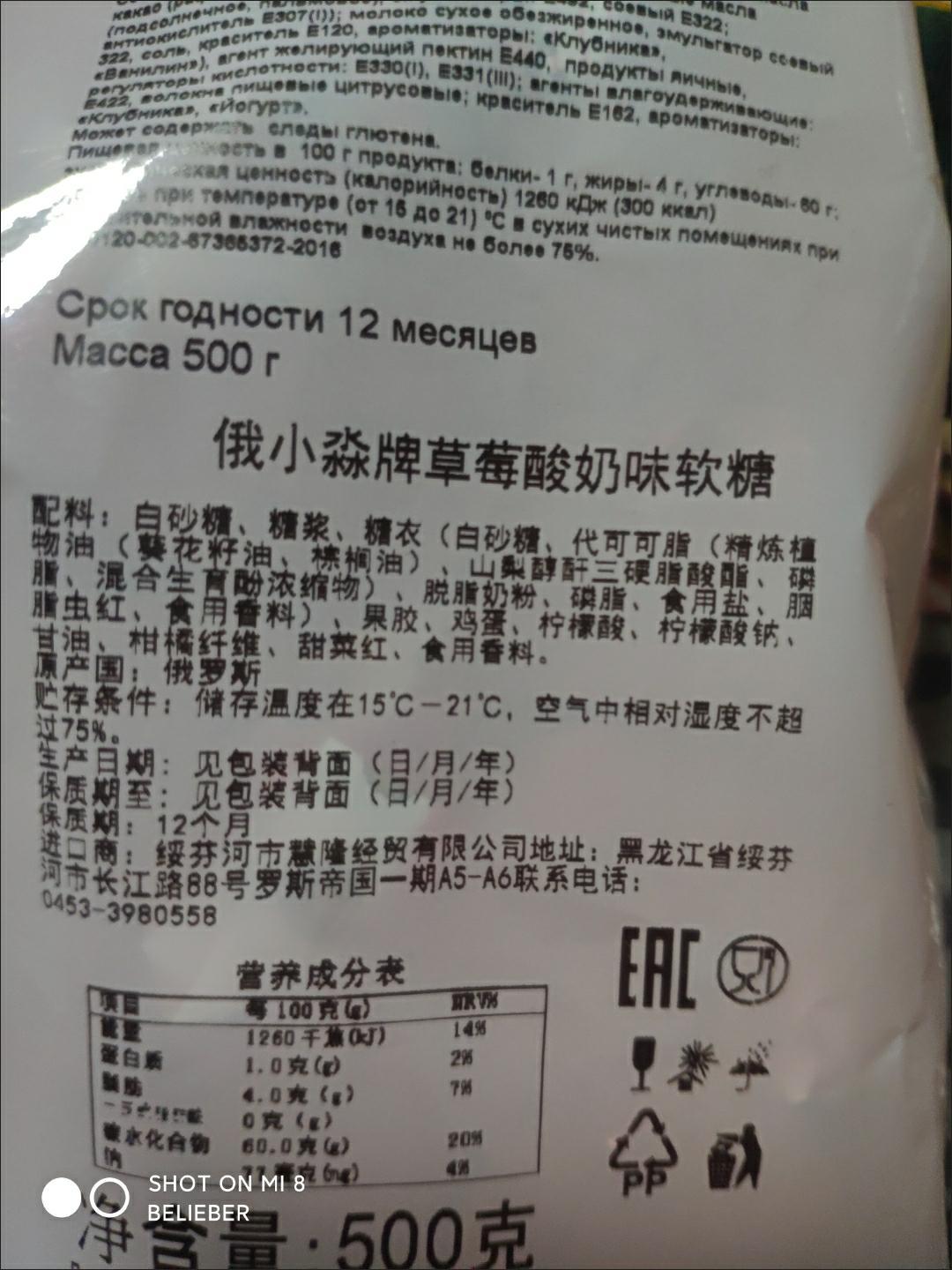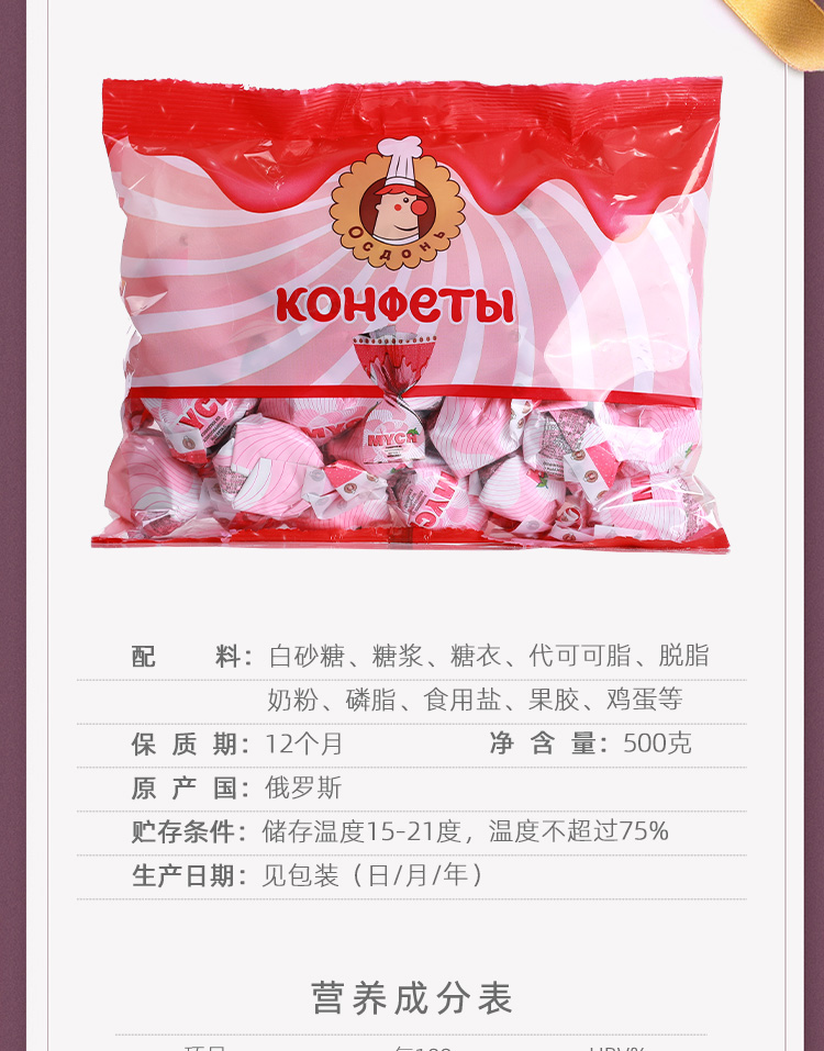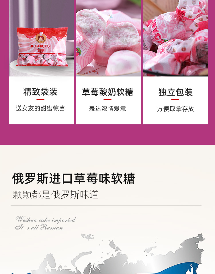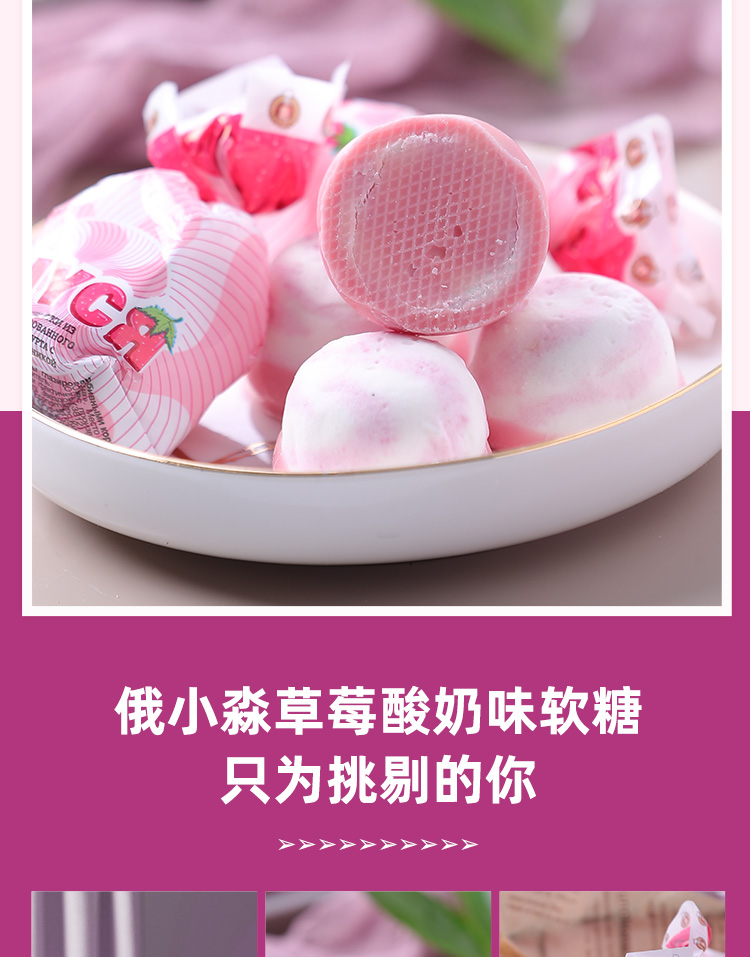 【中欧班列精选】俄罗斯酸奶糖 原装进口俄小淼草莓酸奶糖 500g/袋WWJ