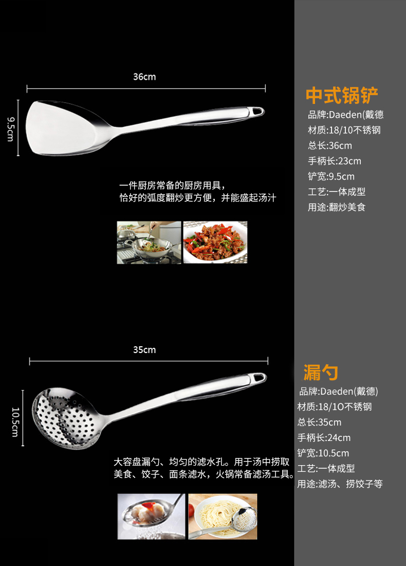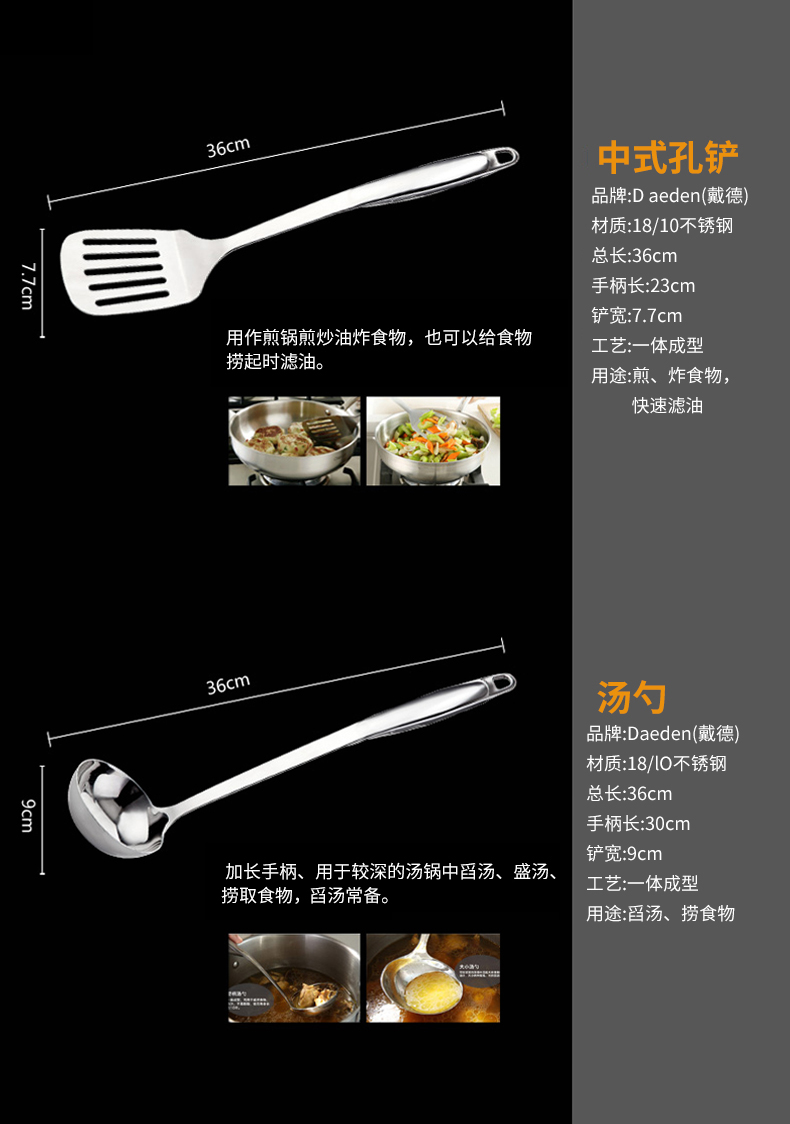 德国戴德 18/10不锈钢厨具孔铲、小方铲、汤勺、滤勺、隔油勺