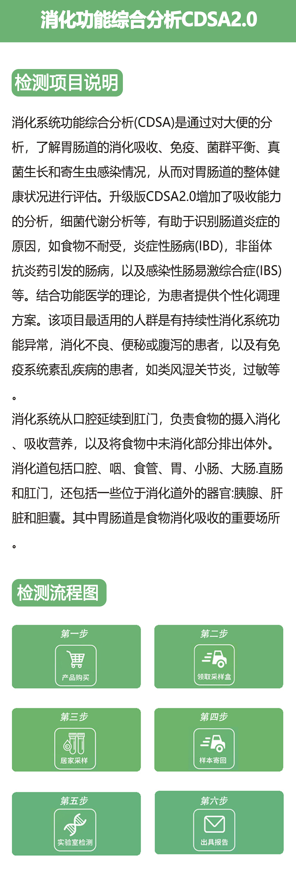 消化功能综合分析CDSA1.0/CDSA2.0检测(居家采样)