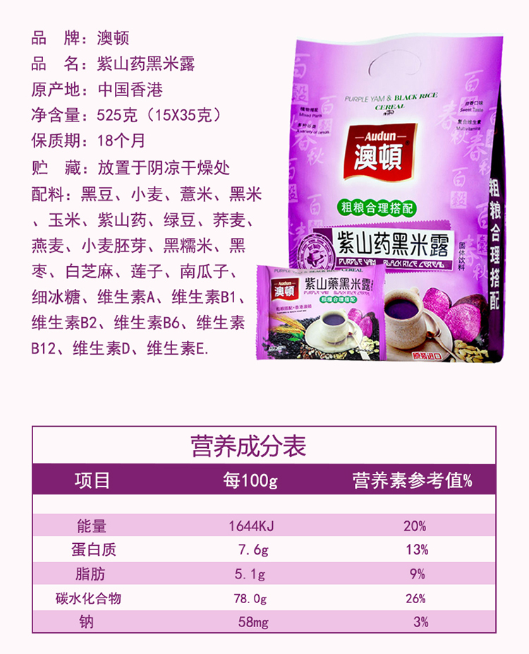【潮汕帮扶】澳顿丨紫山药黑米露 525g