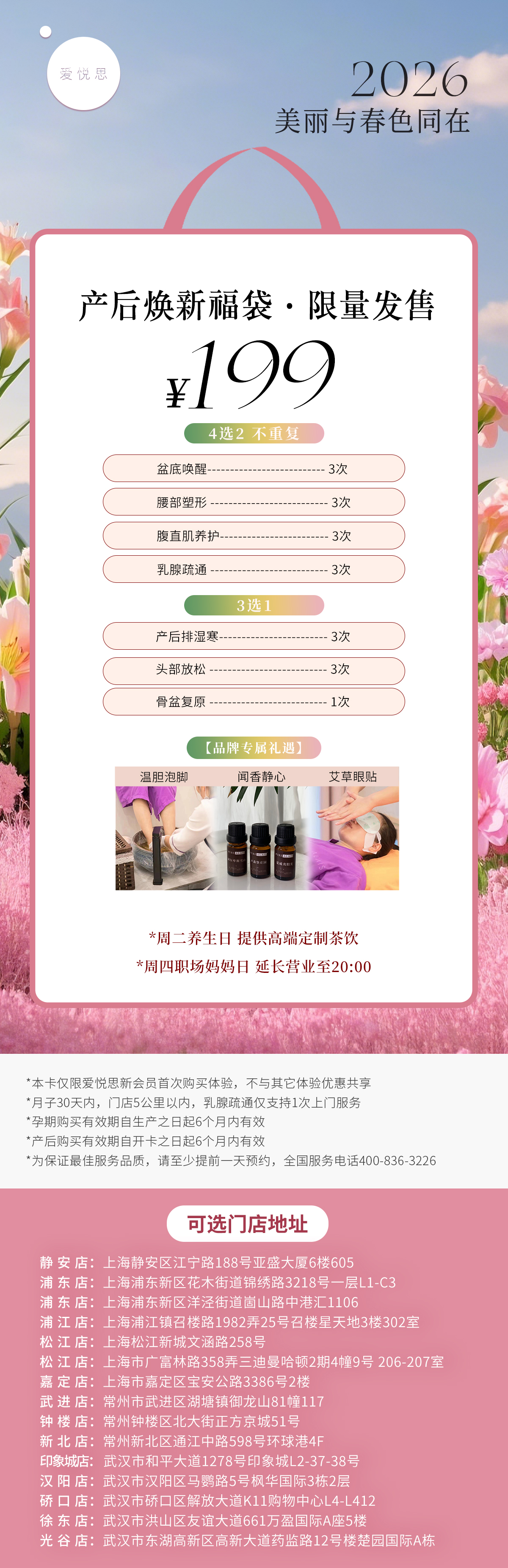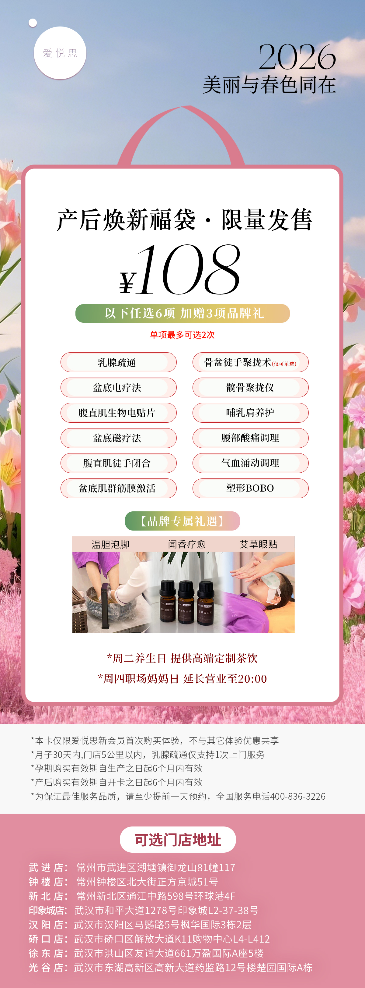 【5店通用】武汉爱悦思—108/199抢产后修复套餐!