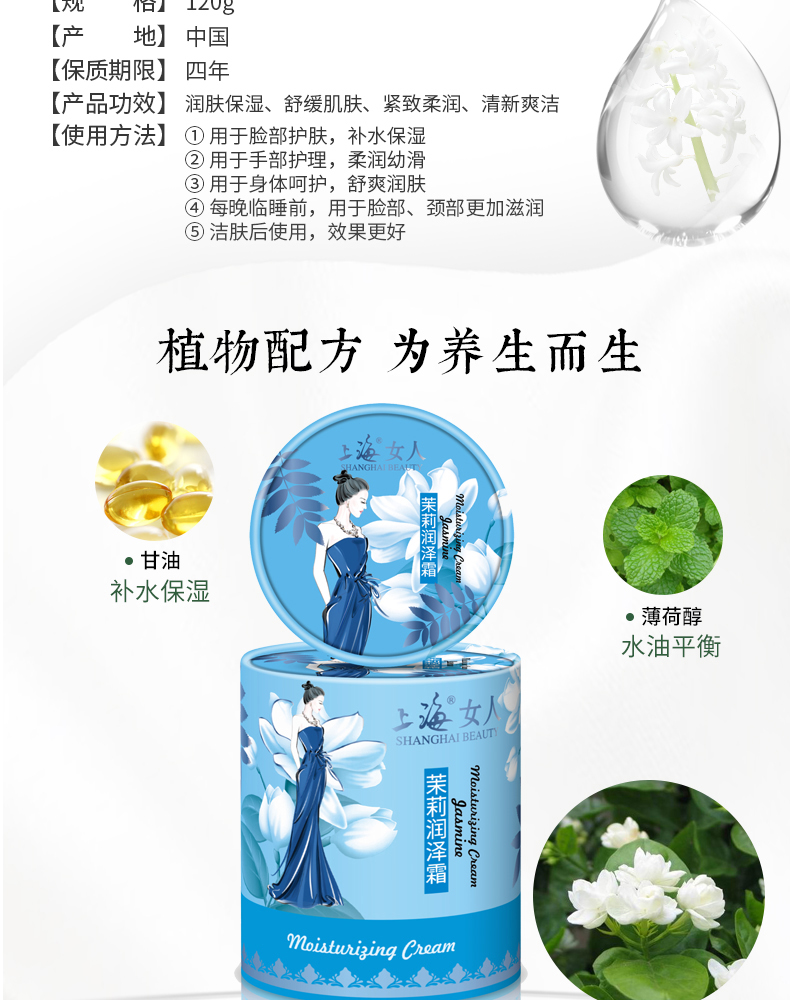 上海女人茉莉润泽霜120g