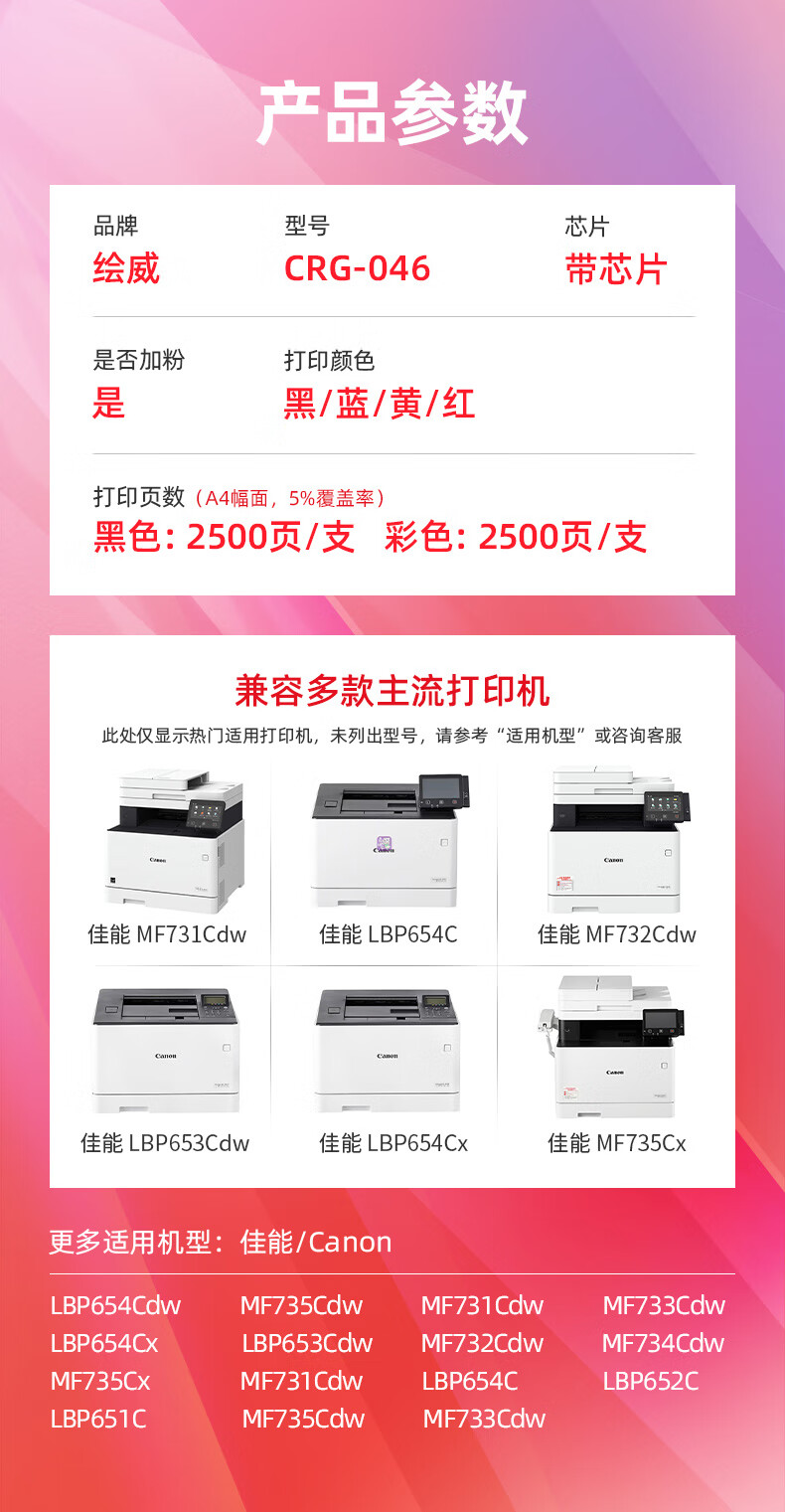 绘威CRG-046硒鼓、碳粉 适用佳能MF732Cdw MF733Cdw MF734Cdw MF735Cdw LBP653Cdw LBP654Cx LBP654Cdw