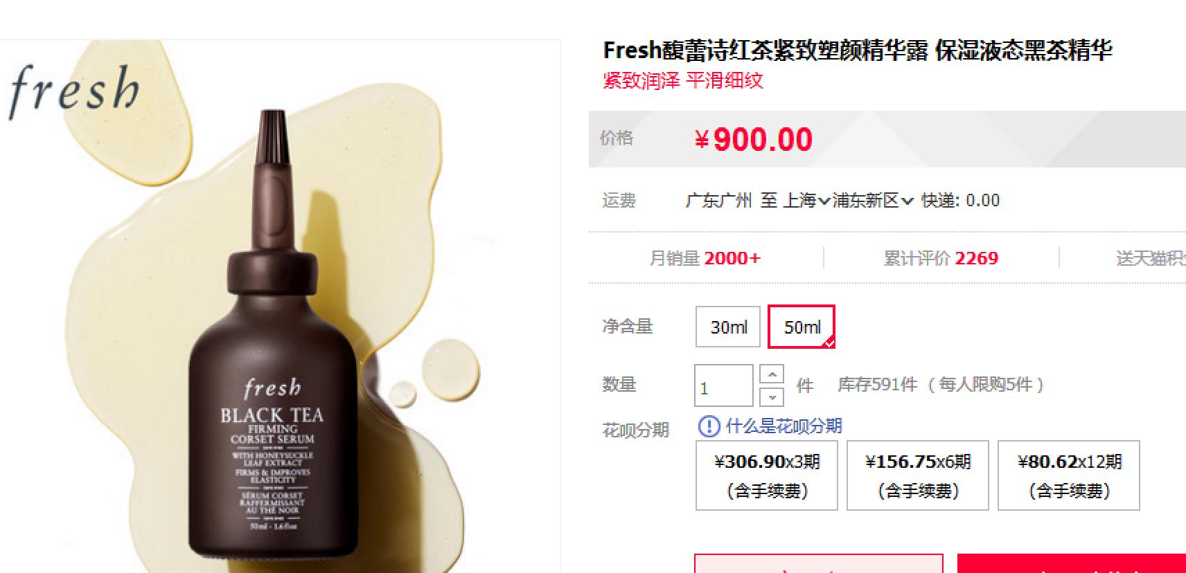 【9.1王炸割肉价】fresh红茶紧致塑颜精华露7m*4(限25年5月)