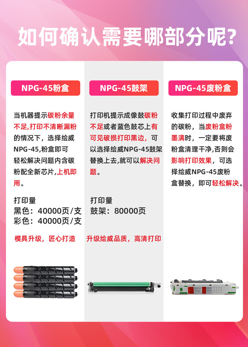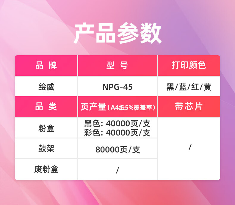 绘威NPG-45四色粉盒套装 适用佳能Canon IR-ADV C5045 C5051 C5250 C5255复印机碳粉盒 墨粉盒 碳粉 墨粉