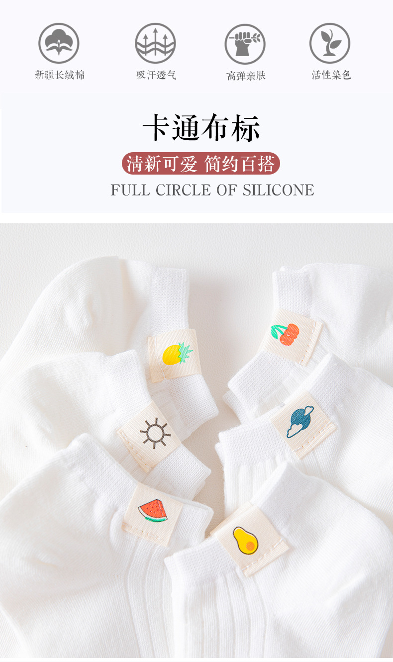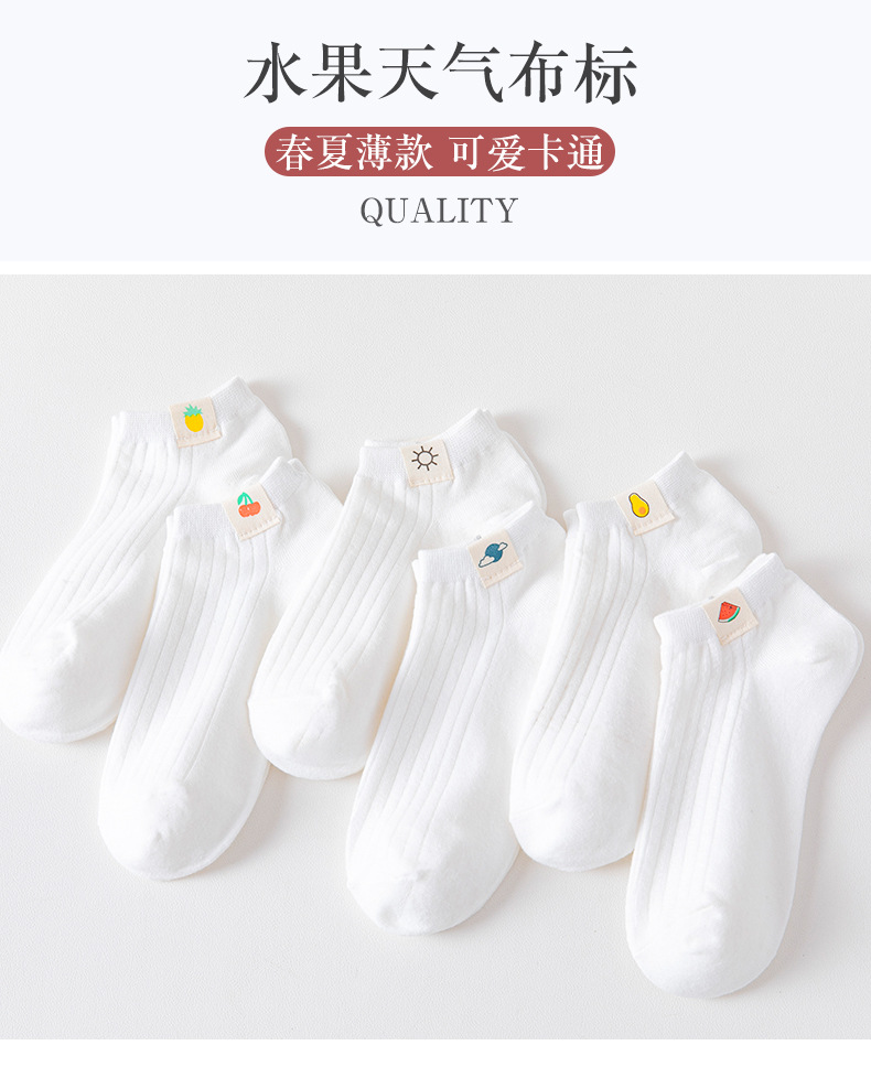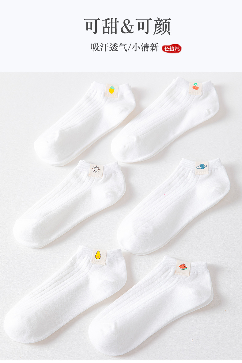 【纯色纯棉6双!简约百搭】夏日清新搭配,水果天气布标;可甜&可颜!可爱低帮袜子女,透气吸汗,舒适柔软。小清新日系风,春夏薄款短袜,女孩们的潮流必备!