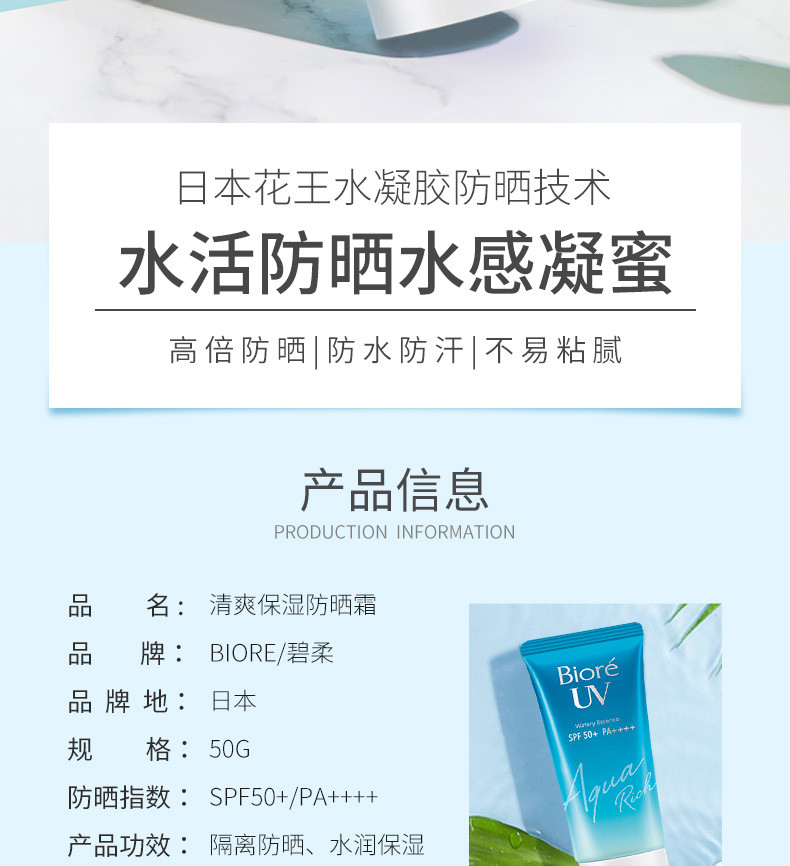 BIORE碧柔 水感精华保湿防晒霜 50G 日本