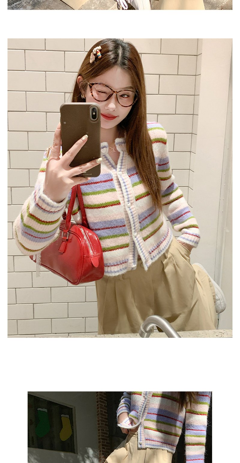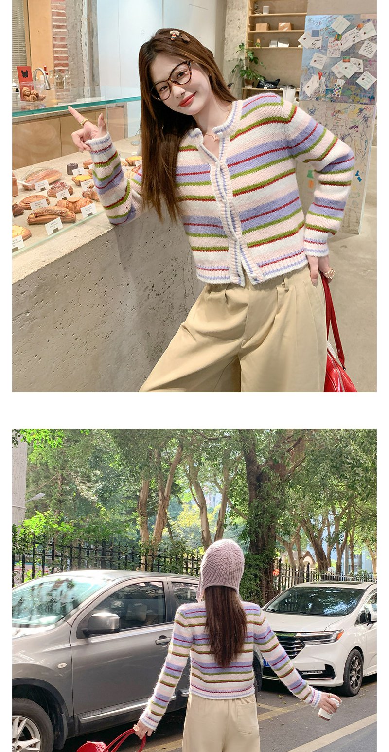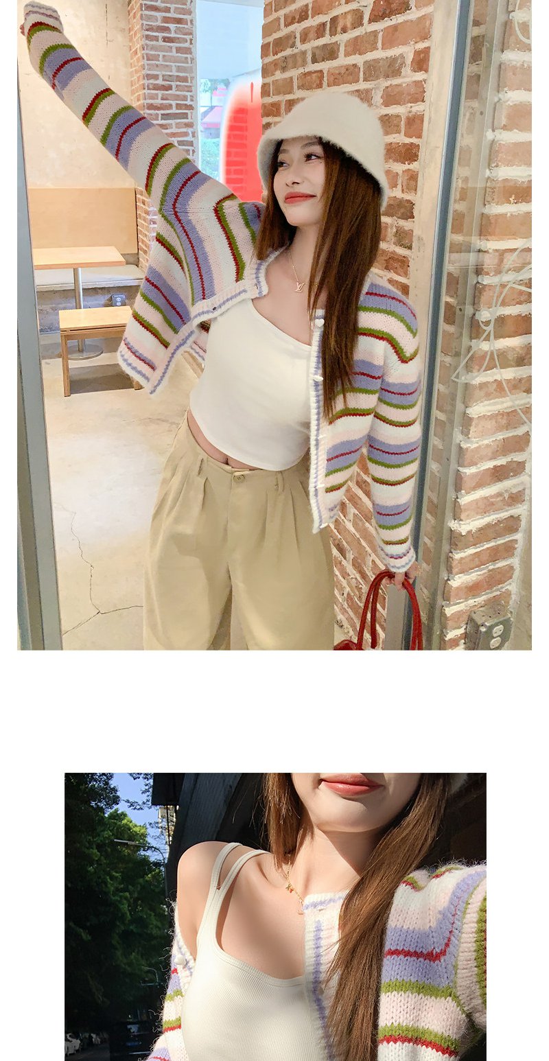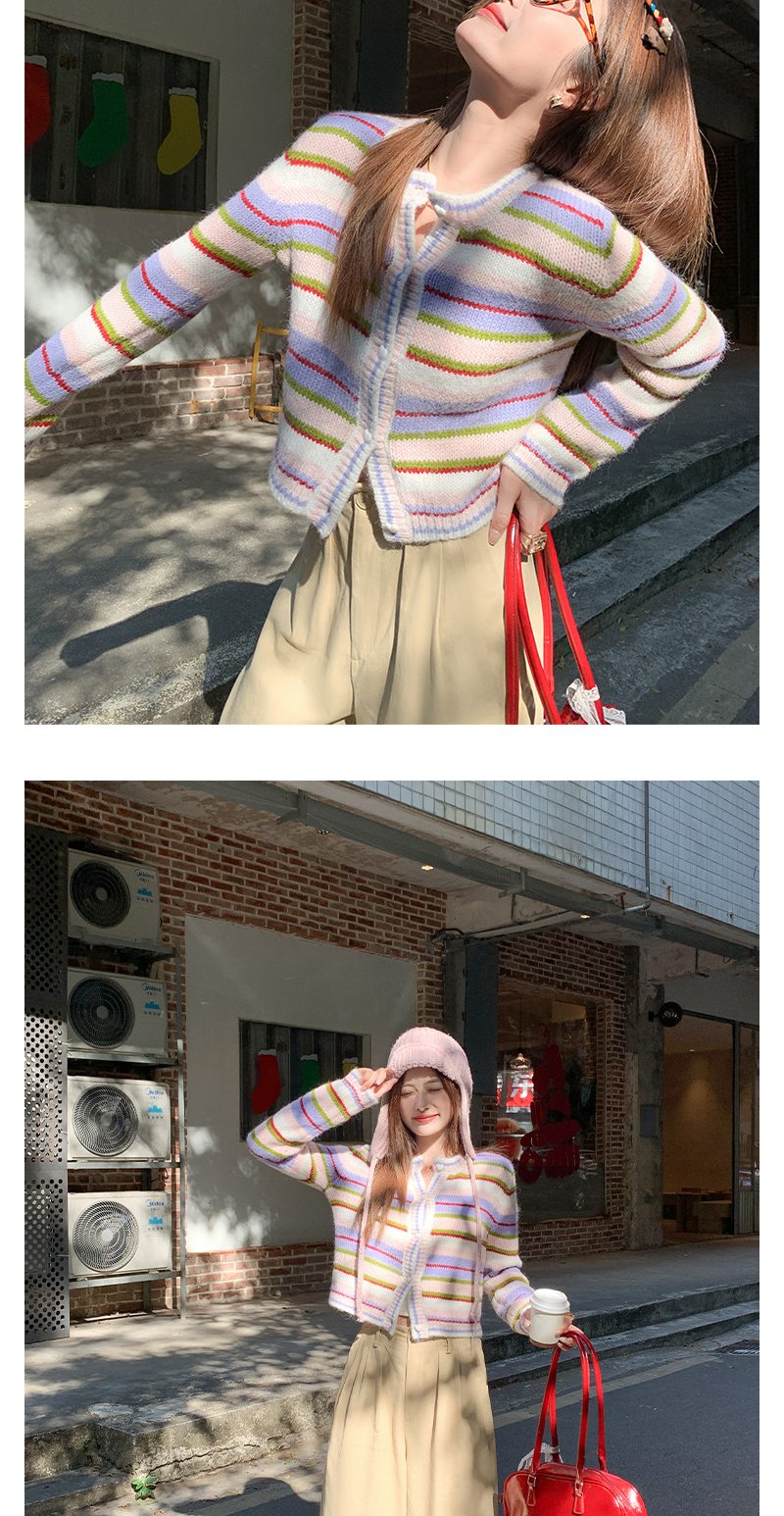 <曾小咸推荐>2.6现货秒杀 !微信超特价!韩系彩色条纹毛织开衫 日常229.99 立减140 秒杀89.99!!