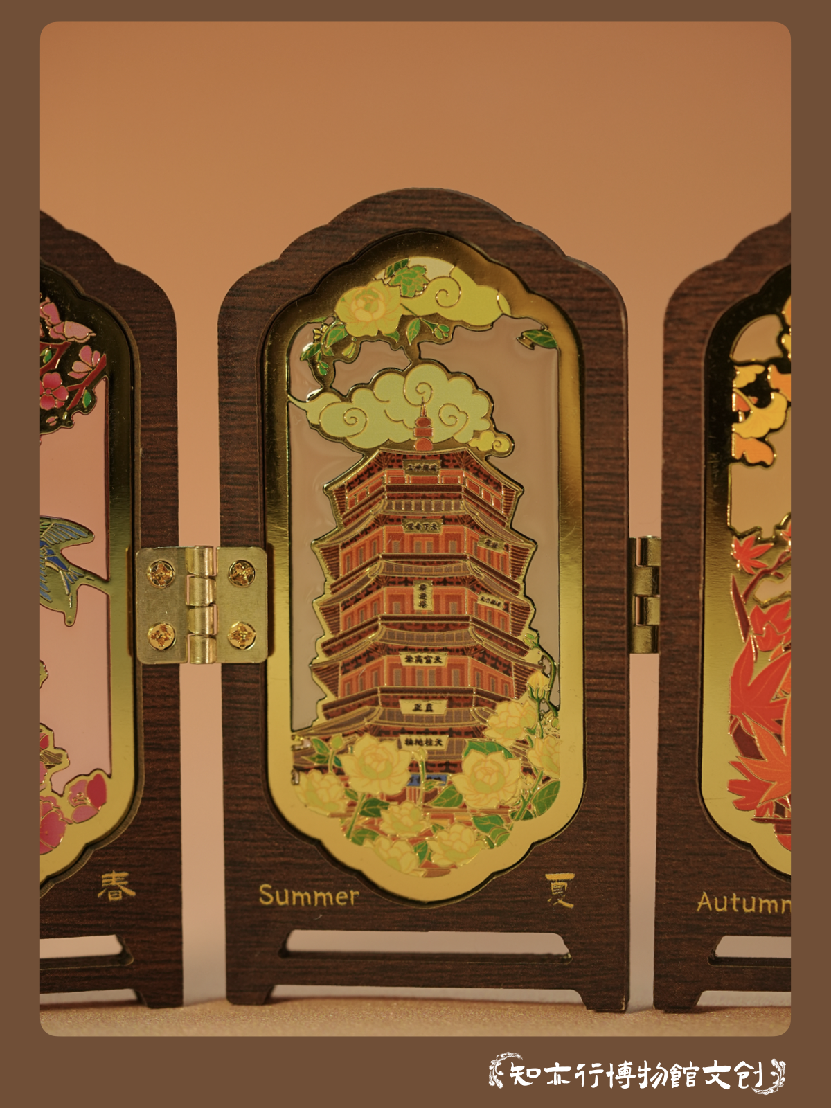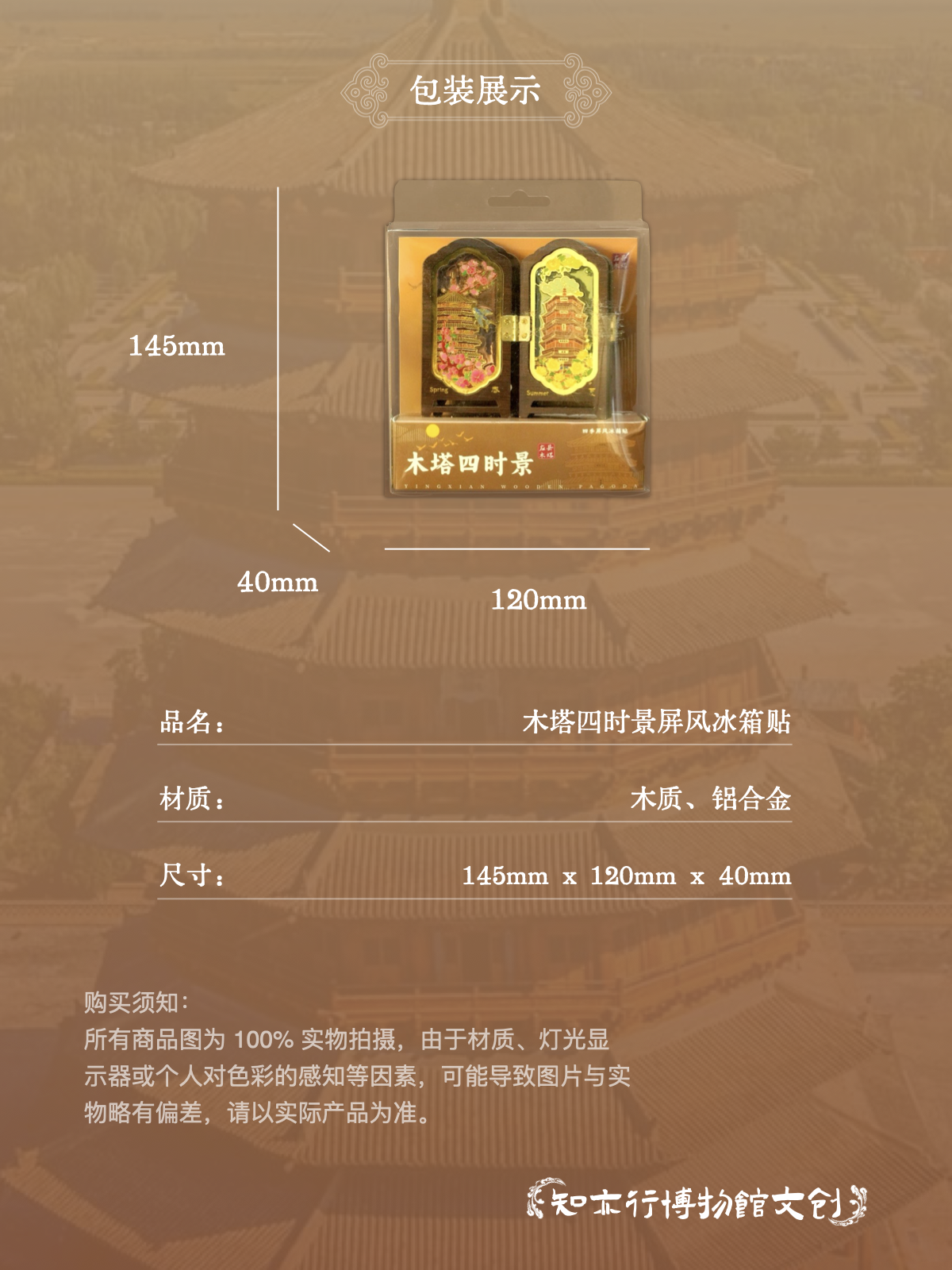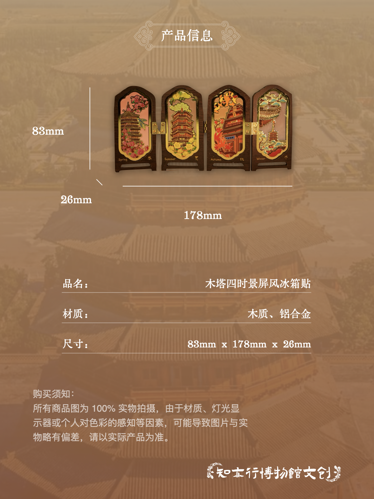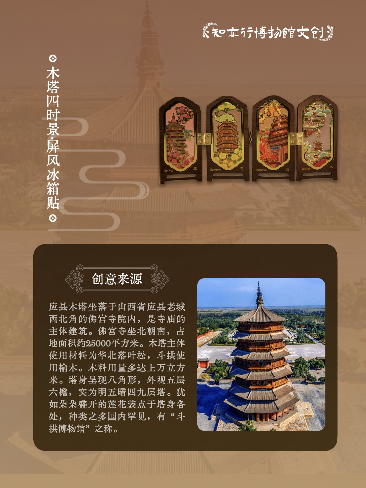 应县木塔四时景屏风冰箱贴摆件木制古风装饰山西文创礼物纪念品