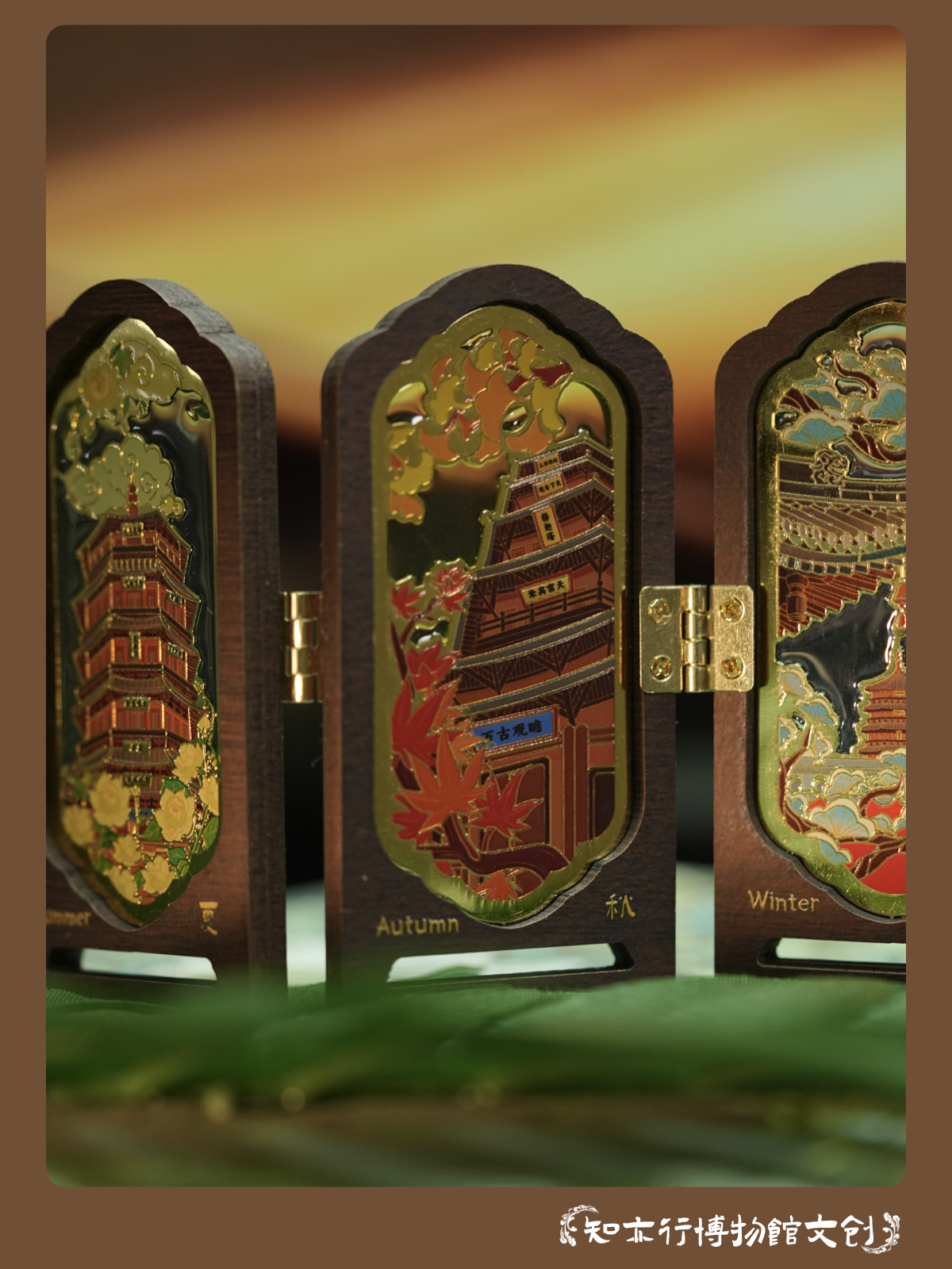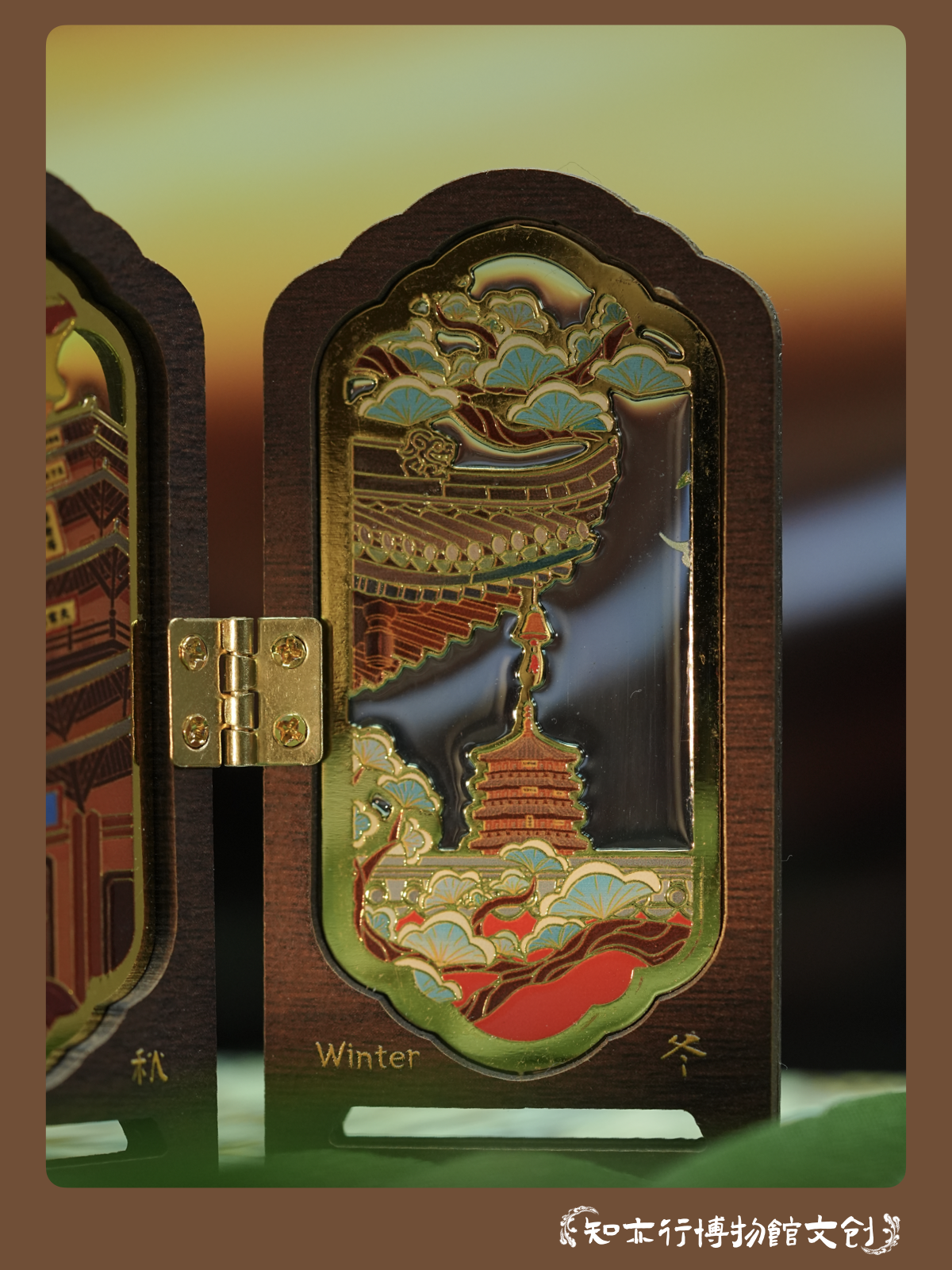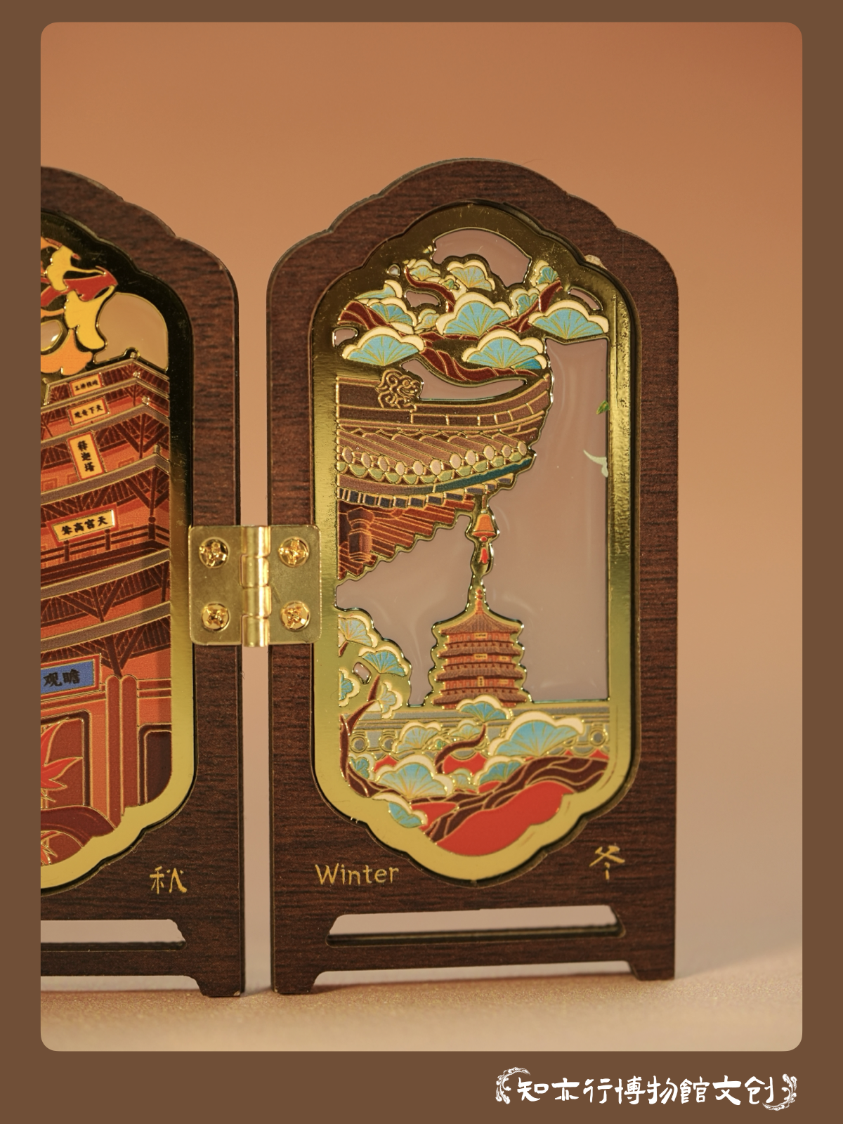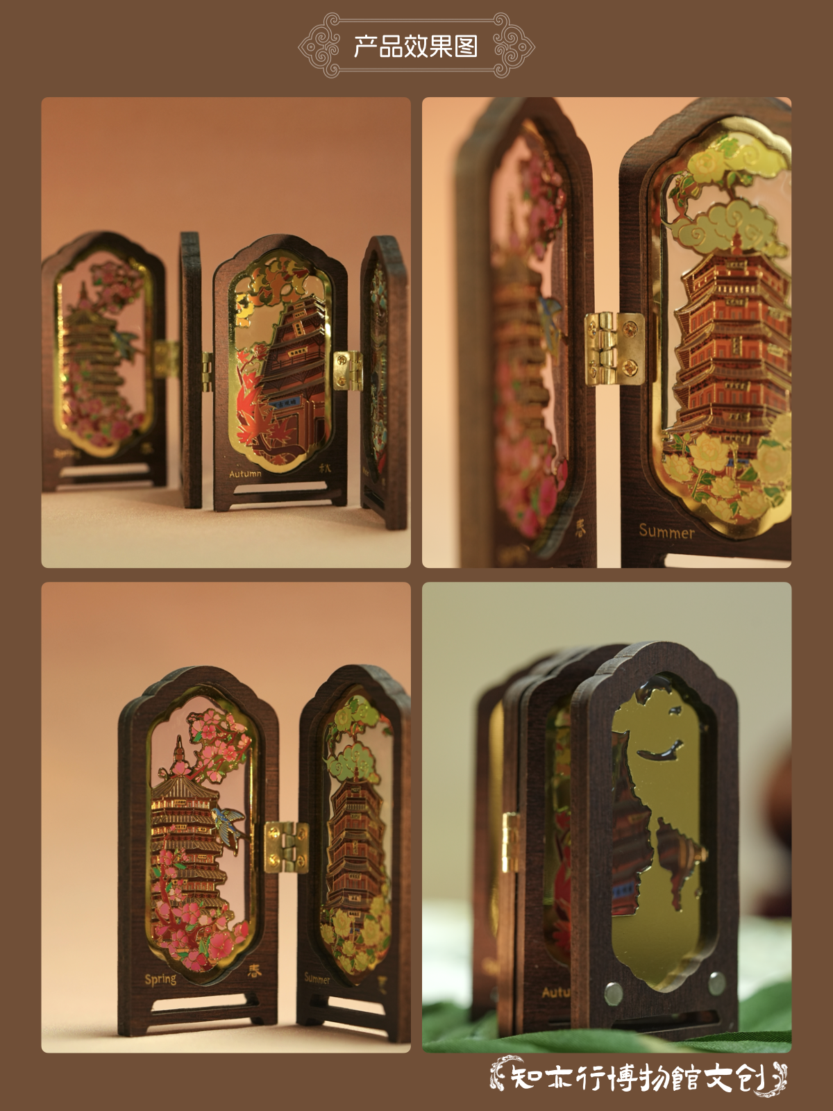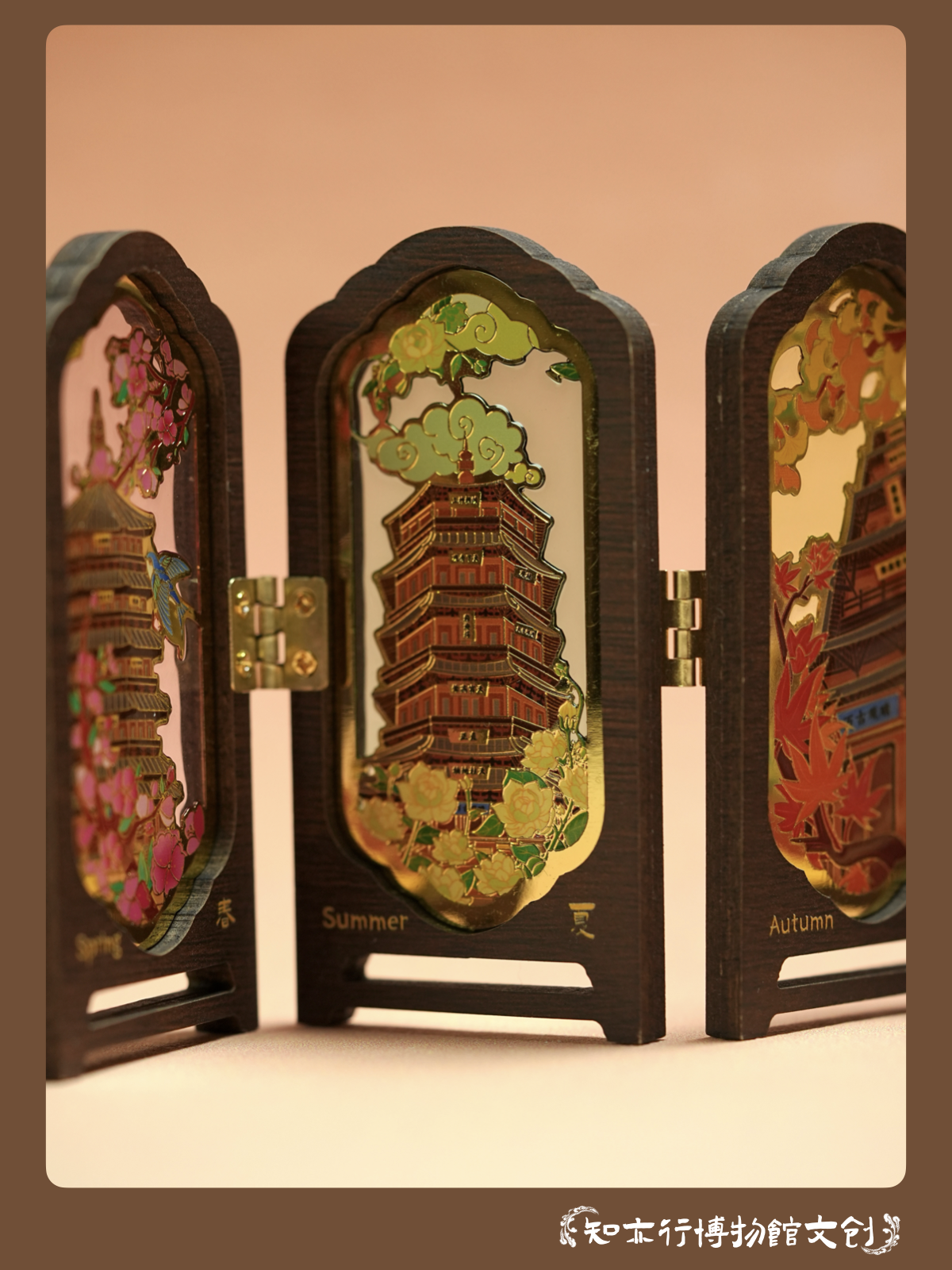 应县木塔四时景屏风冰箱贴摆件木制古风装饰山西文创礼物纪念品