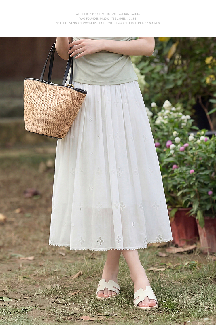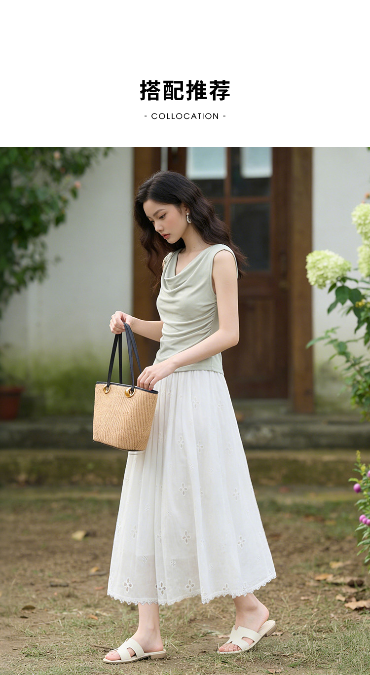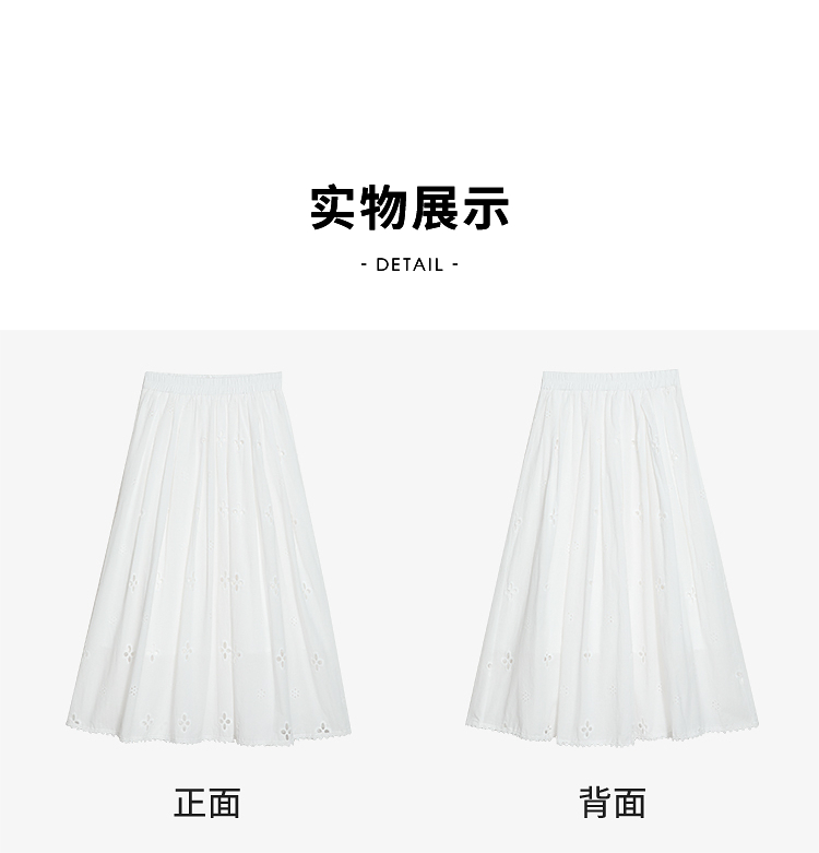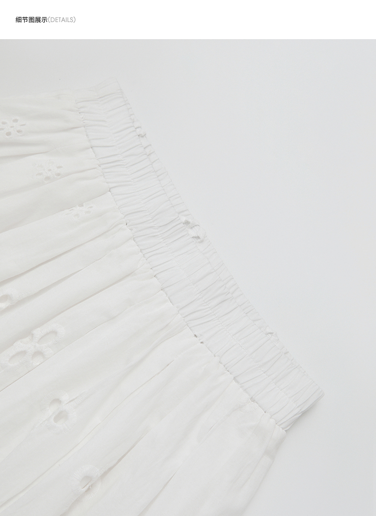 西遇法式刺绣2026春夏新款质感镂空花边高腰A字褶皱宽松半身伞裙H0060221
