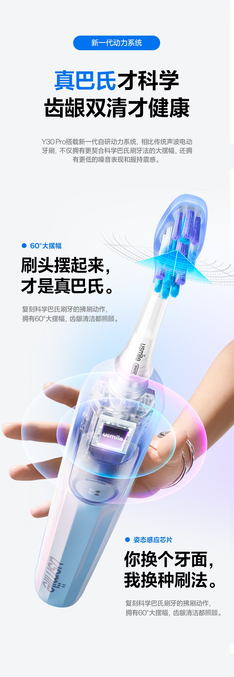 笑容加usmile电动牙刷成人男女情侣款礼物智能Y30PRO