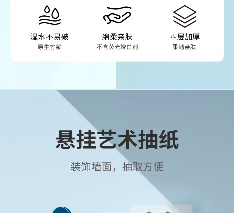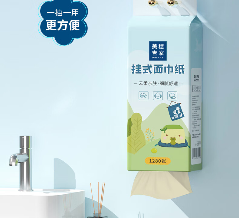 美穗吉家 挂式面巾纸 原生竹浆4层320抽*2提