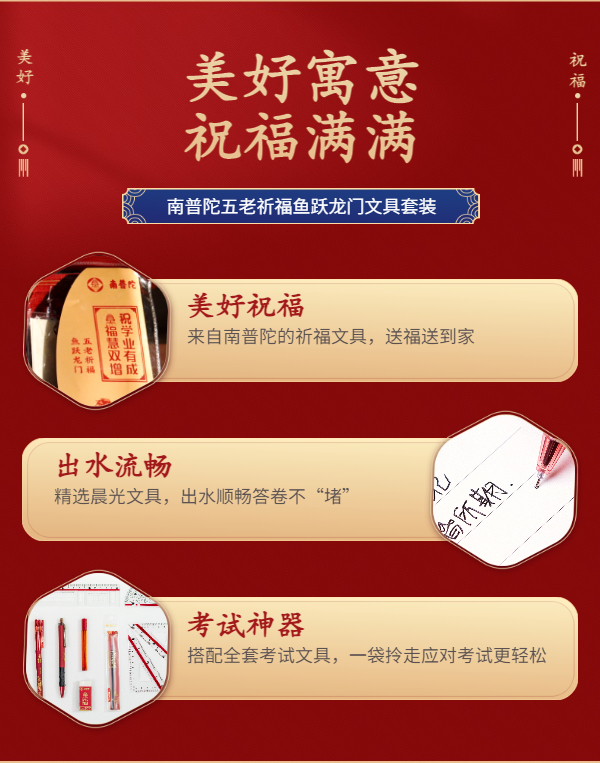 南普陀祈福文具考试套装 五老祈福 鱼跃龙门 祝学业有成 福慧双增 中高考必备