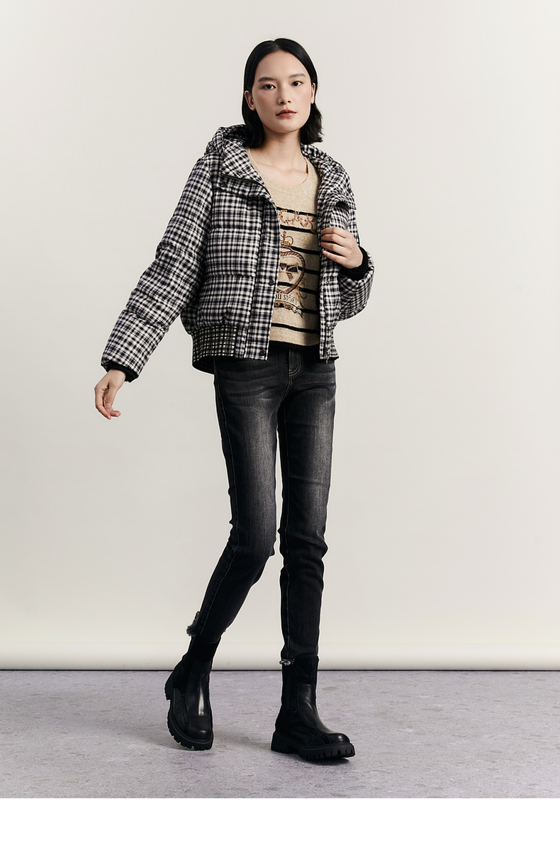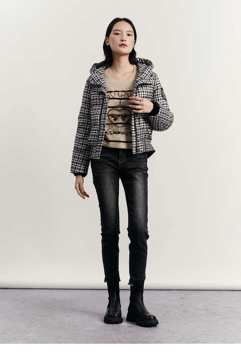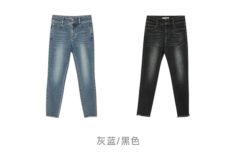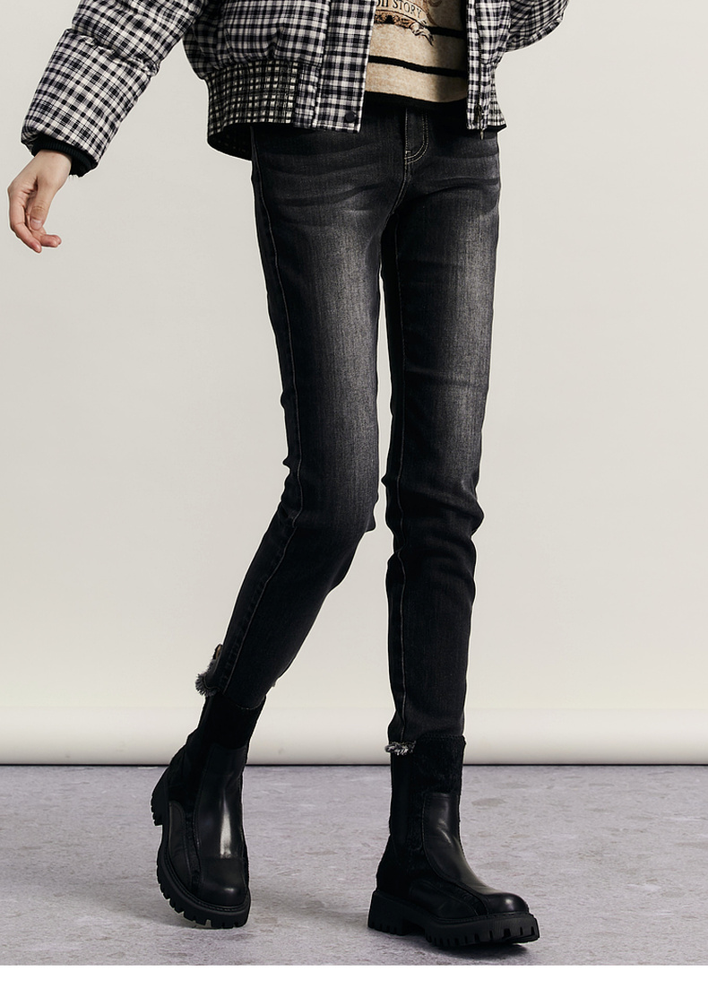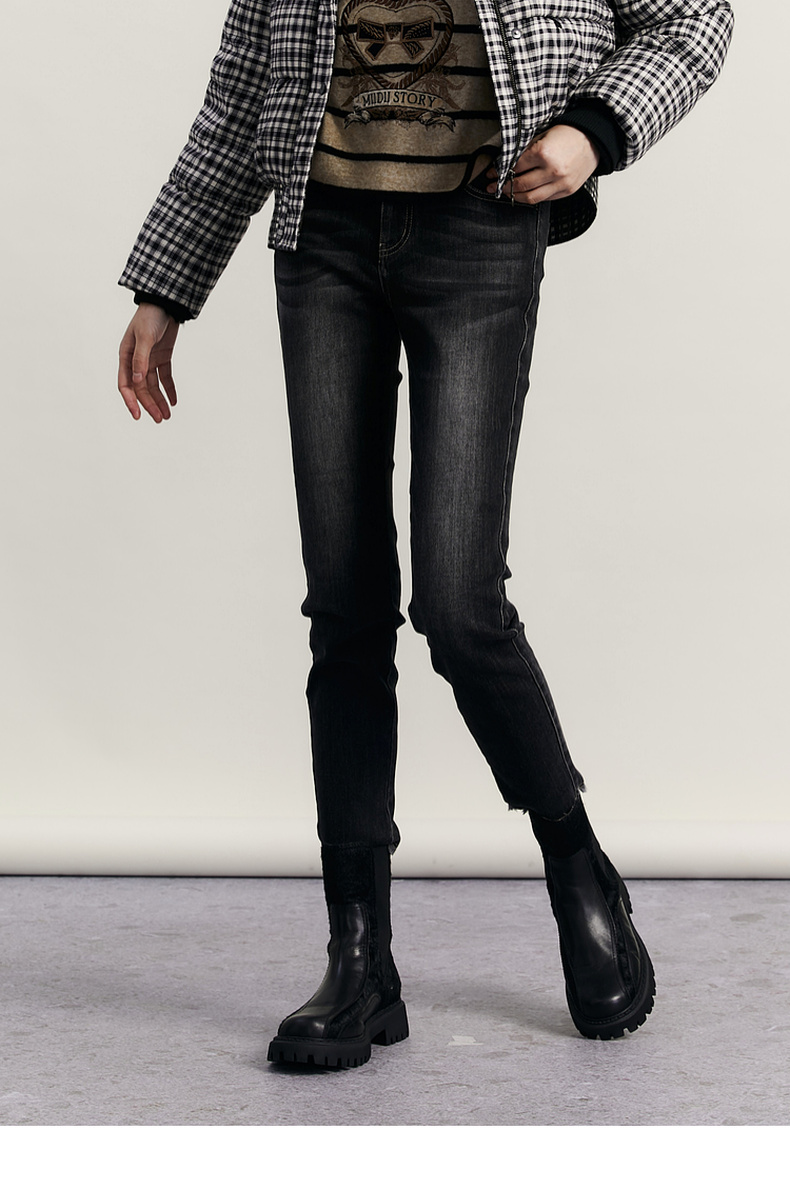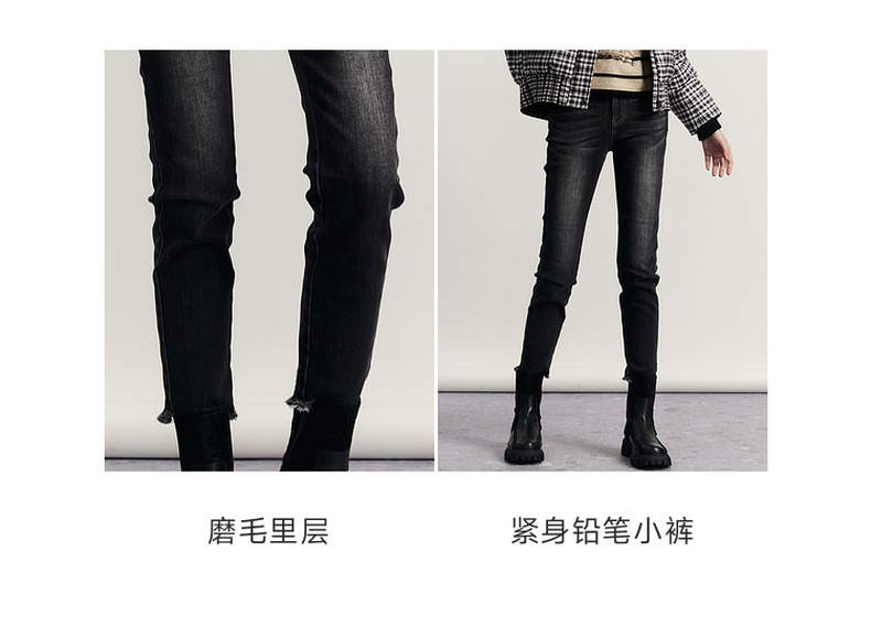 谜底磨毛保暖牛仔裤女2023冬款复古百搭紧身铅笔九分裤234MK1596
