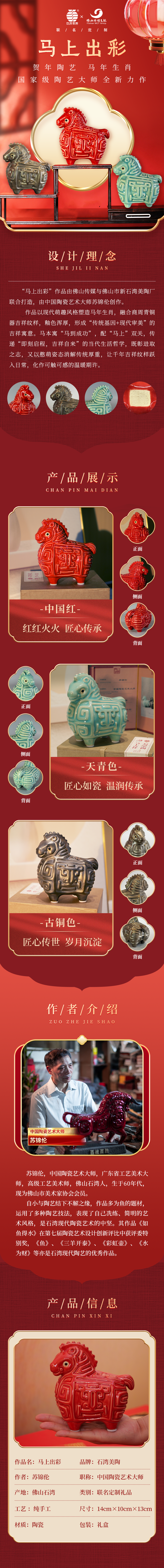马上出彩 陶艺摆件 佛山传媒文旅×石湾美陶联名定制 苏锦伦作品 带礼盒带证书
