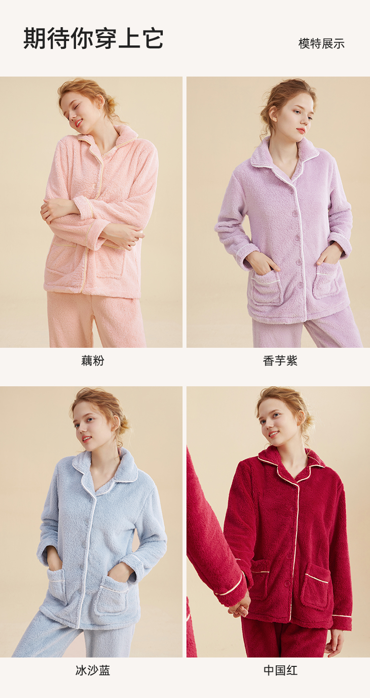 都市丽人秋冬睡衣长袖长裤长毛绒家居服2H3013