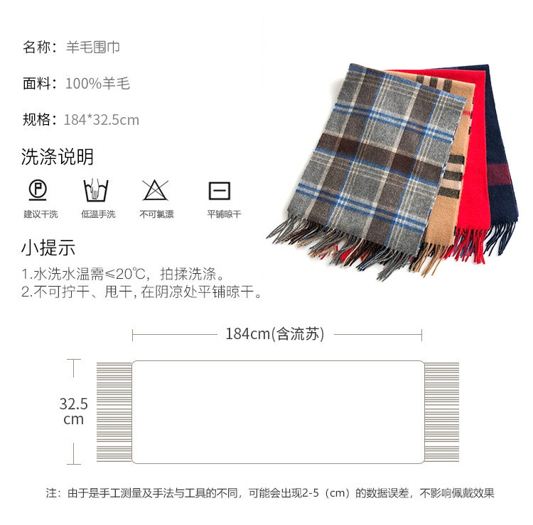 【5天左右发】日本100%绵羊毛男女情侣款围巾(礼盒装) 186*32.5cm