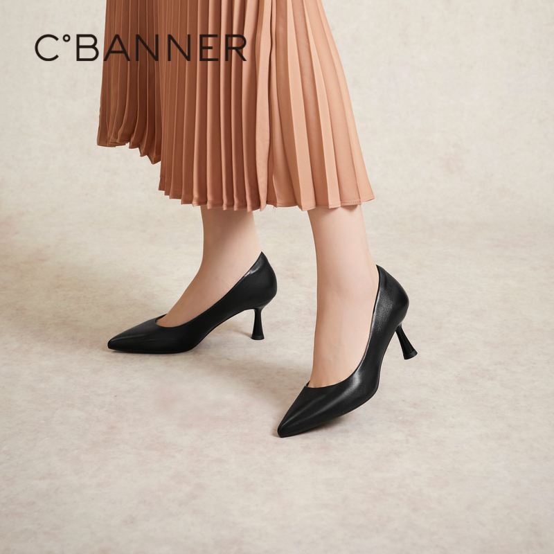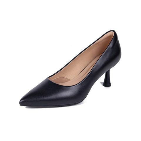千百度羊皮裸色细高跟鞋女尖头通勤浅口气质法式单鞋A25185601