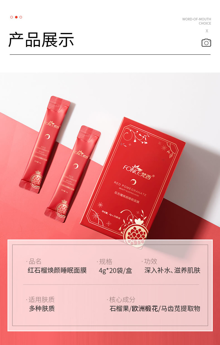 【99元任选3件】梵西红石榴睡眠面膜夜间免洗补水保湿修护提亮肤色改善暗沉面膜