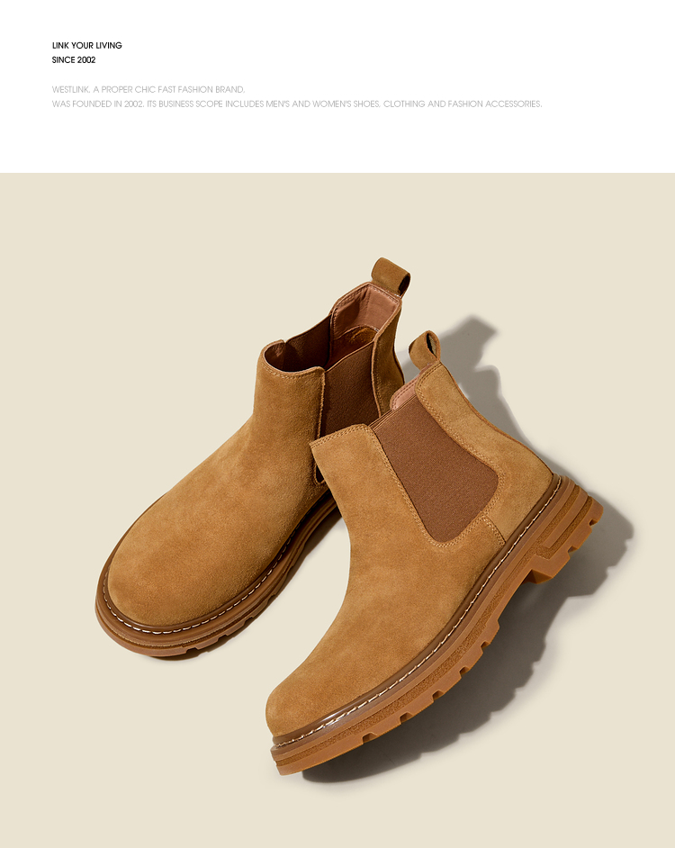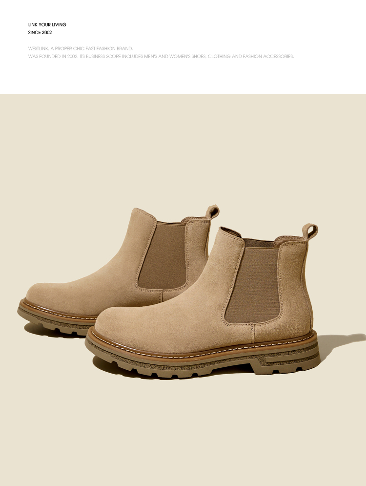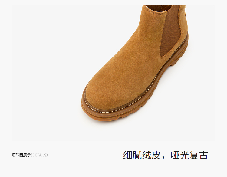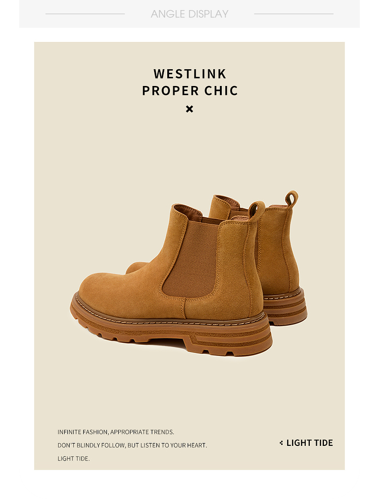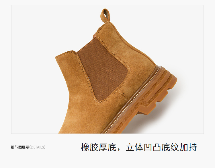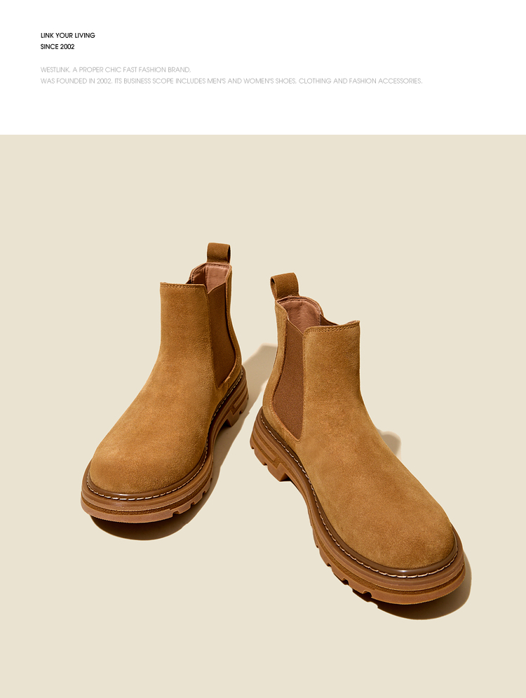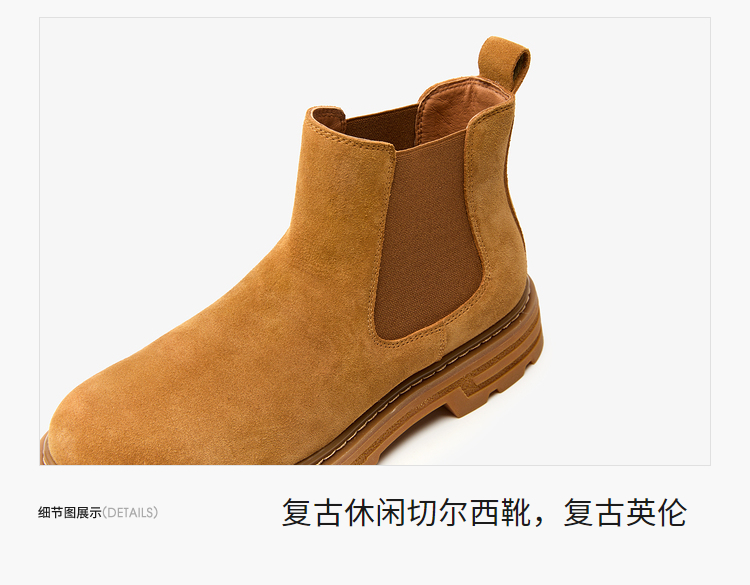 西遇切尔西靴子男2024新款秋冬复古英伦风棕色套筒靴低帮厚底短靴23945580