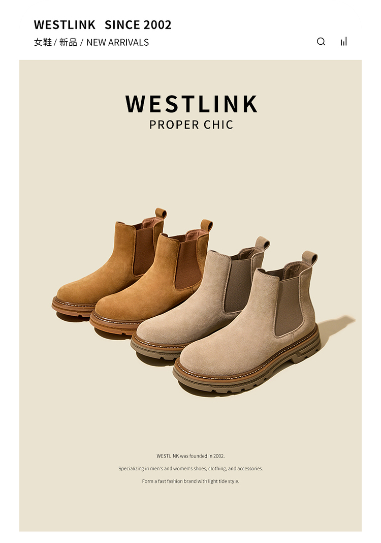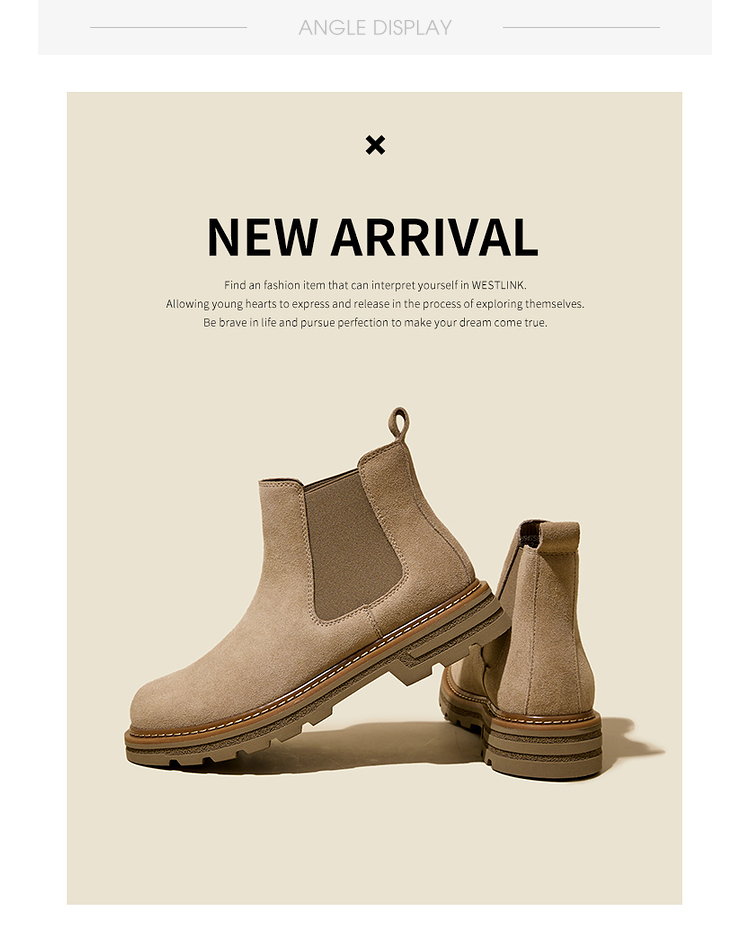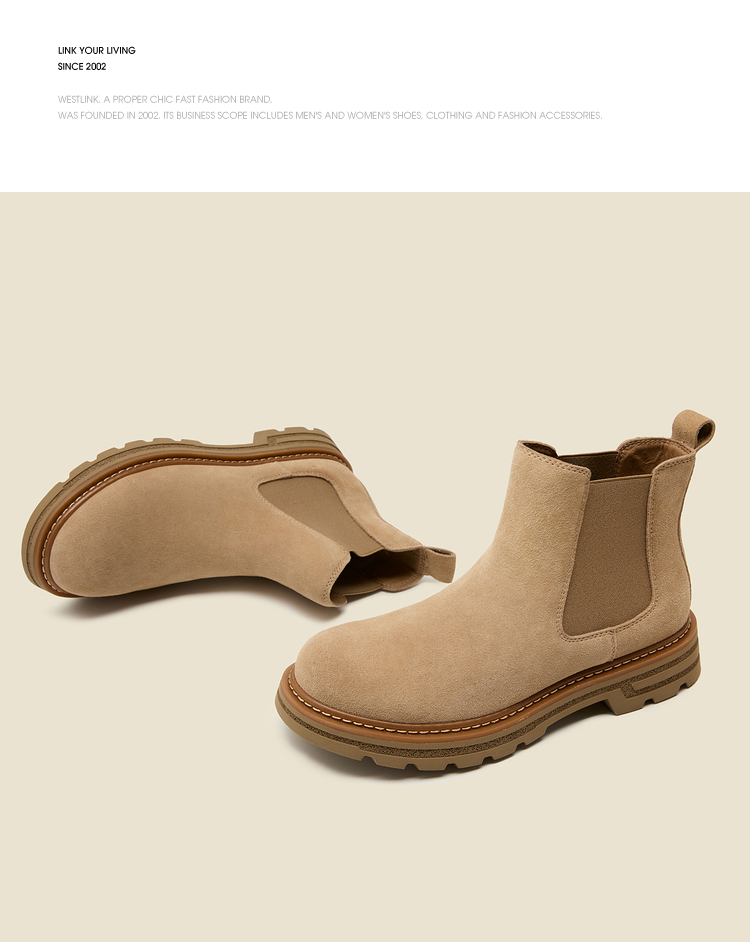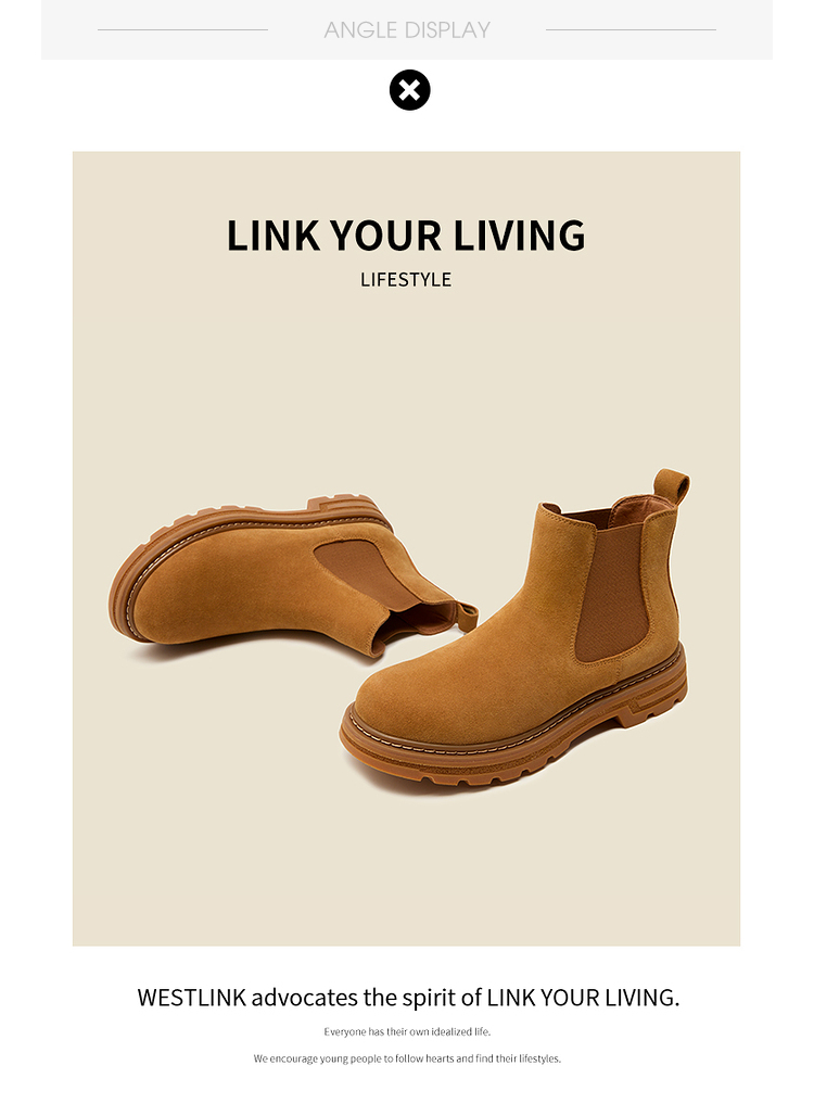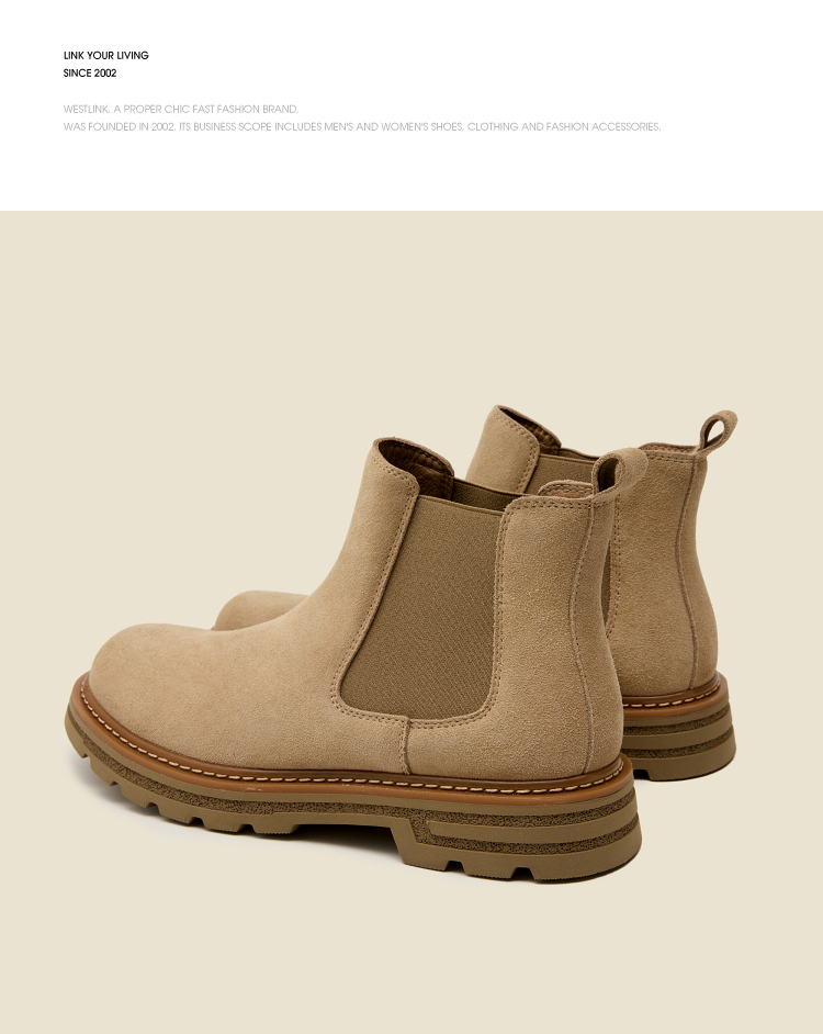 西遇切尔西靴子男2024新款秋冬复古英伦风棕色套筒靴低帮厚底短靴23945580