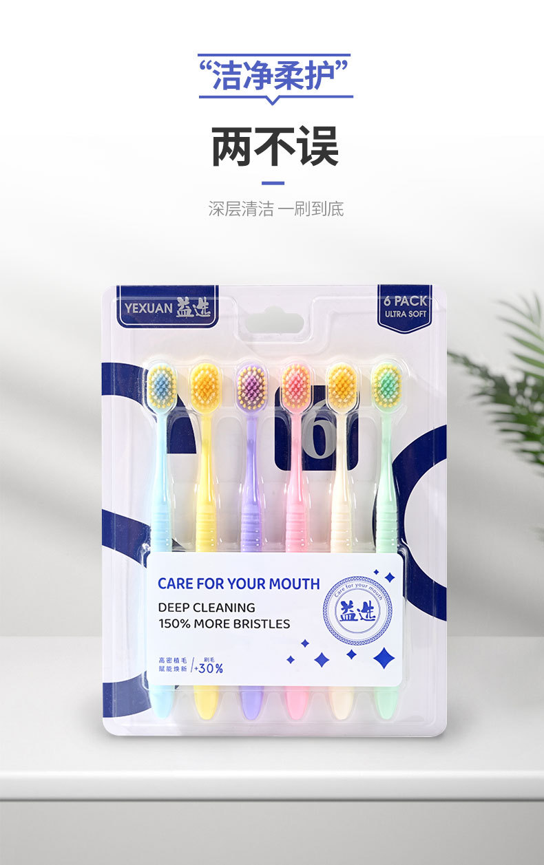 「6支装!山姆同款」牙刷宽头家庭六支装 成人软毛牙刷大头家用护龈牙刷口腔护理