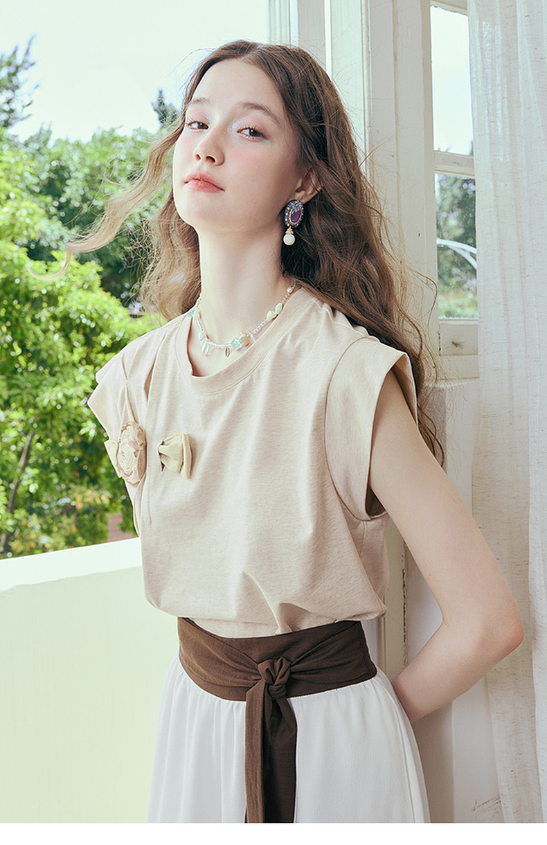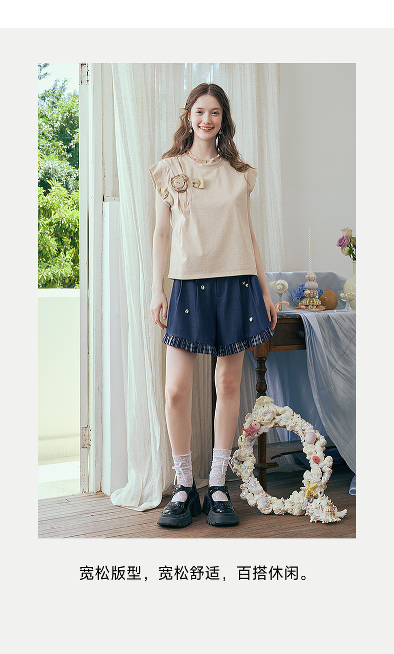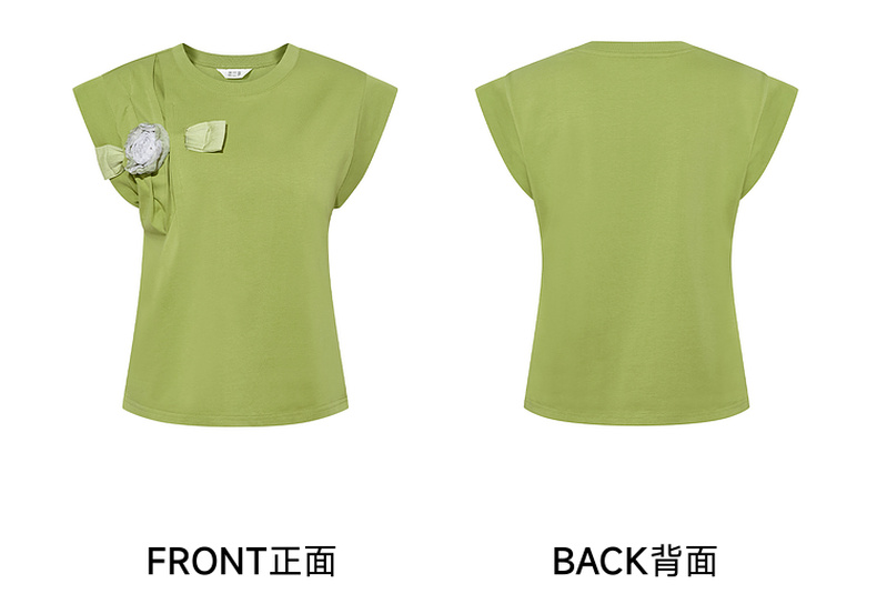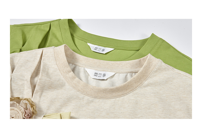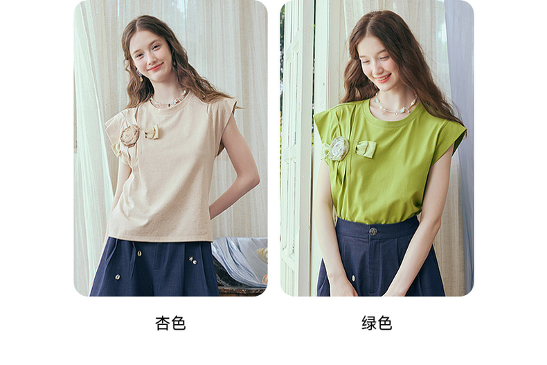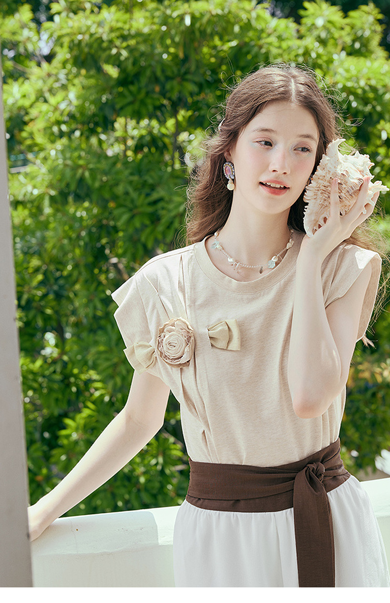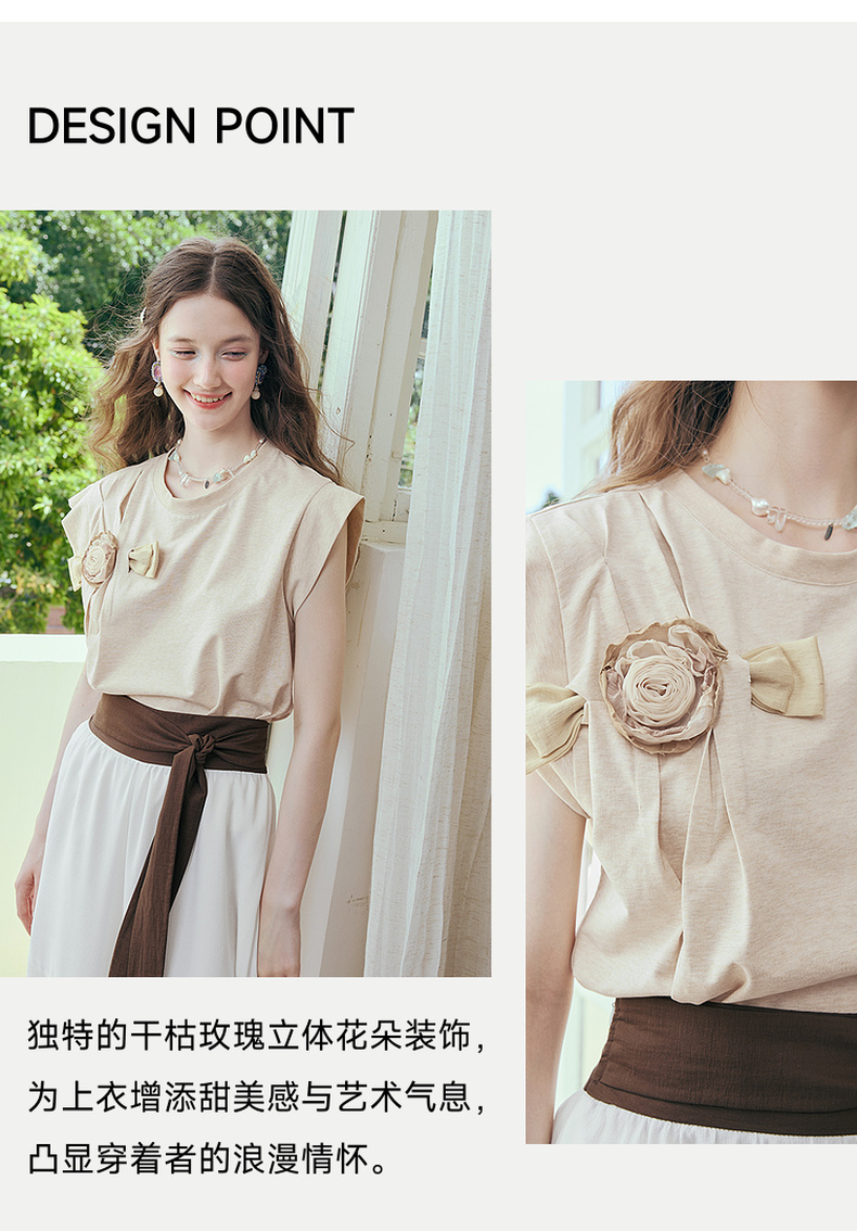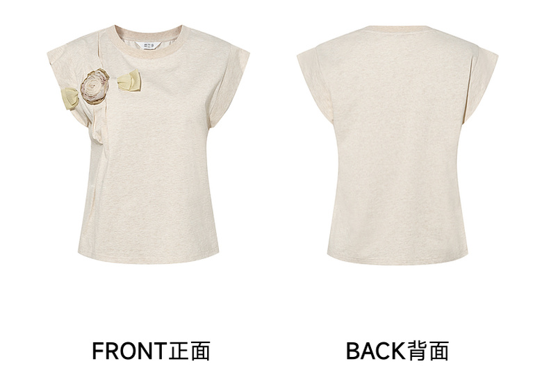 两三事 花蕾诗笺 2025夏季新款小清新立体花朵飞飞袖棉质t恤女