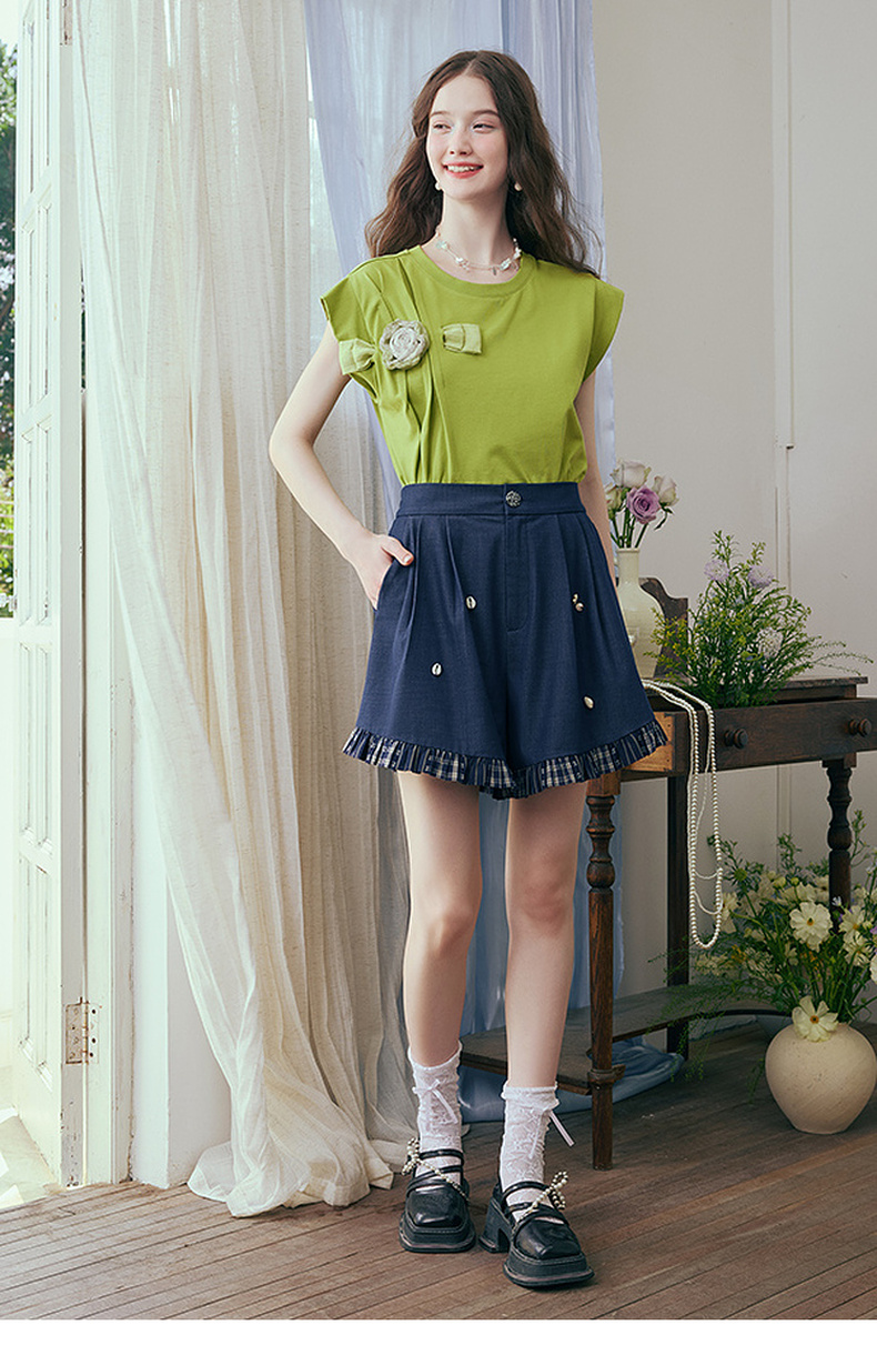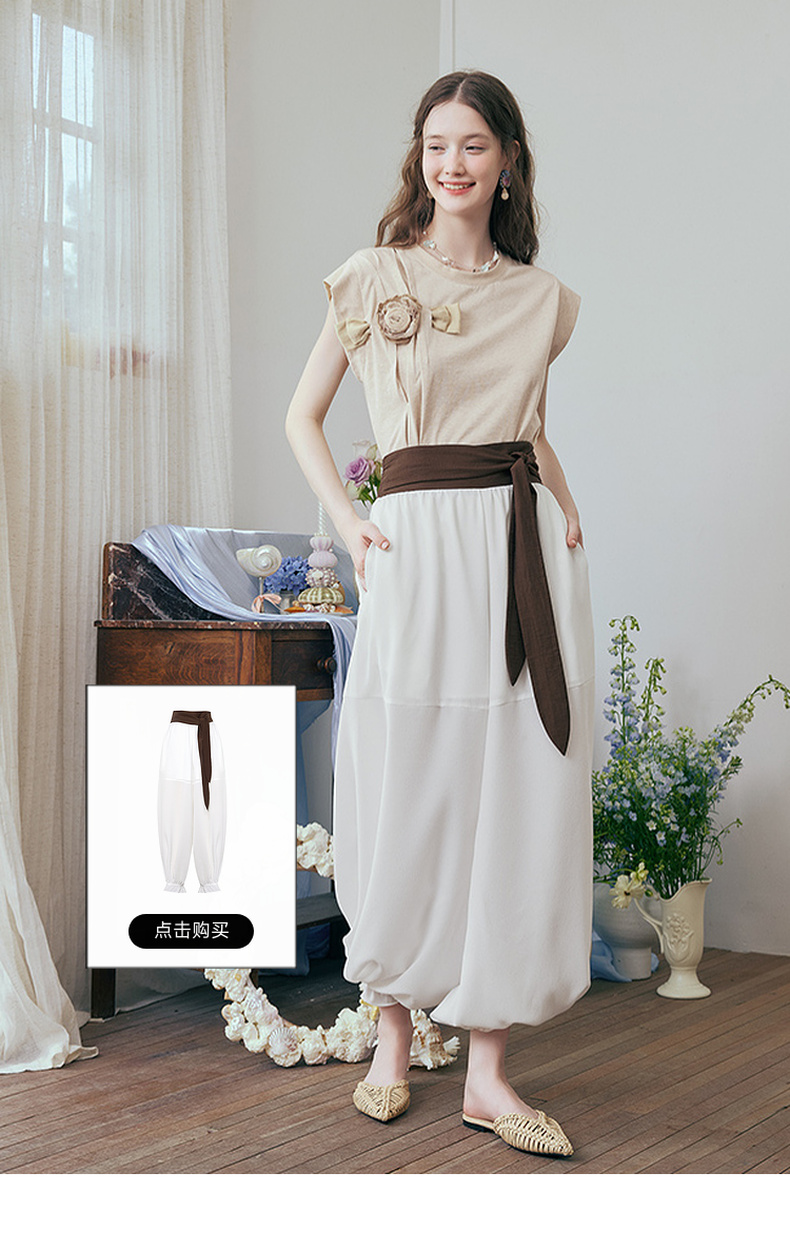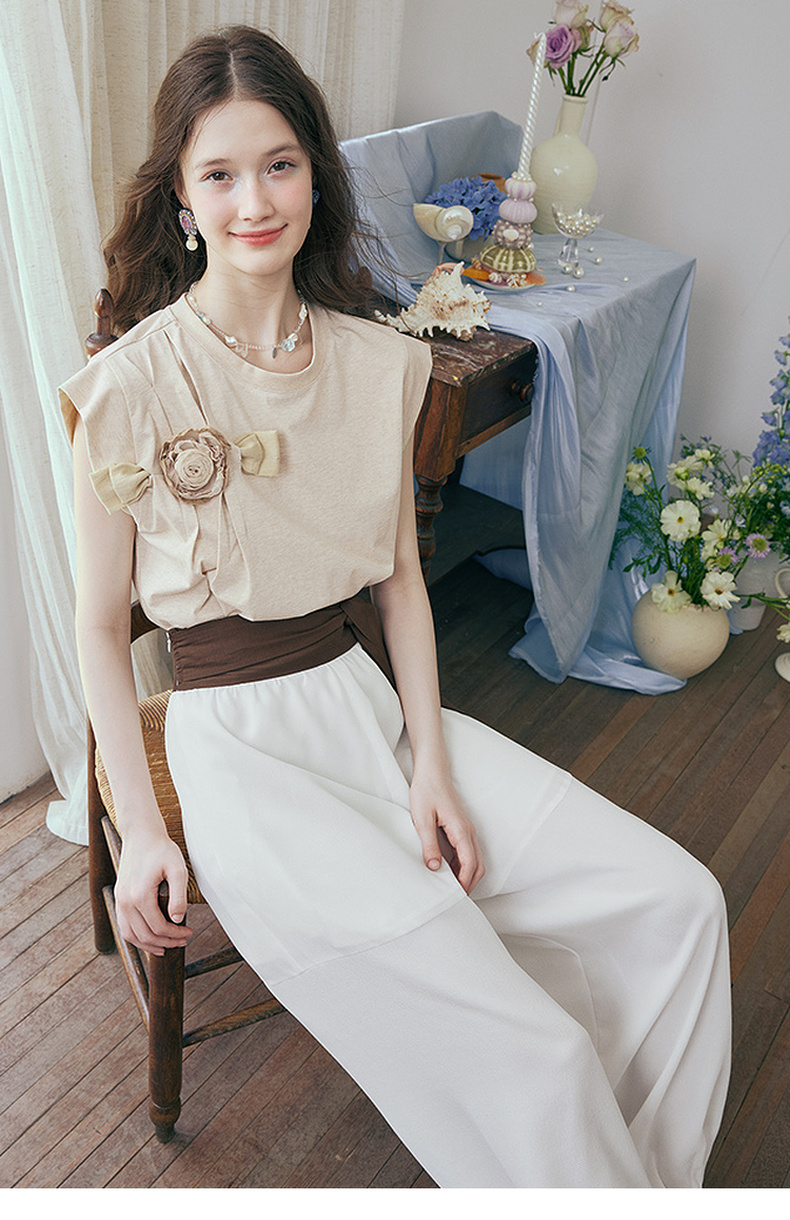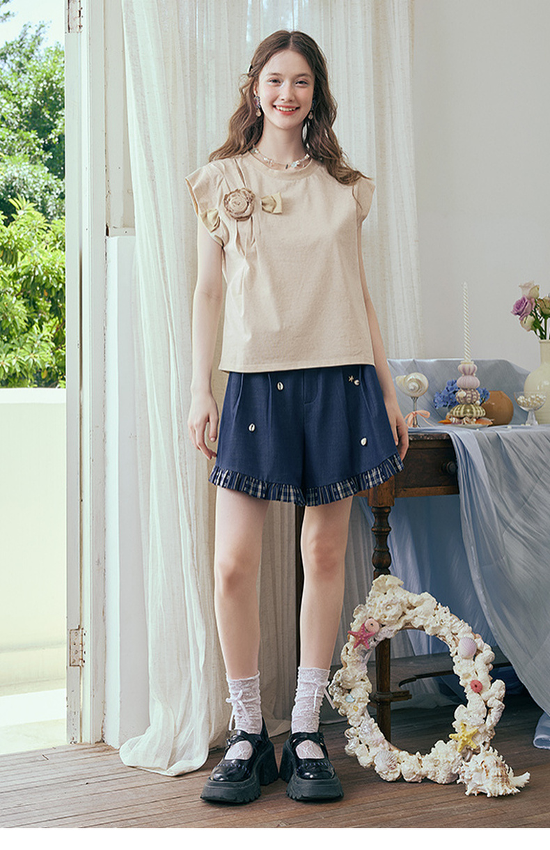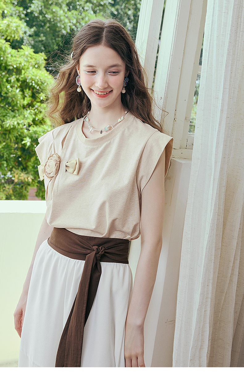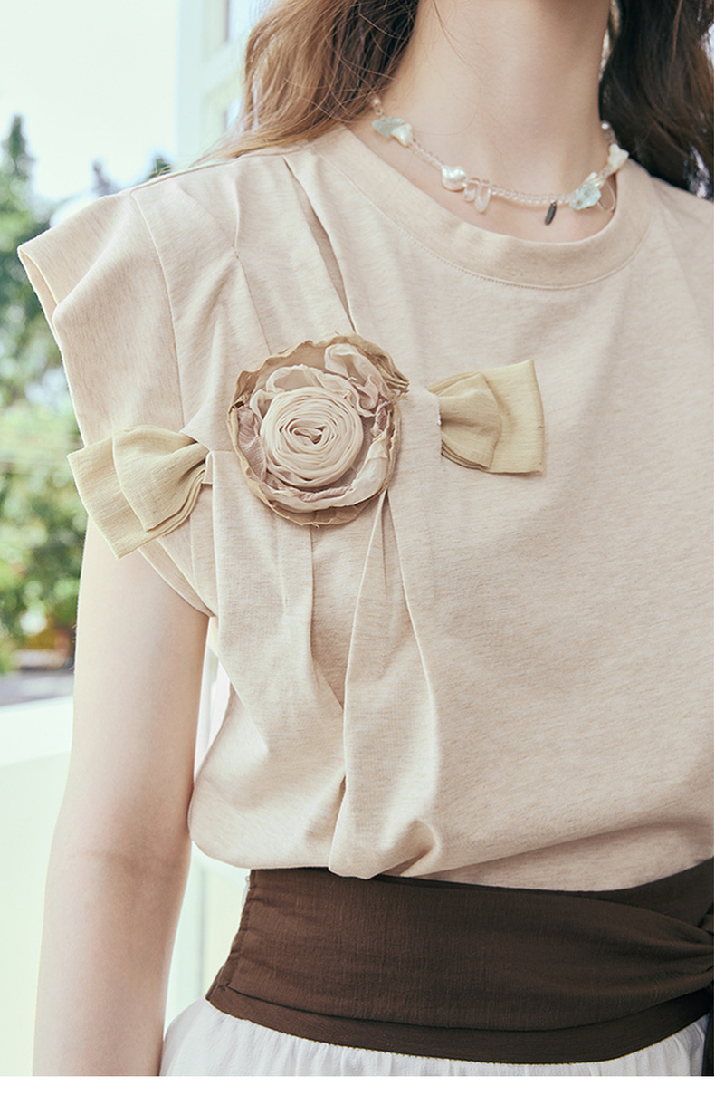 两三事 花蕾诗笺 2025夏季新款小清新立体花朵飞飞袖棉质t恤女