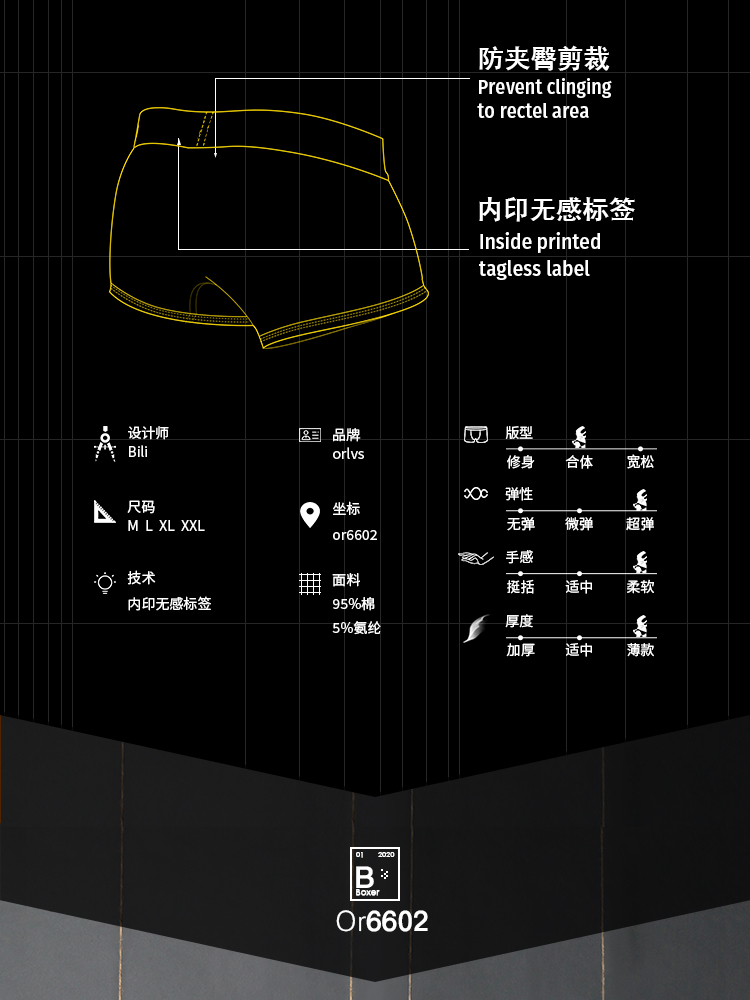ORLVS 黑白色平角内裤 OR6602