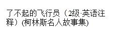 了不起的飞行员(2级·英语注释)(柯林斯名人故事集)