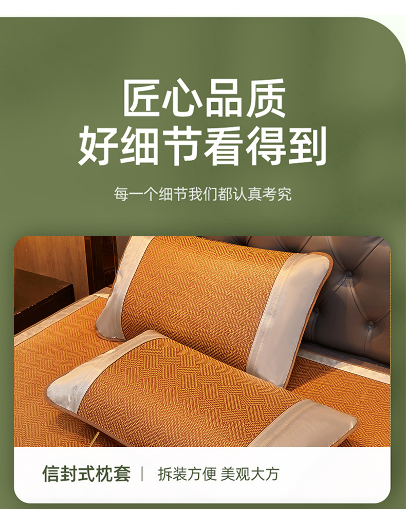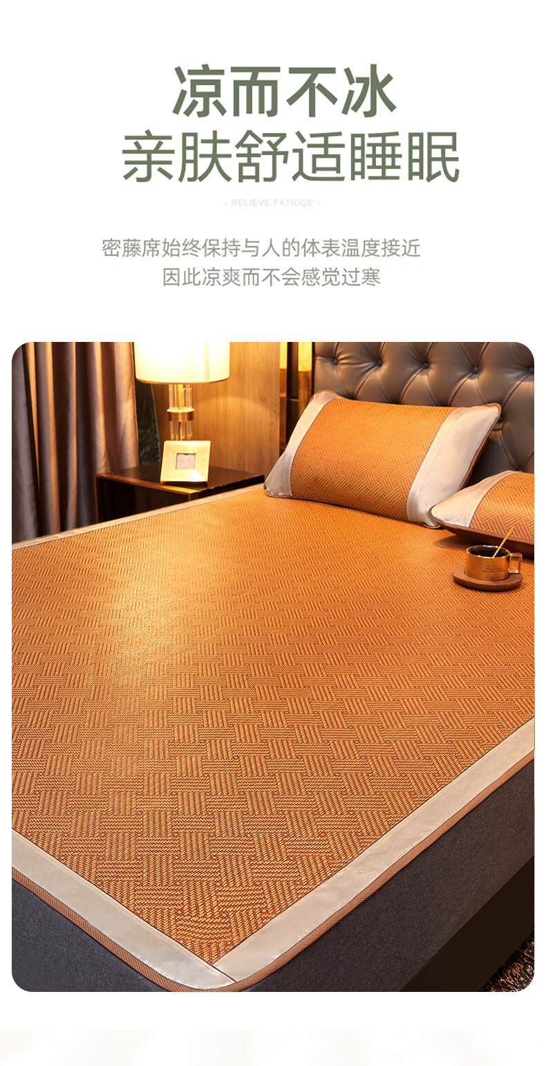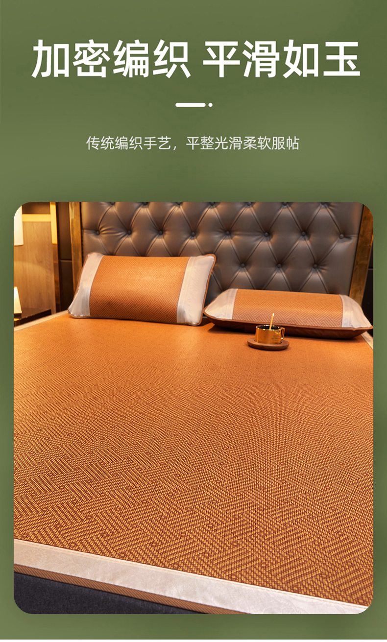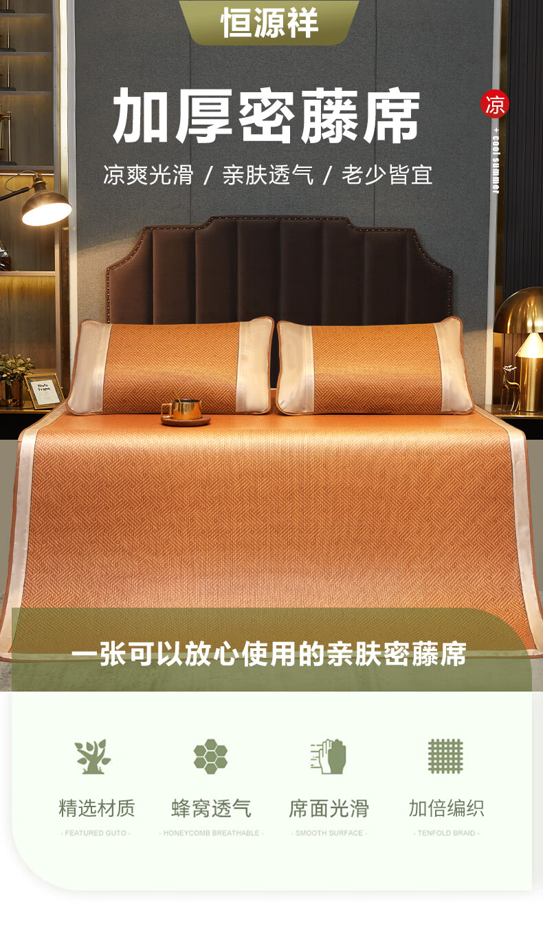 恒源祥凉席套件加厚藤席子1.8米床双人空调席三件套 饼干花 HYTX04