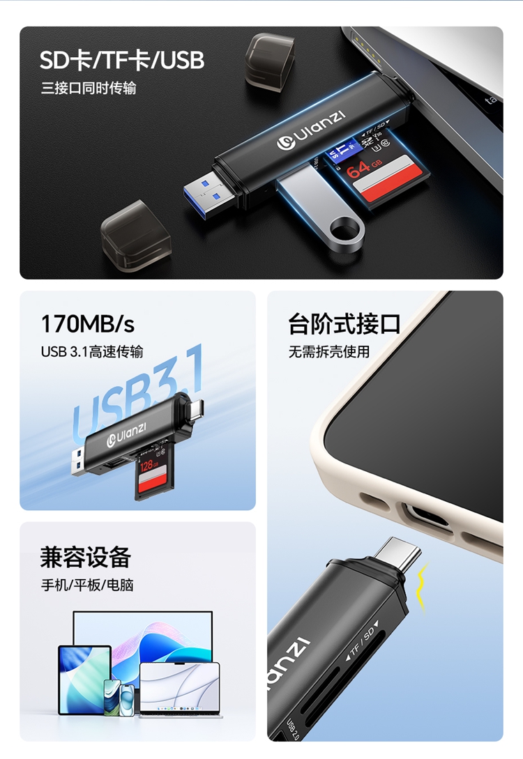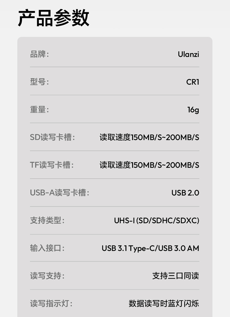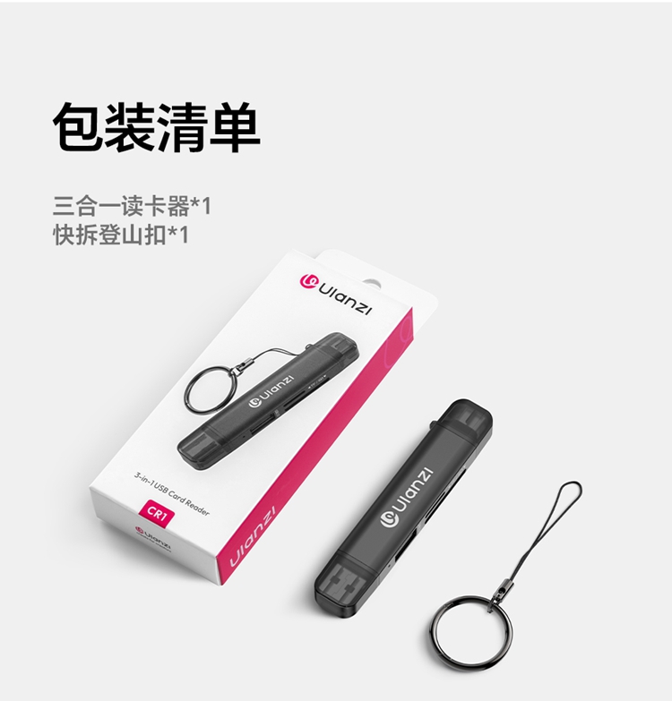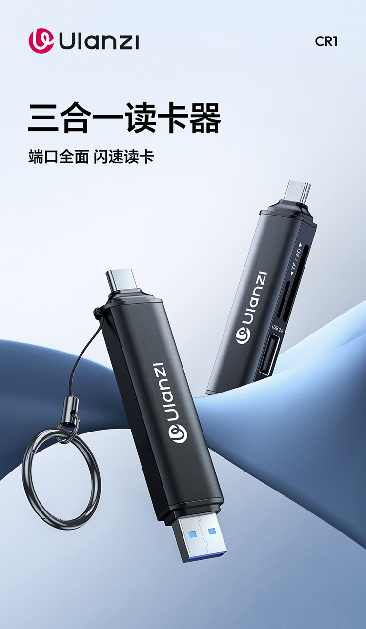 Ulanzi优篮子CR1三合一高速读卡器SD卡/TF卡闪传设备USB 3.1接口内存储卡读取typec即插即用兼容手机平板电脑