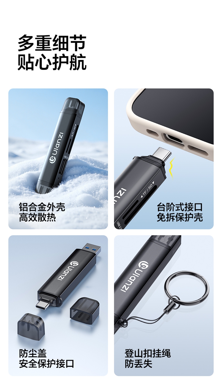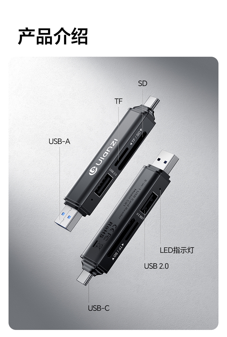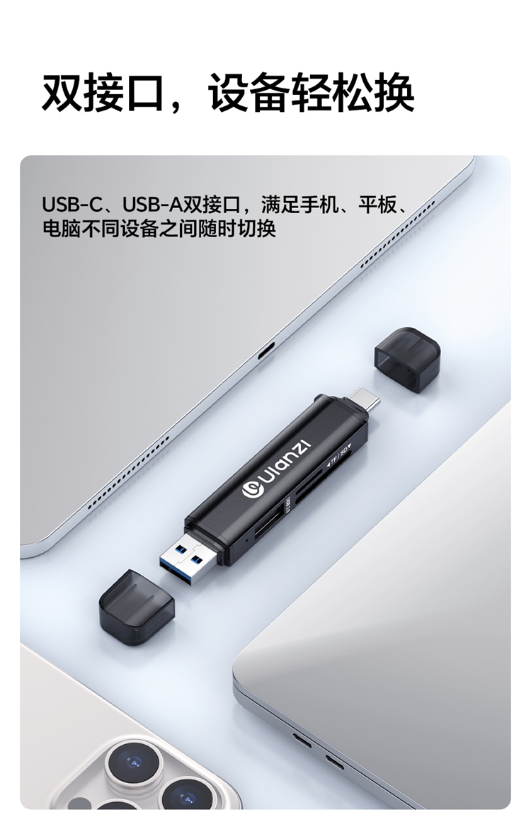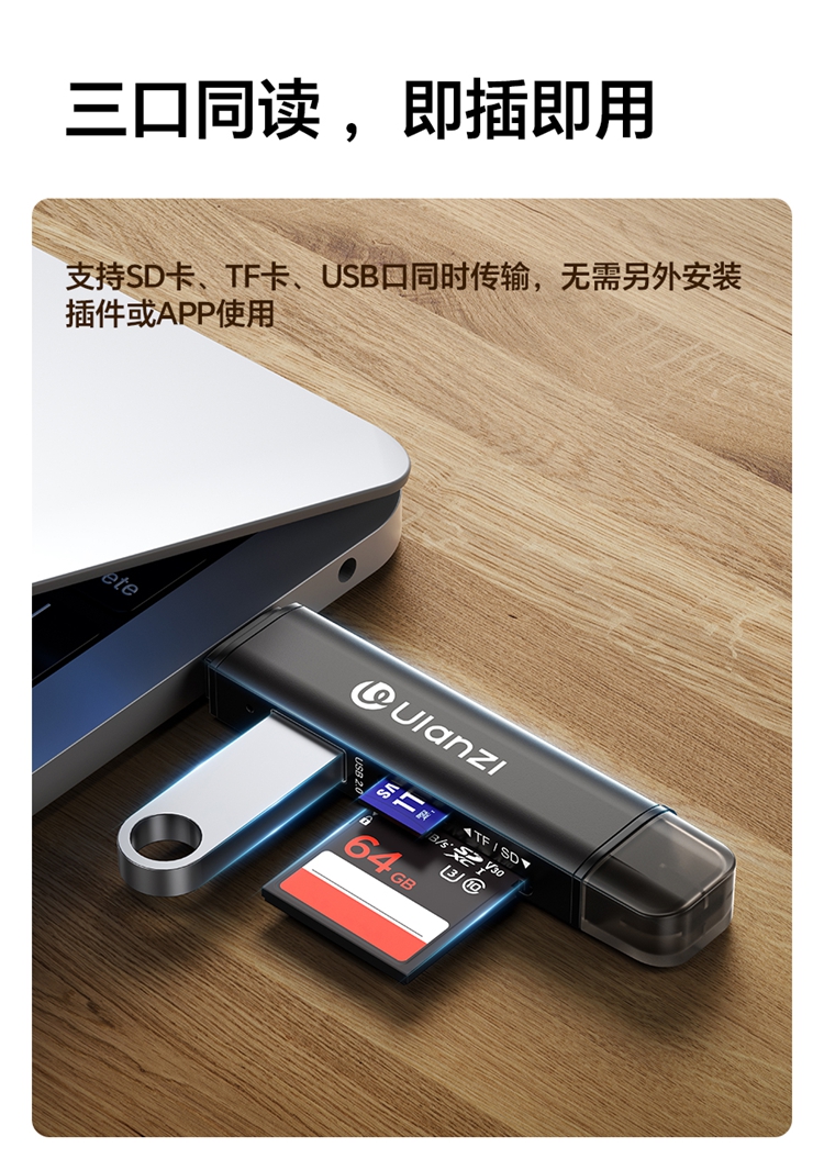 Ulanzi优篮子CR1三合一高速读卡器SD卡/TF卡闪传设备USB 3.1接口内存储卡读取typec即插即用兼容手机平板电脑