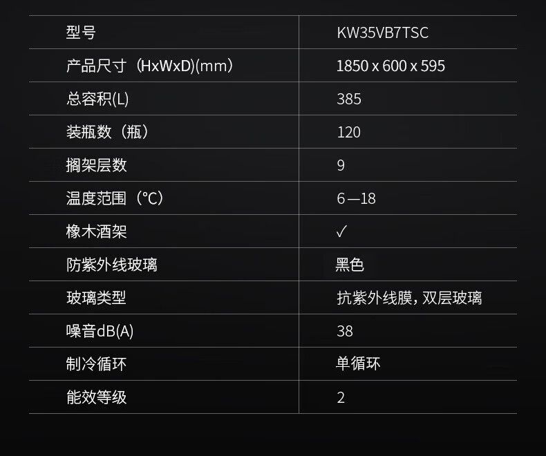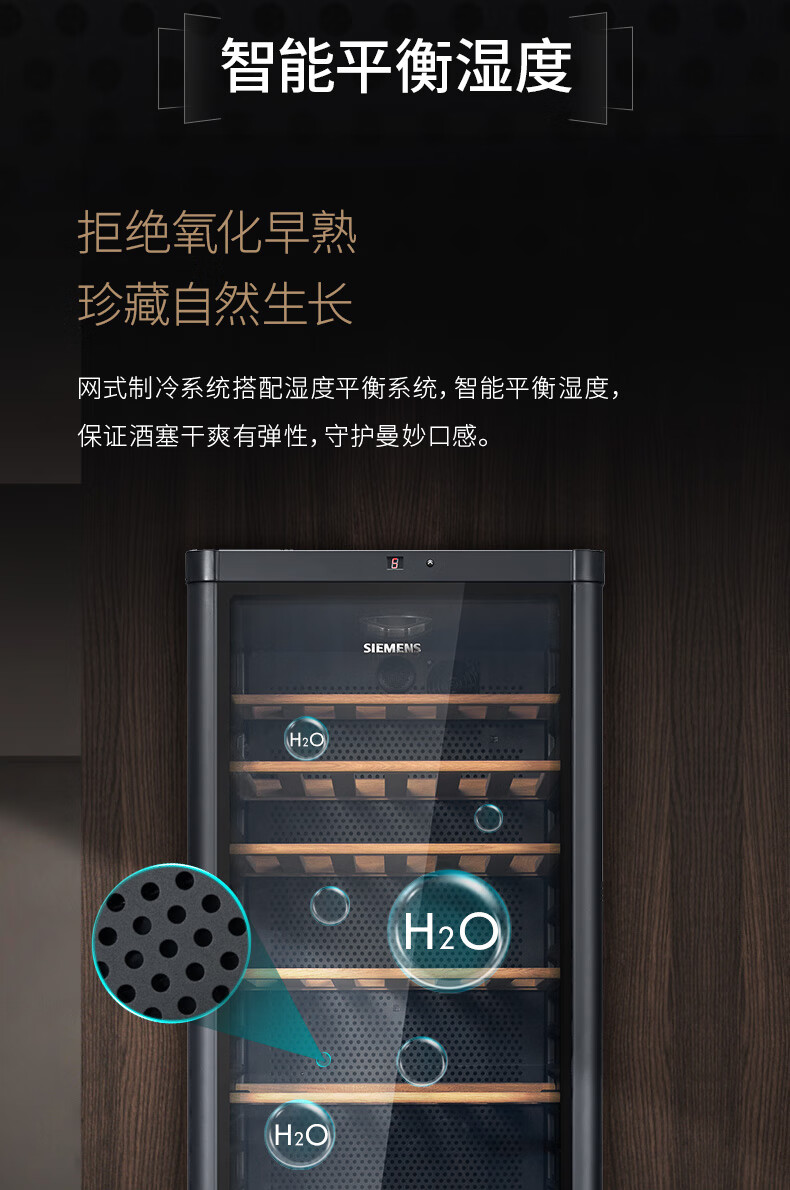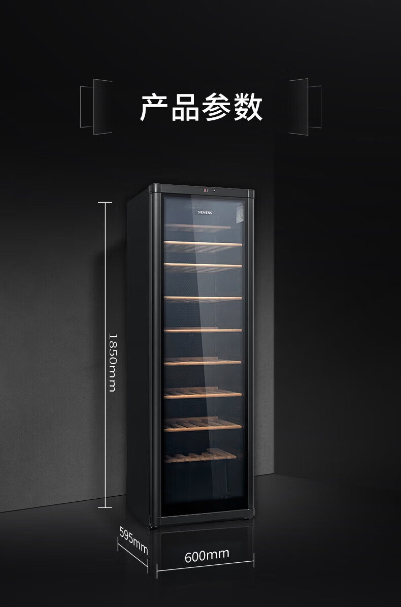 西门子(SIEMENS)酒柜 红酒柜家用 葡萄酒柜恒温冷藏 进口橡木酒架 黑色 KW35VB7TSC- 120瓶