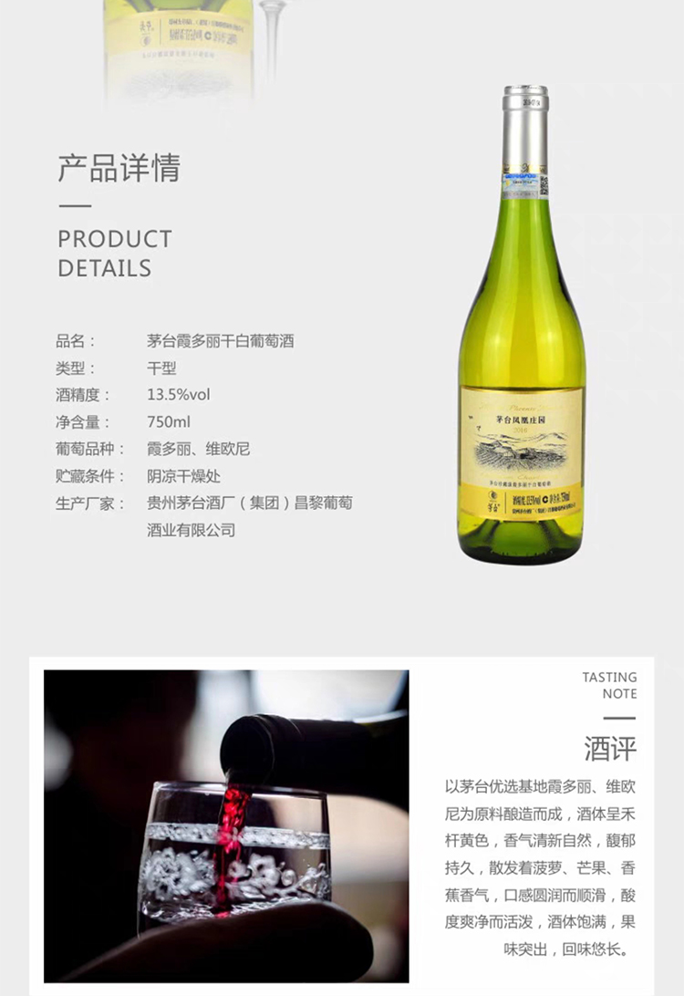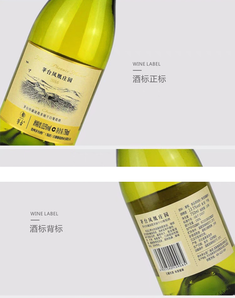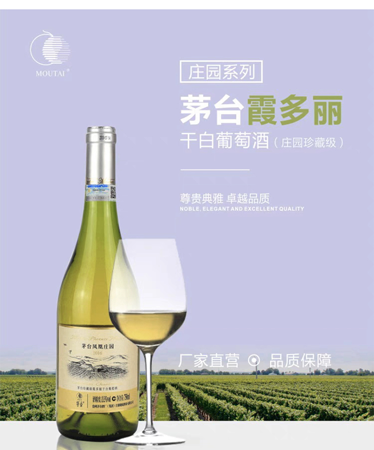 茅台凤凰庄园珍藏级霞多丽干白葡萄酒 整箱750ml*6瓶包邮