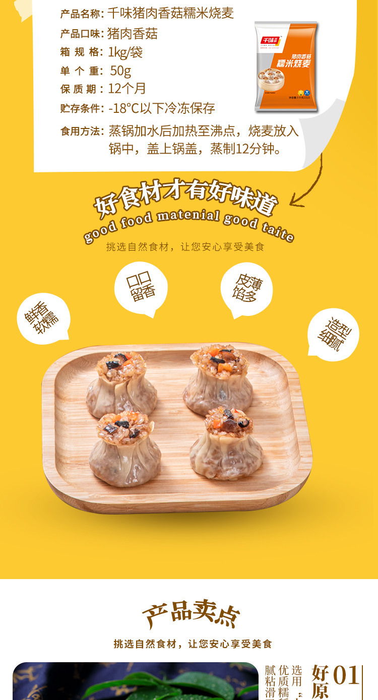 千味 早餐【香菇】大烧麦800g*2袋