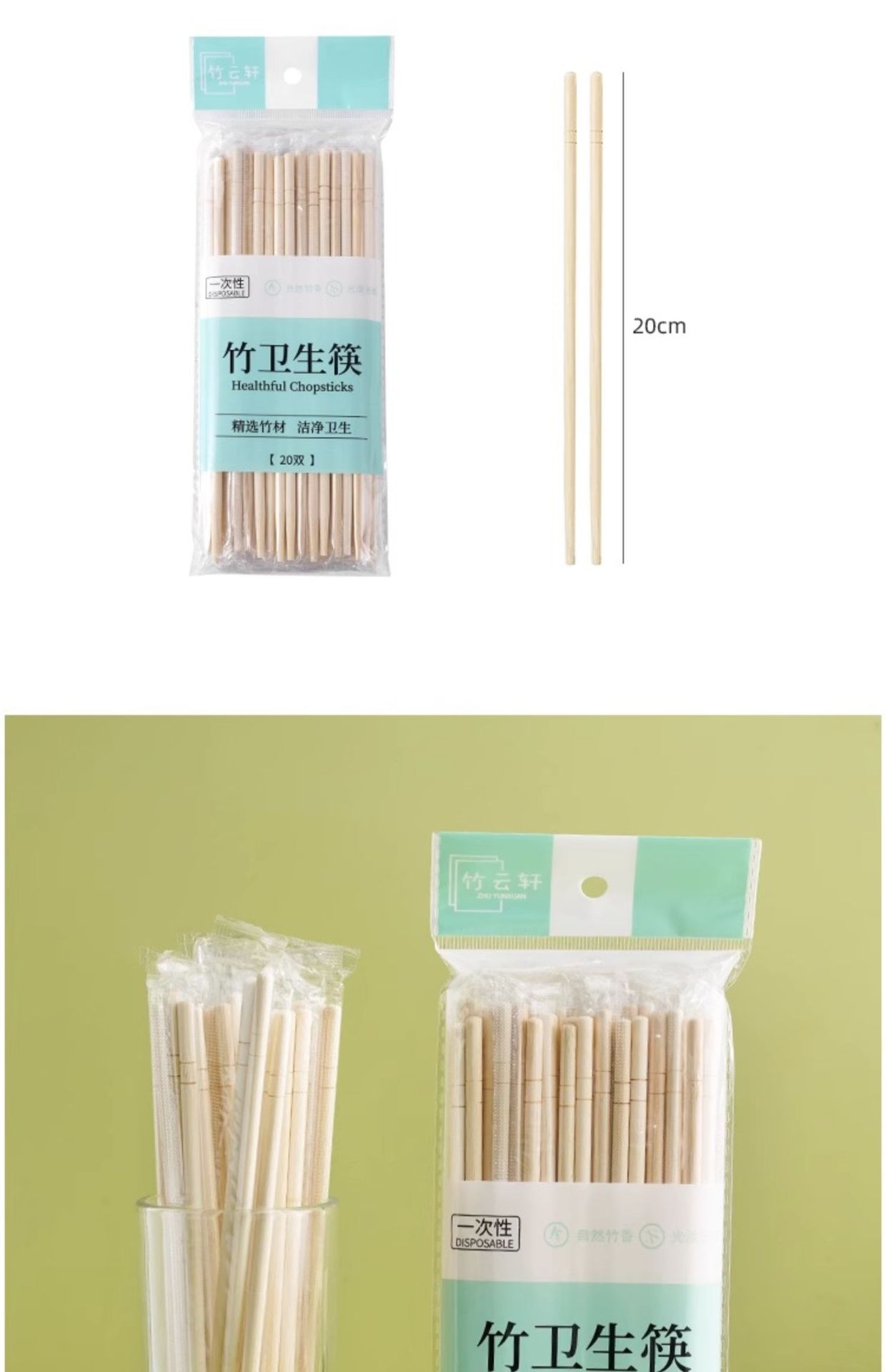 「20双装!一次性筷子」家用独立包装方便卫生筷快餐碗筷餐具商用外卖饭店竹筷餐饮用具