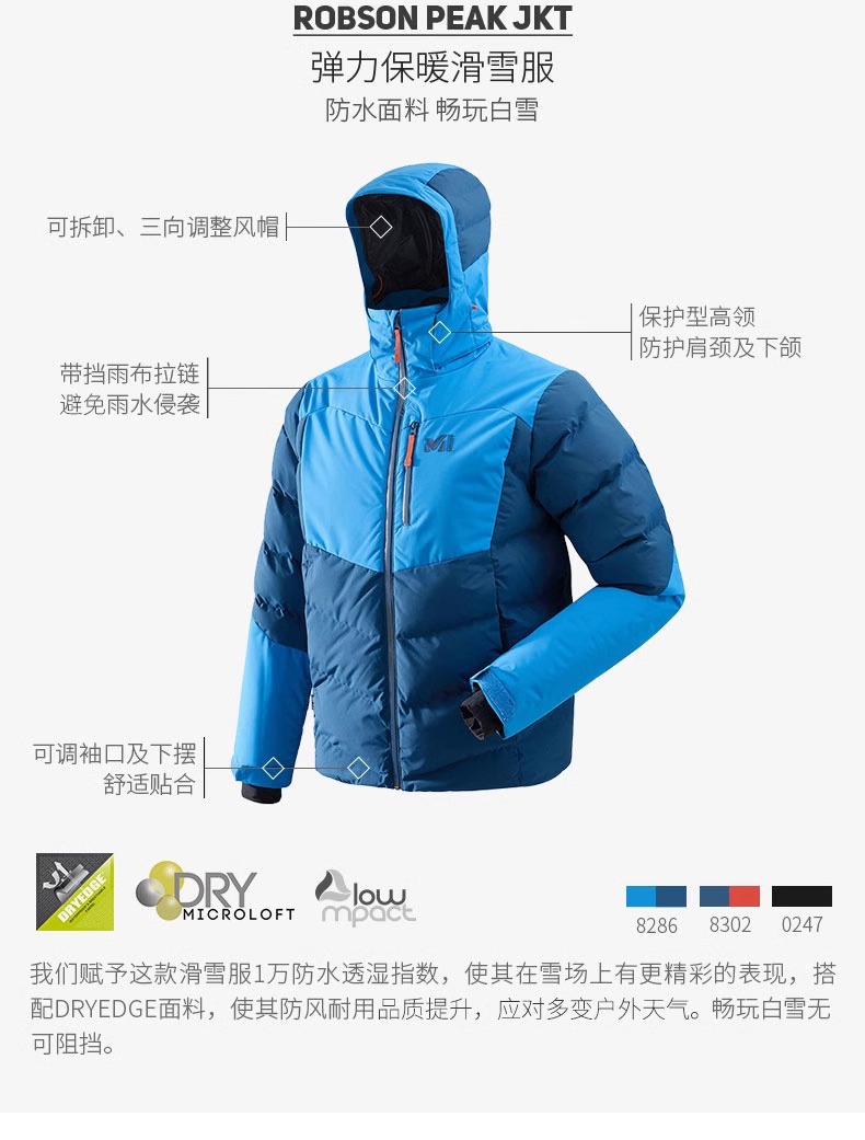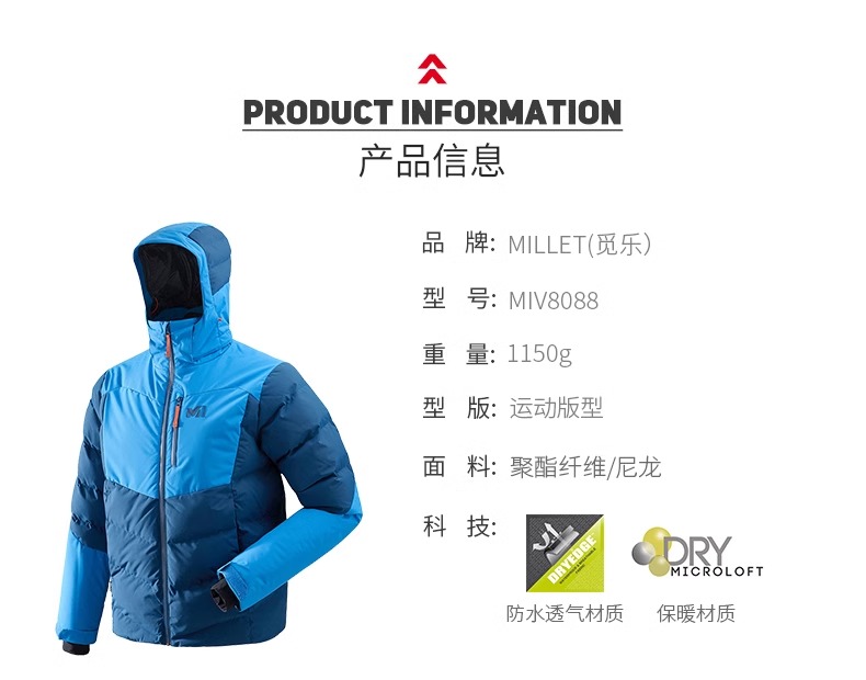 法国觅乐MILLET 男款滑雪服DRYEDG™防水透气保暖环保连帽外套 MIV8088 MIV7465
