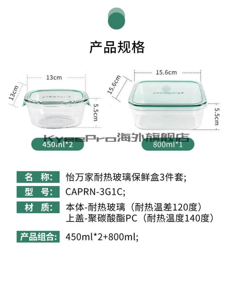 怡万家玻璃保鲜碗3件套CAPRN-3G1C
