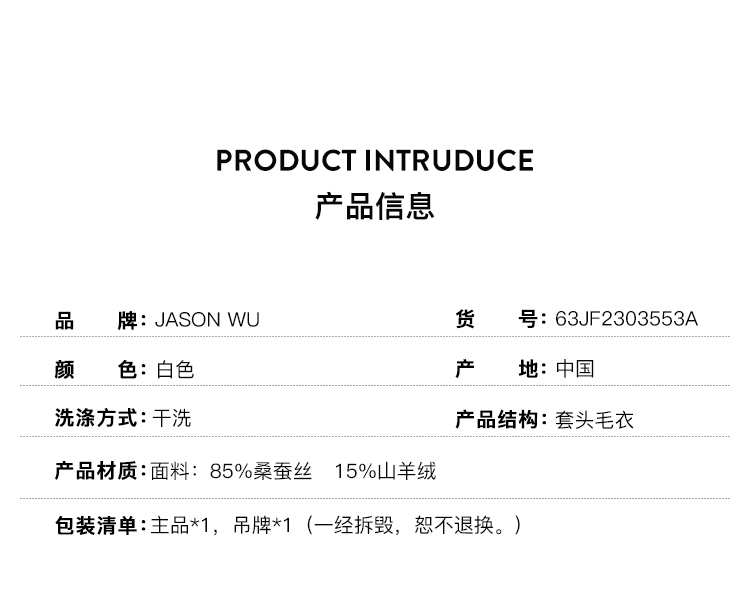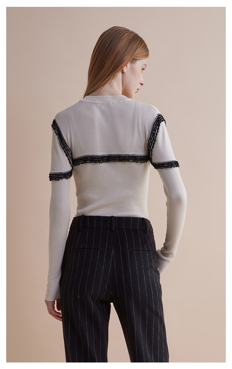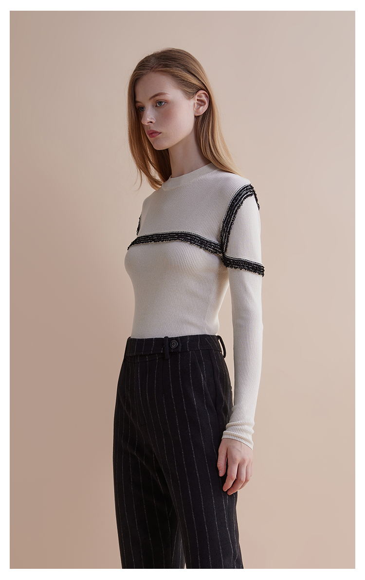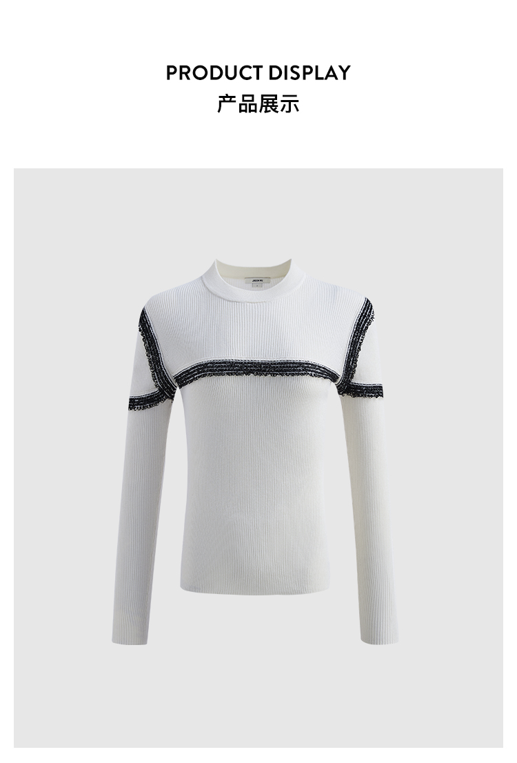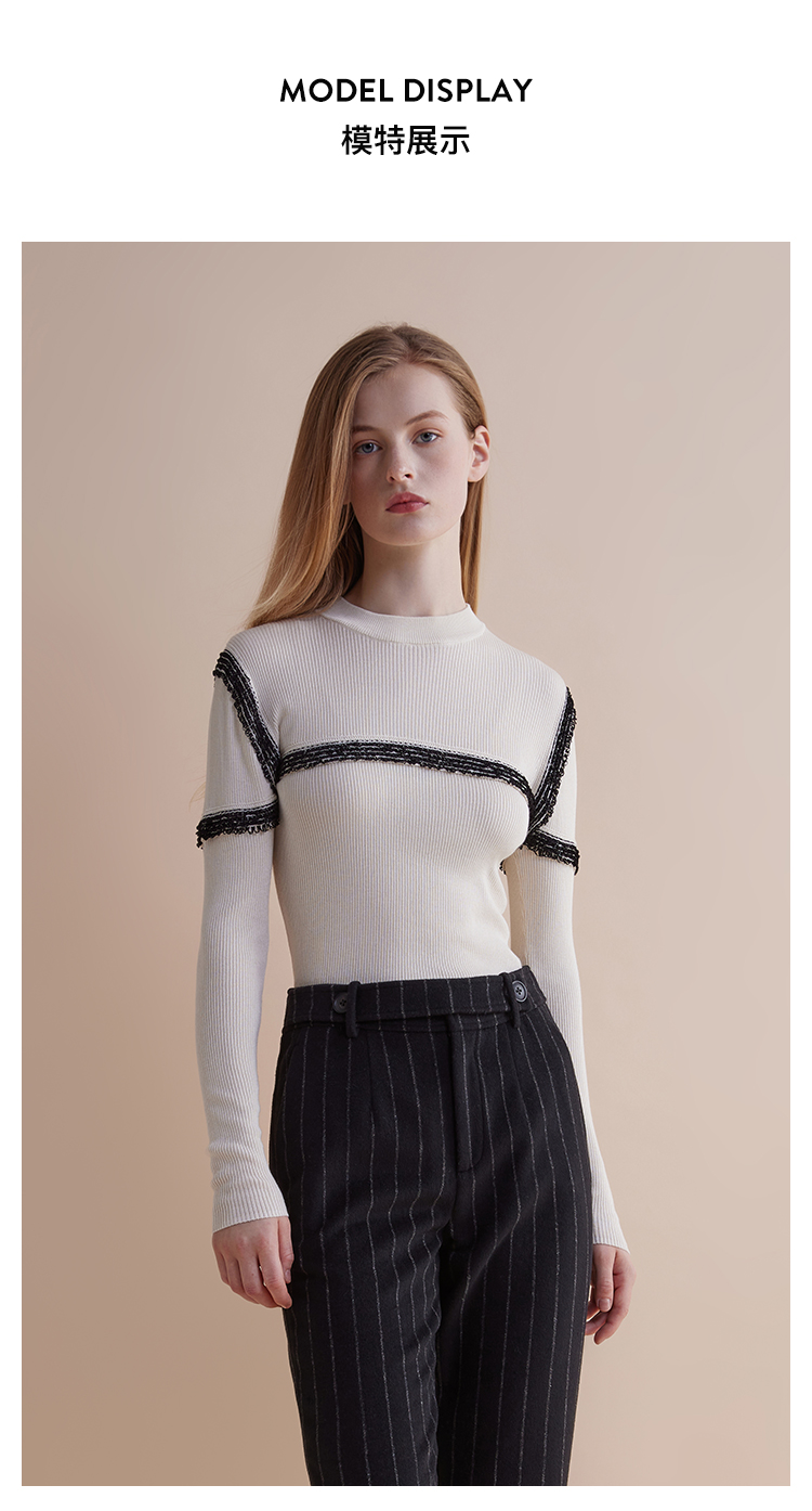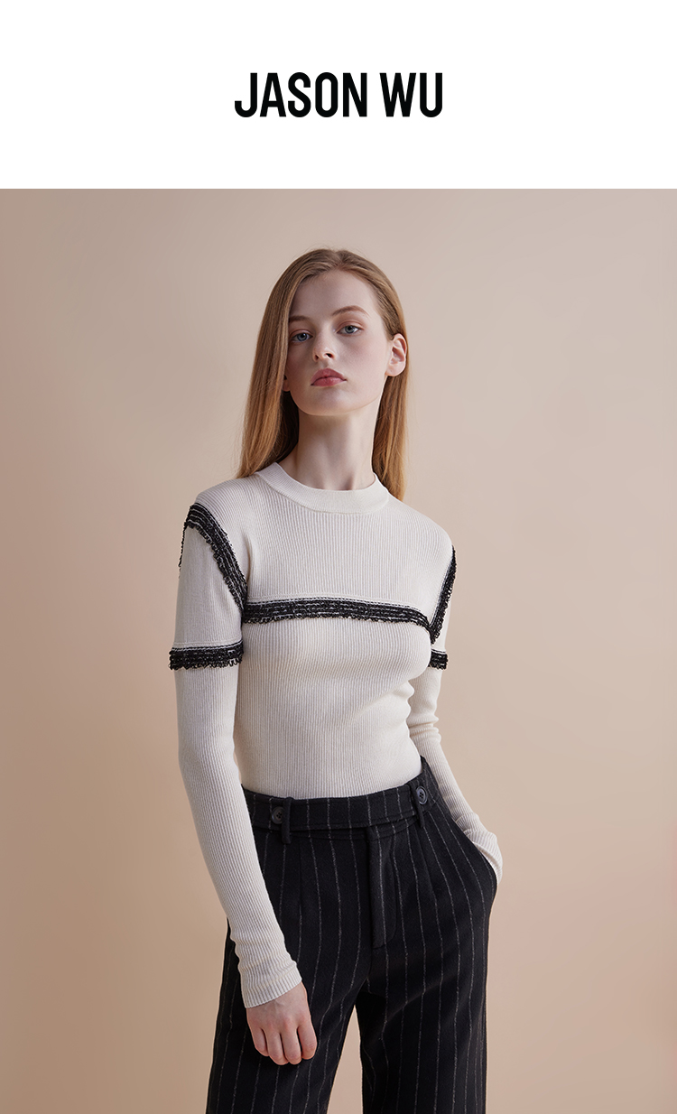 【JASON WU】春夏新款百搭山羊绒撞色套头高弹修身上衣毛针织衫女