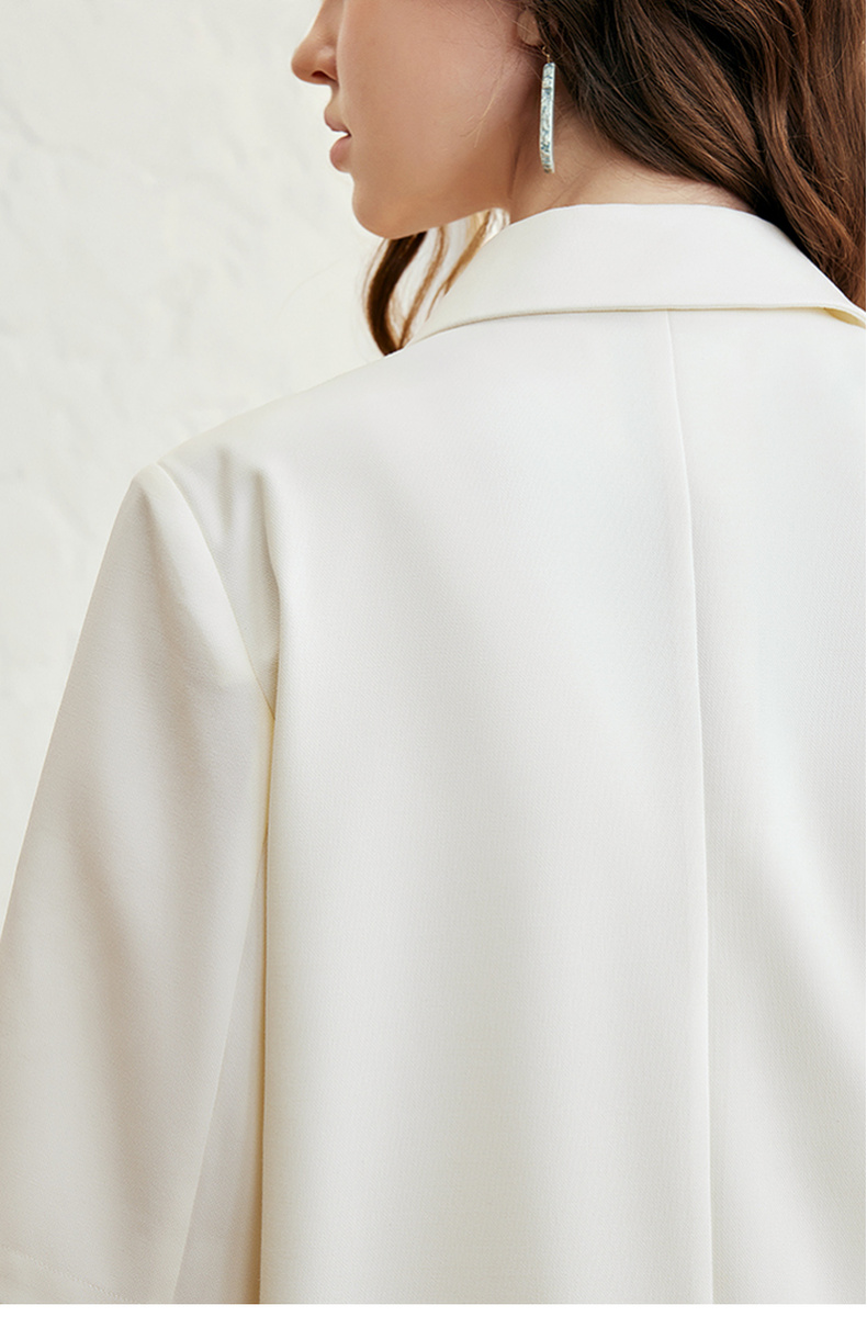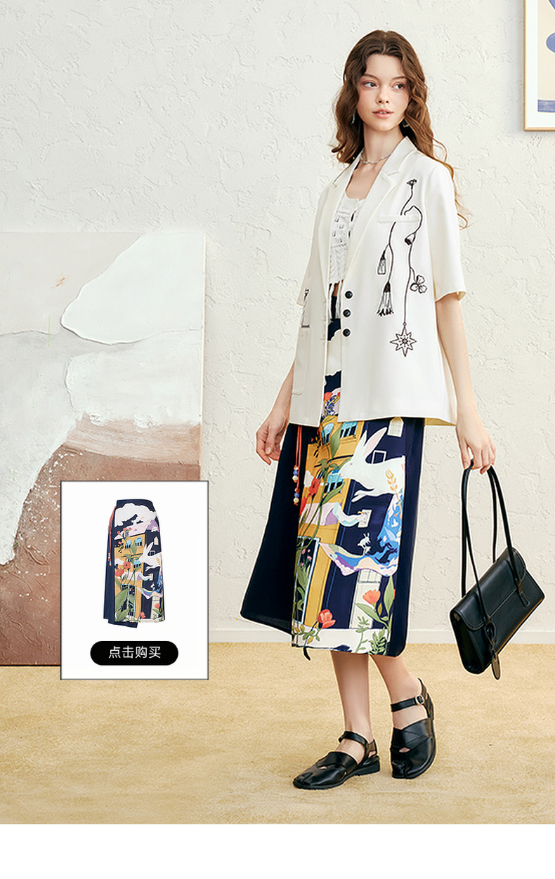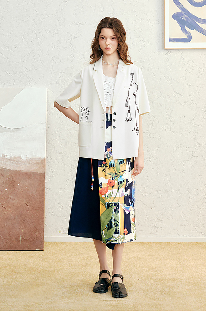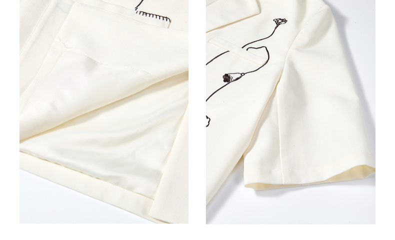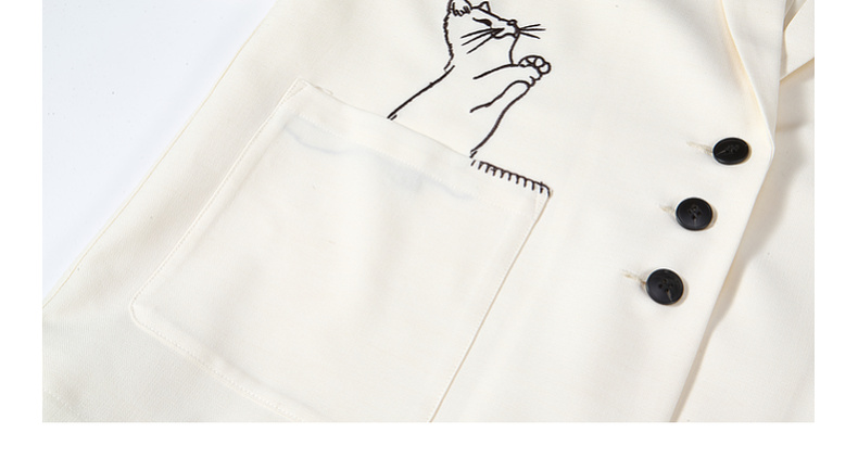 两三事 月下戏猫 2025春季新款趣味绣花短袖西装外套女宽松