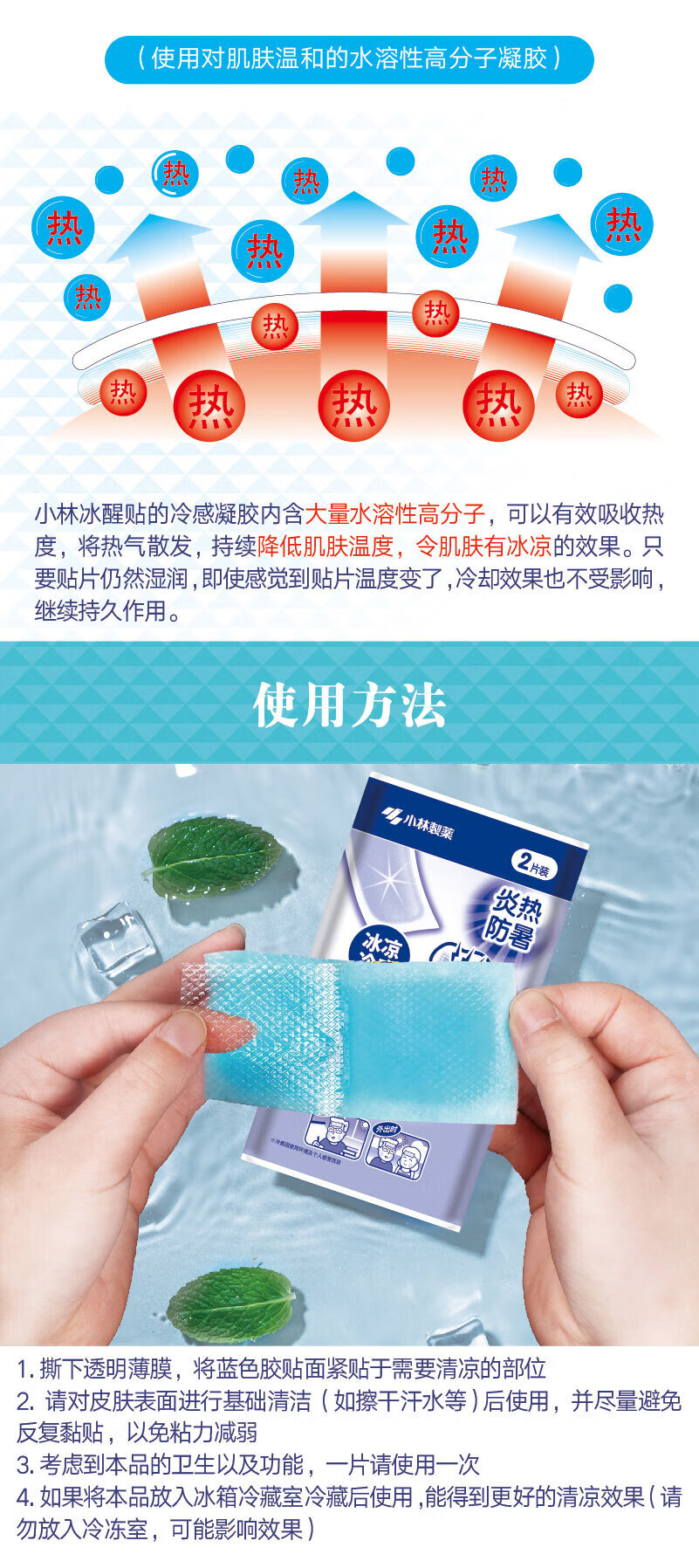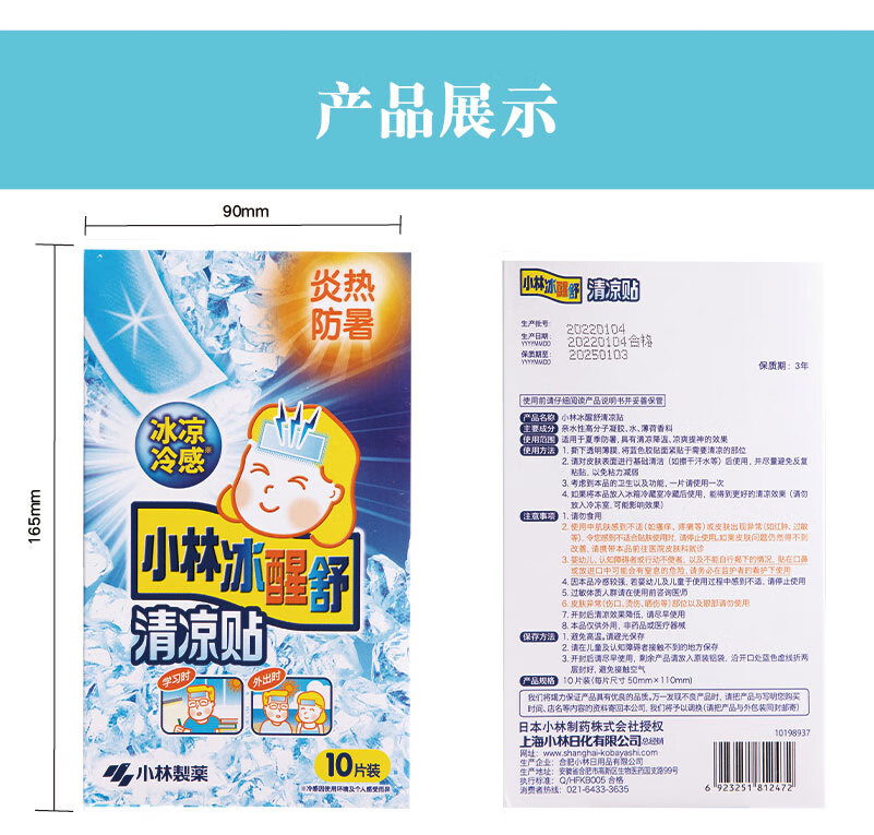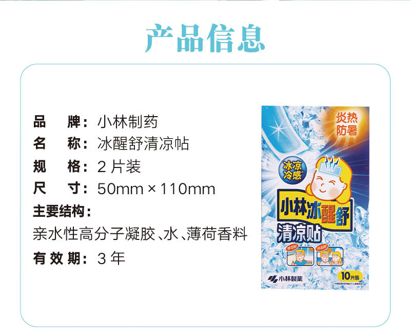 小林制药冰醒舒清凉贴 夏日解暑降温提神清凉贴多功能冰凉贴 10片/盒
