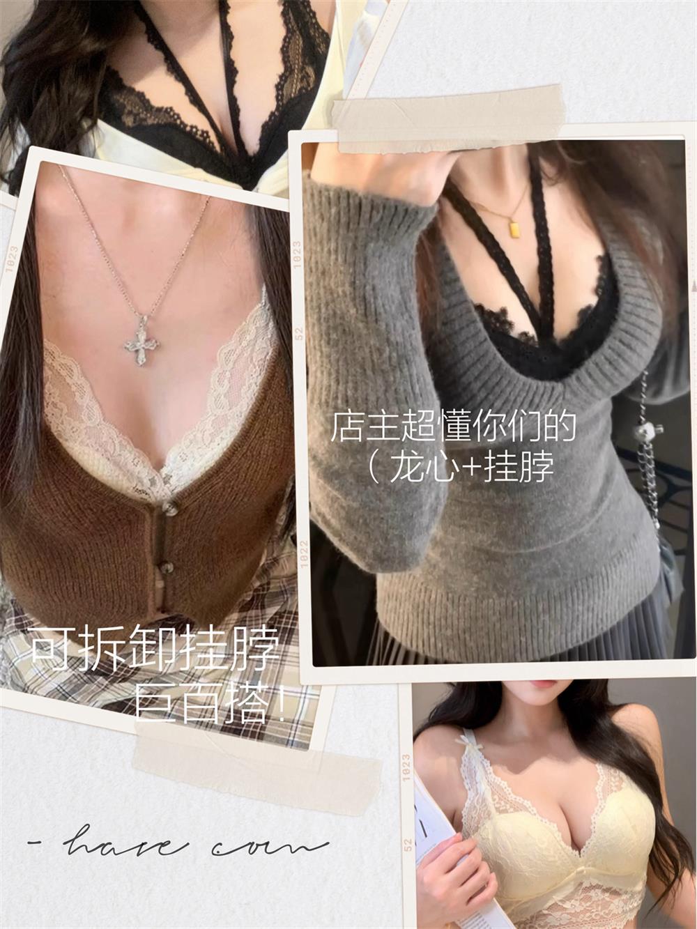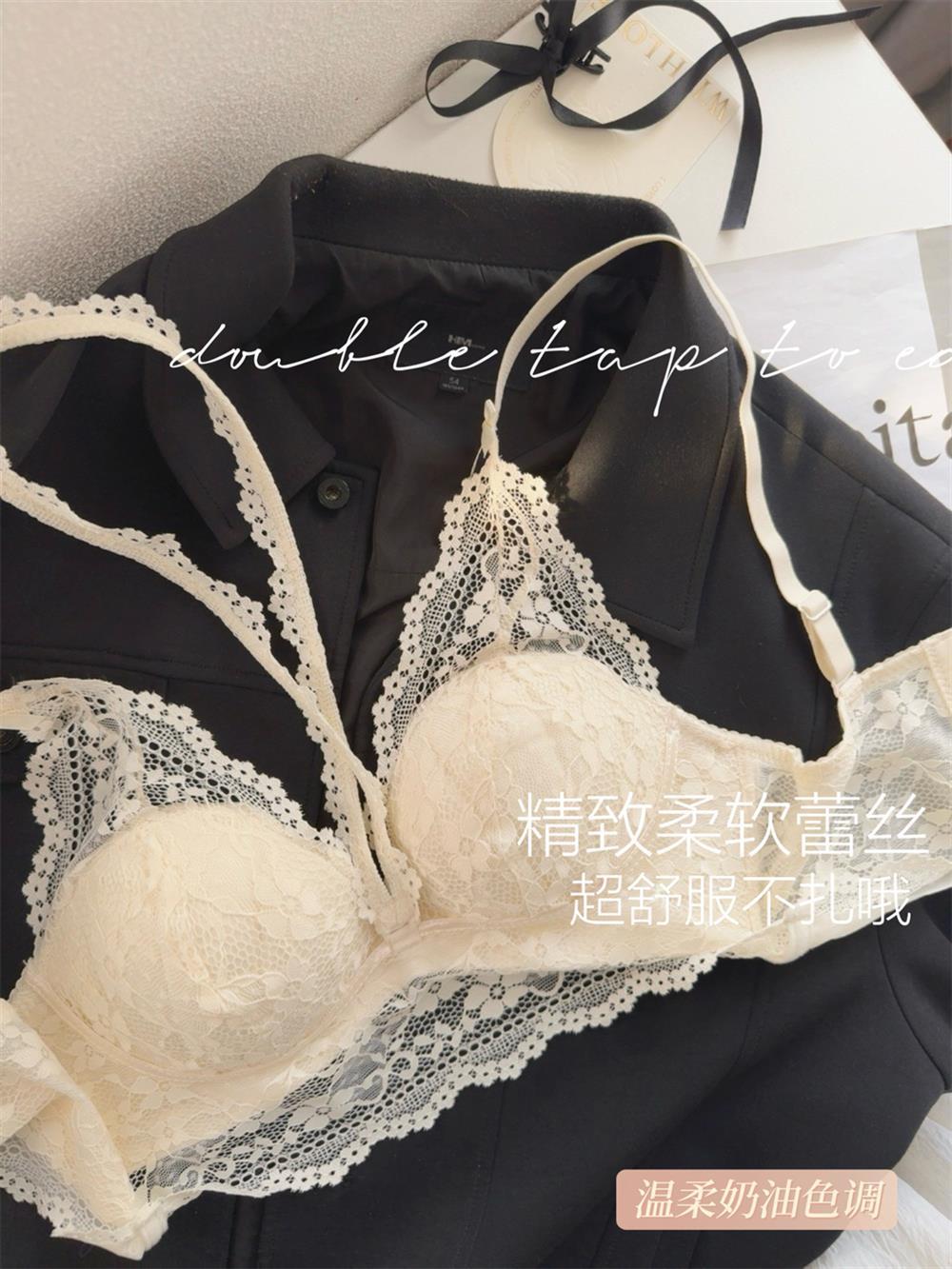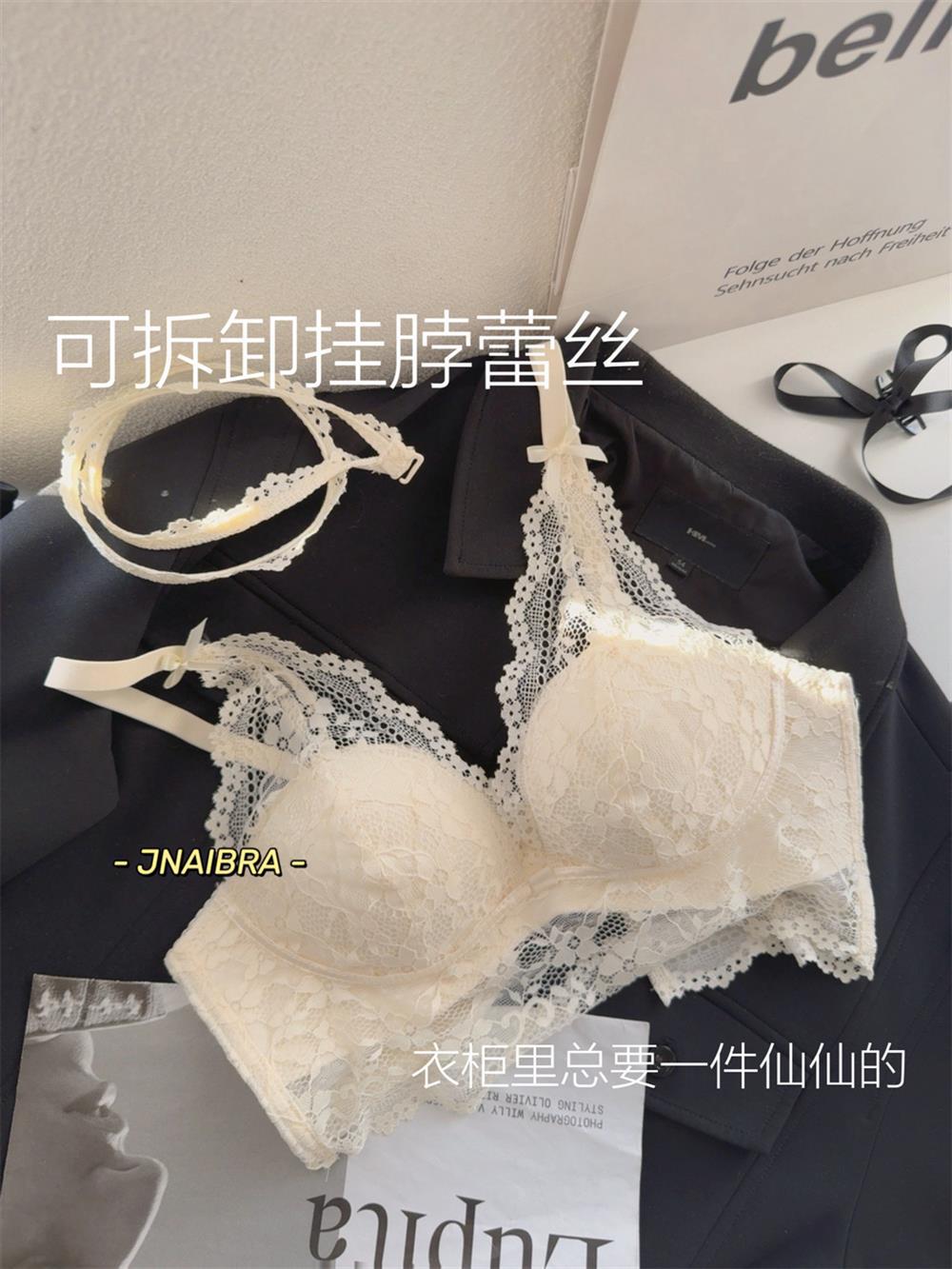 法式纯欲心机挂脖蕾丝内搭内衣女小胸聚拢显大不空杯打底吊带文胸2025新款小红书爆款