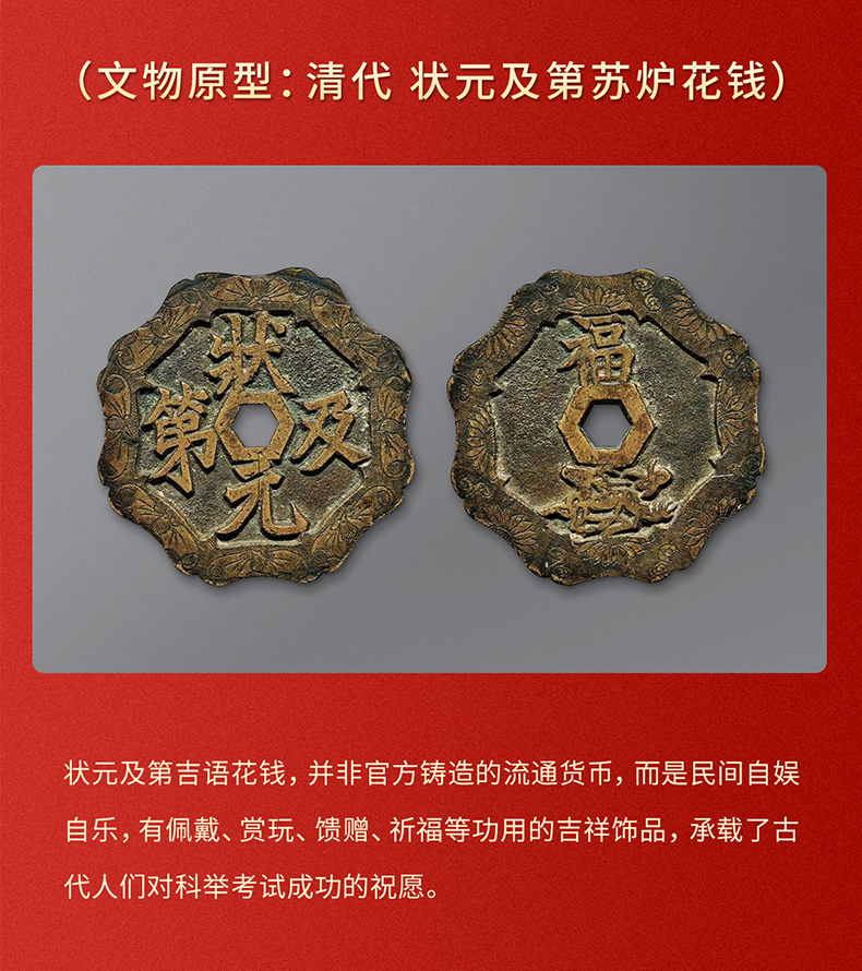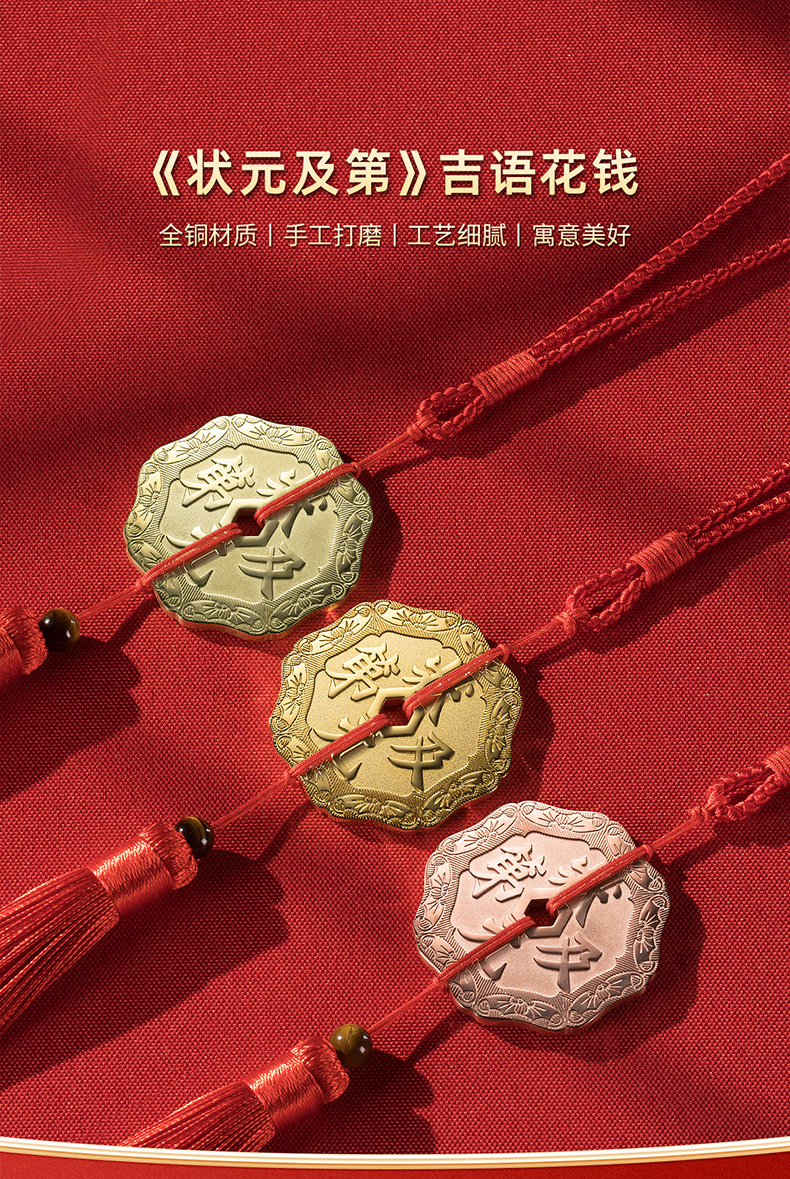铜师傅《状元及第》吉语花钱 紫铜黄铜吊坠 佩戴祈福吉祥饰品挂件
