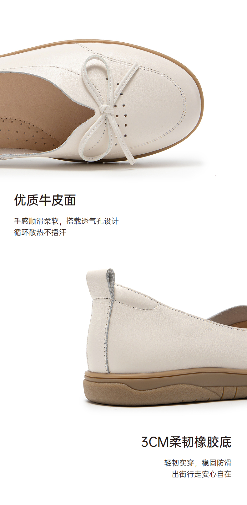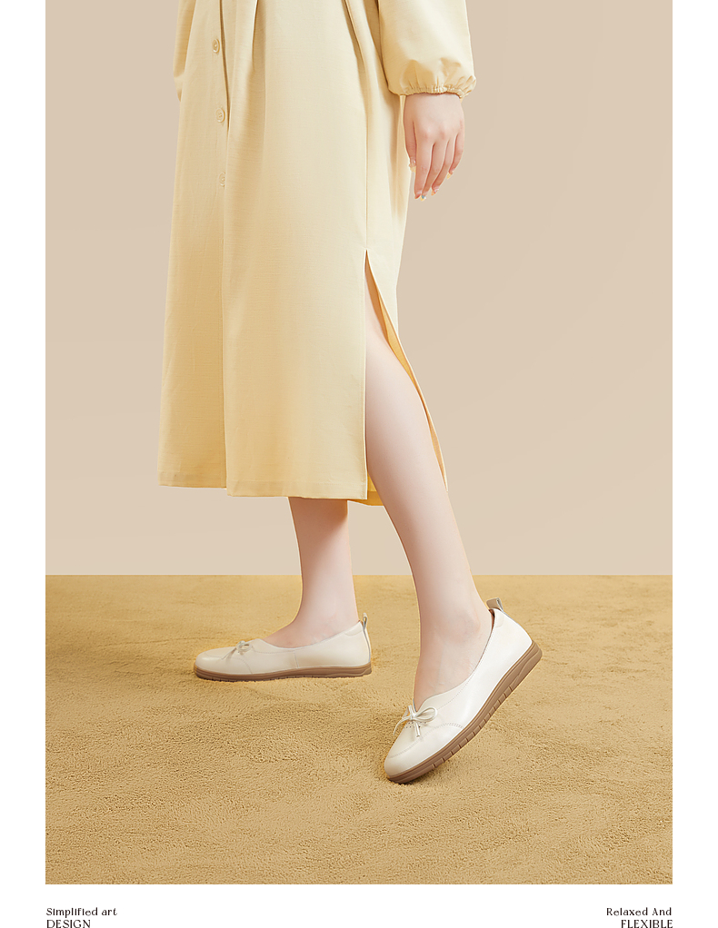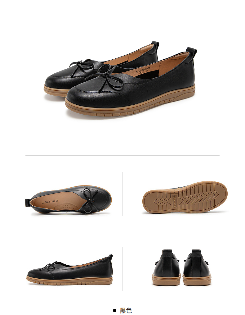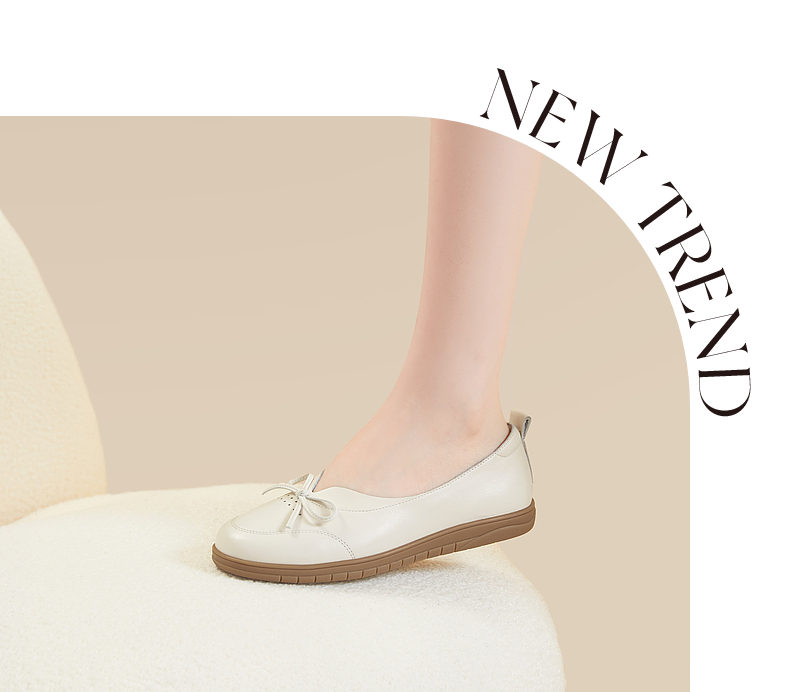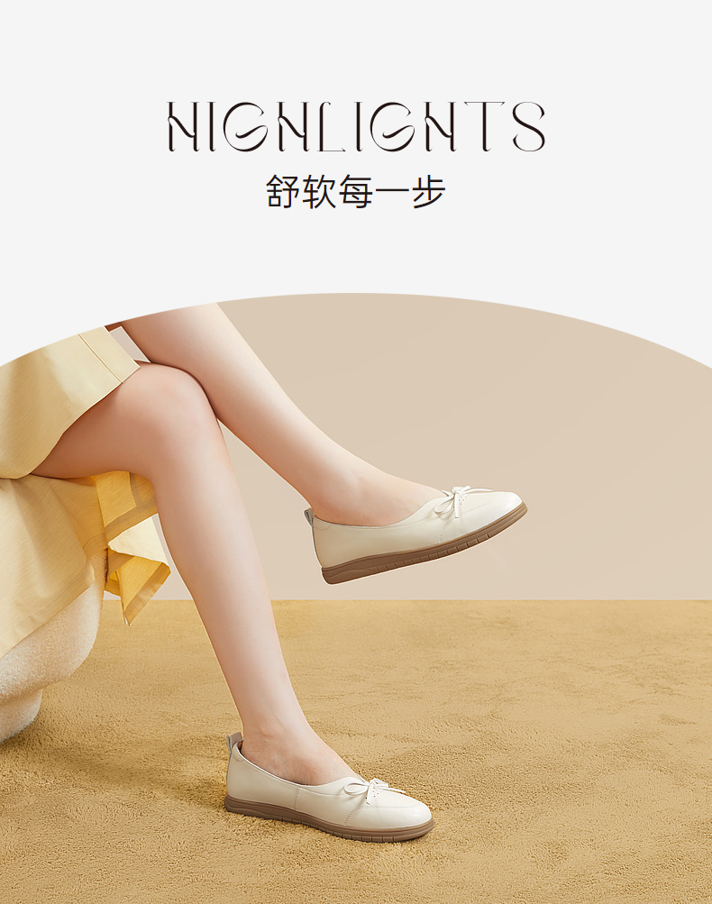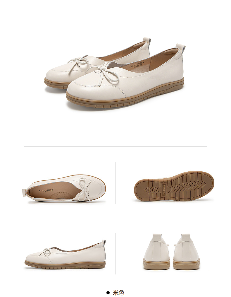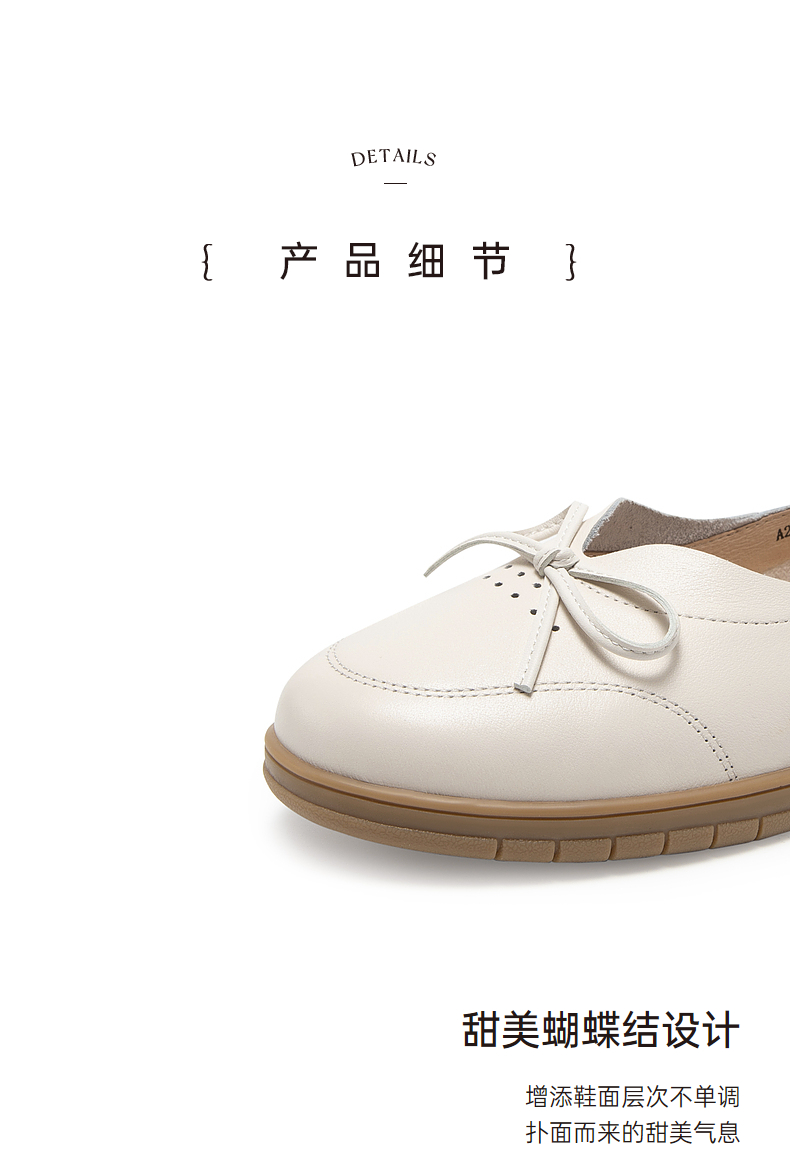 千百度平底单鞋秋季不累脚真皮一脚蹬休闲女鞋透气晚晚风A23410302